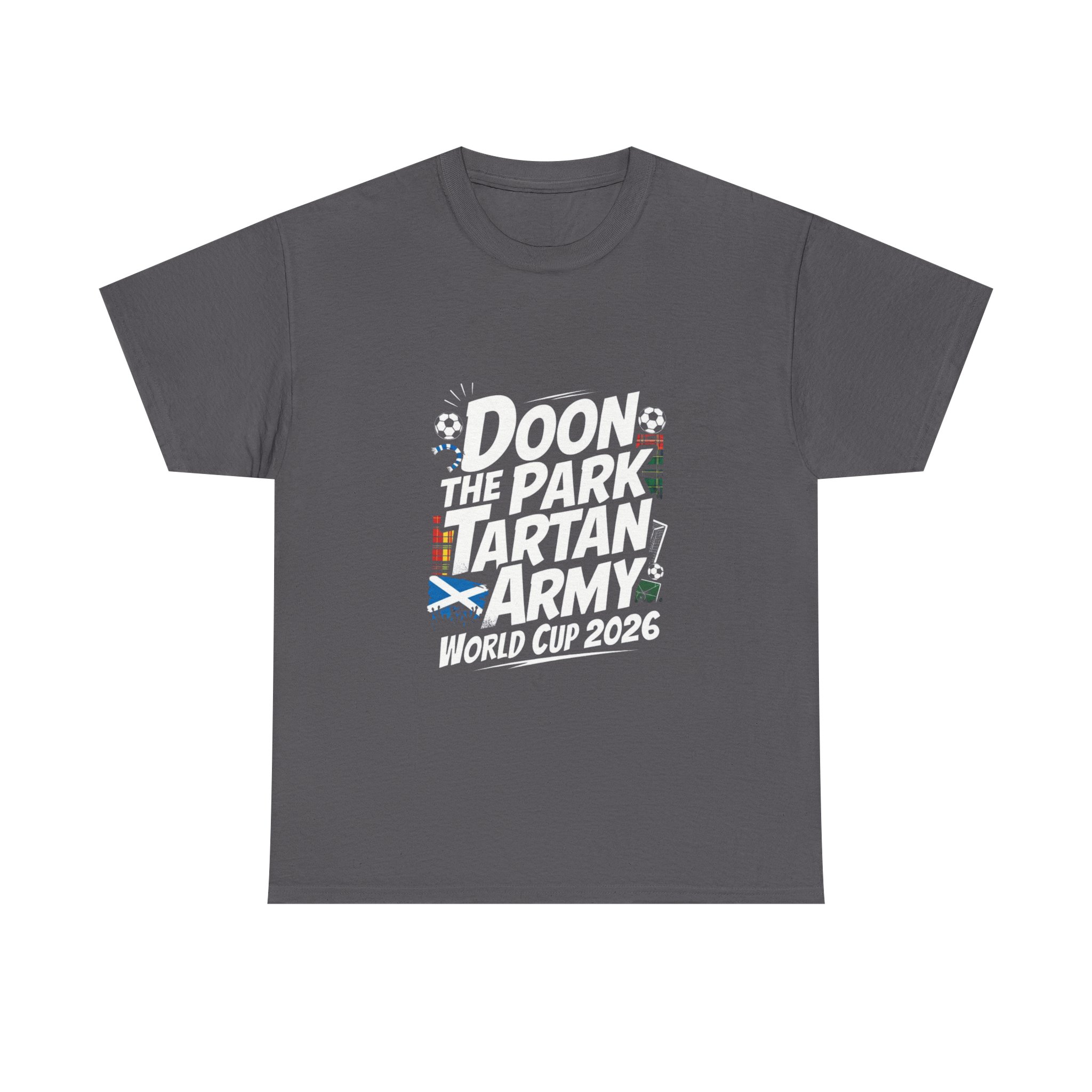 Celebrate Scotland’s return to the world stage with this “Doon the Park – Tartan Army World Cup 2026” tee — a fun, bold and proudly Scottish design made for die-hard supporters and casual fans alike. Whether you’re watching the match at the pub, heading to a fan zone, or gifting a fellow football lover, this top captures the banter, spirit and pride of the Tartan Army.
