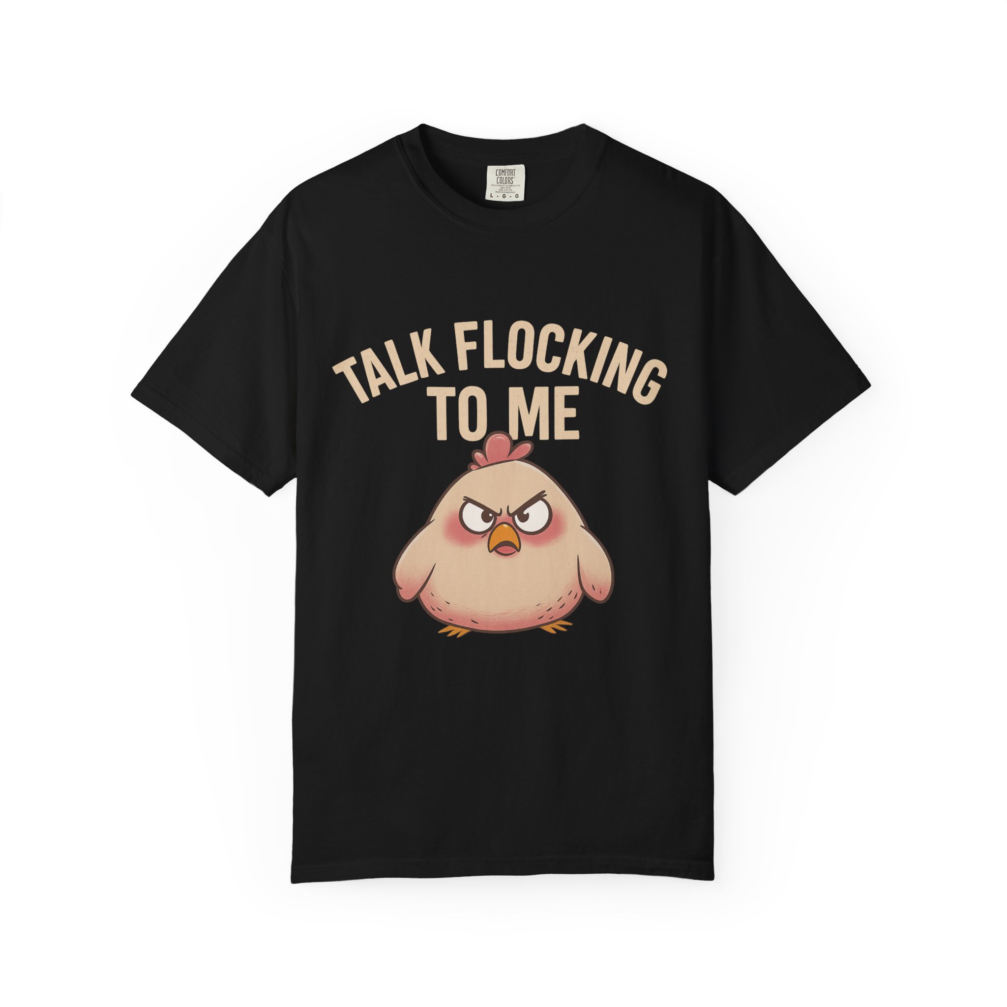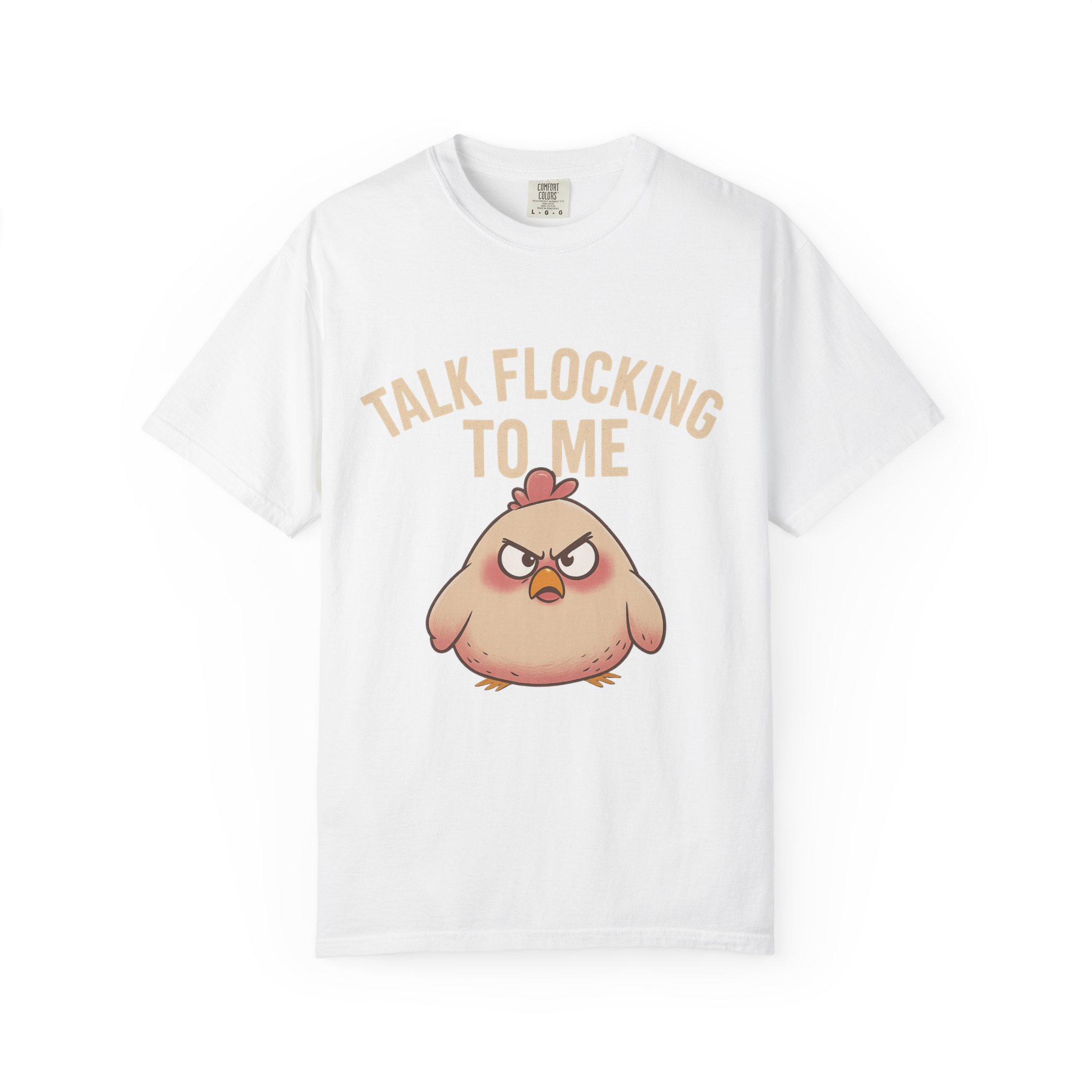 The cartoon hen’s adorable angry expression pops beautifully on all colors — soft, subtle, and just the right amount of attitude. Wear it layered, casual, dressed down, or fully in your “don’t mess with me today” era. 😎🌿