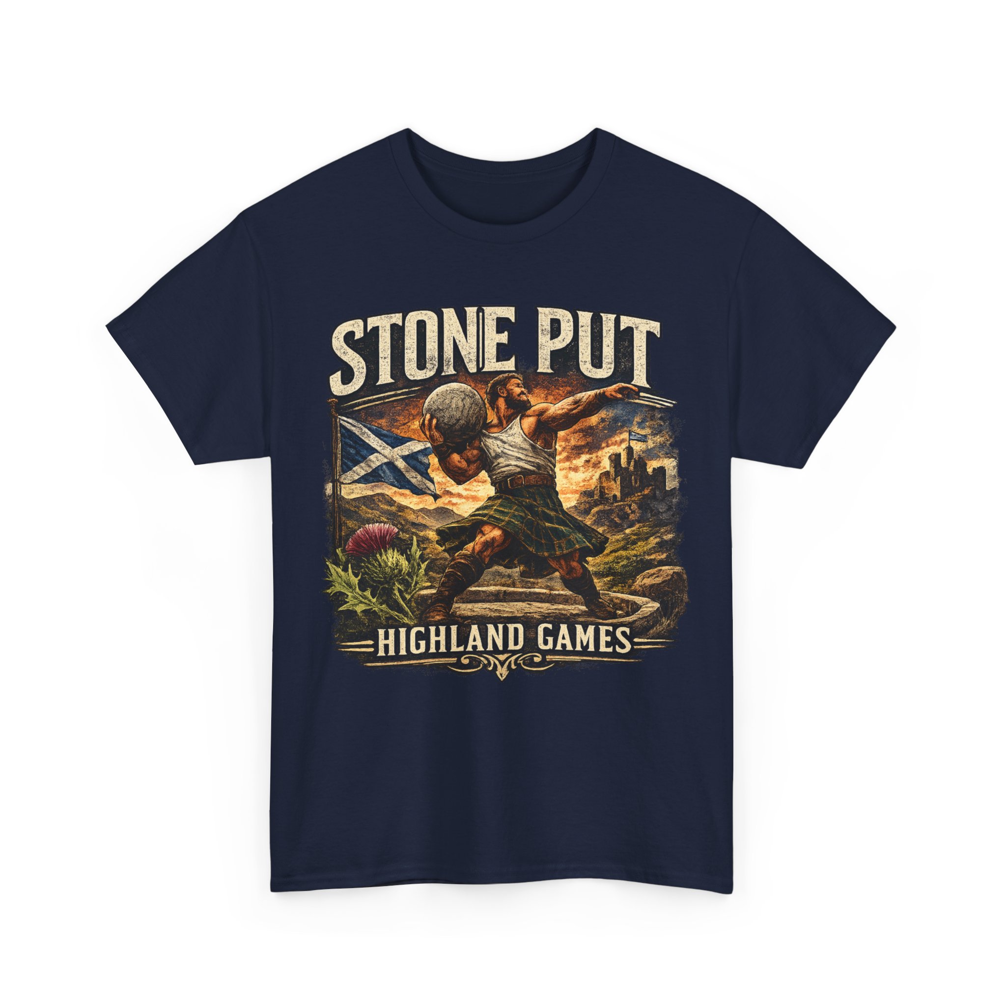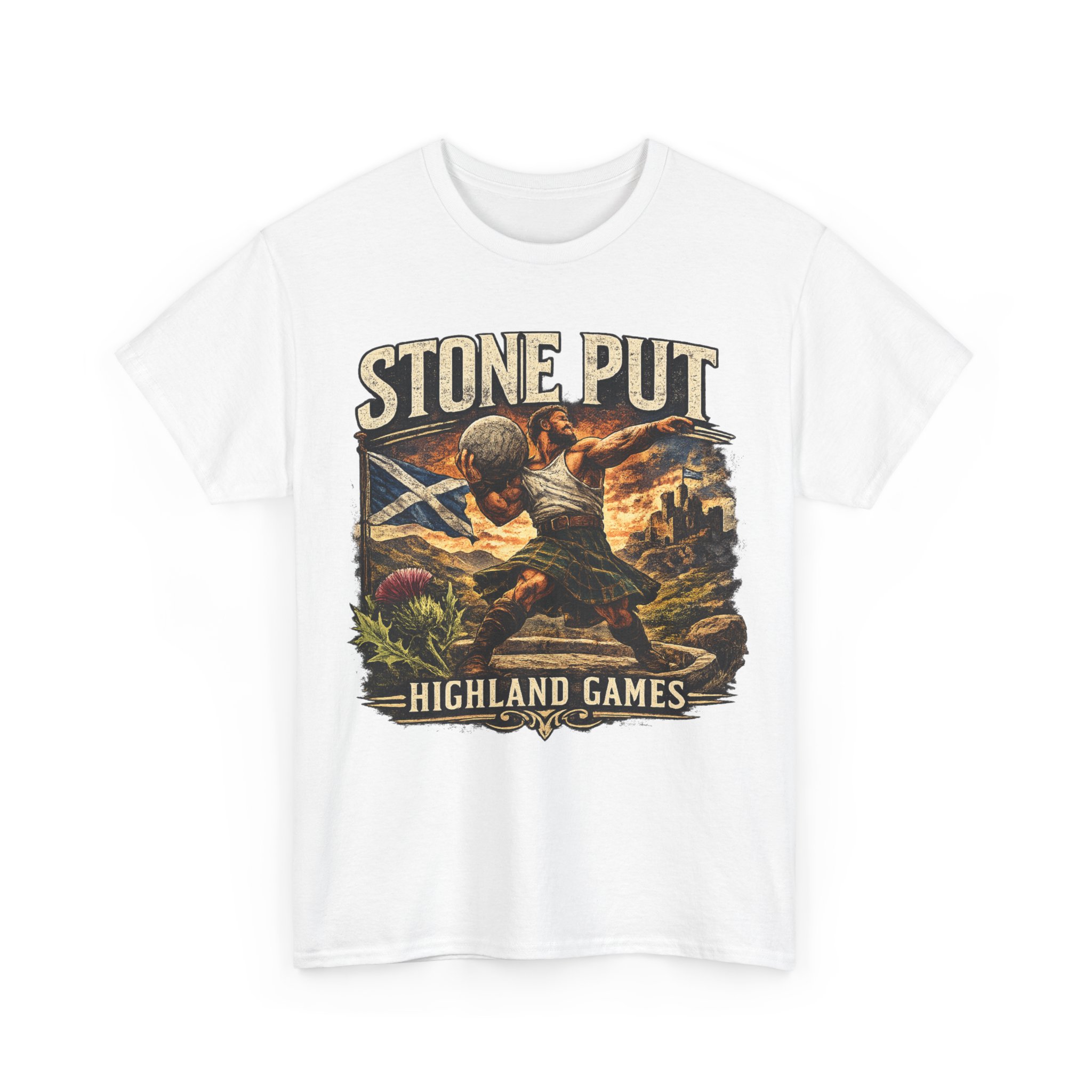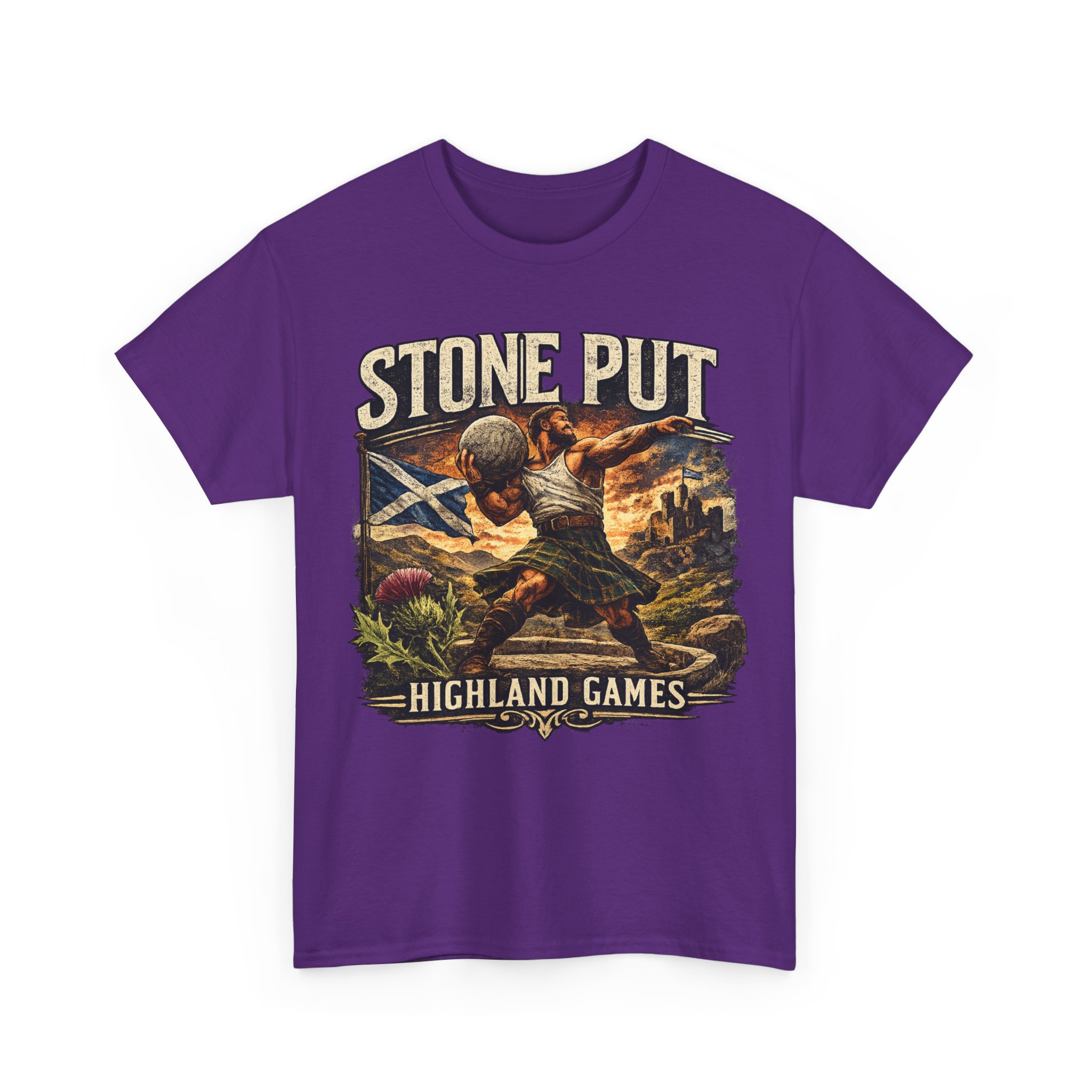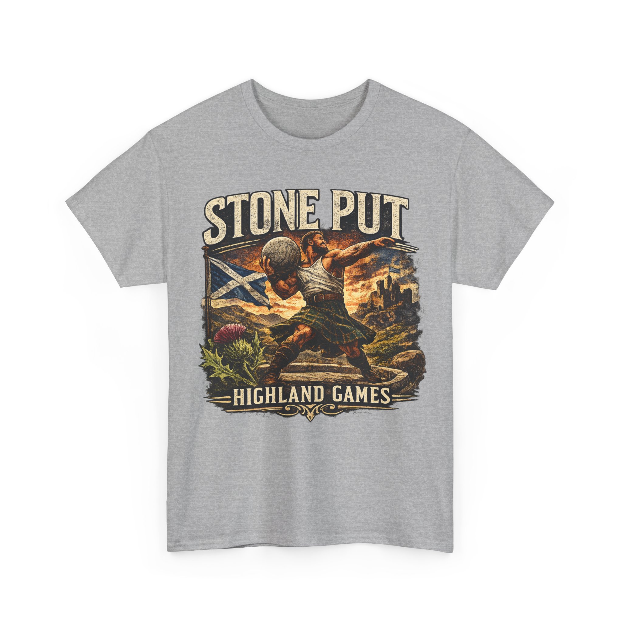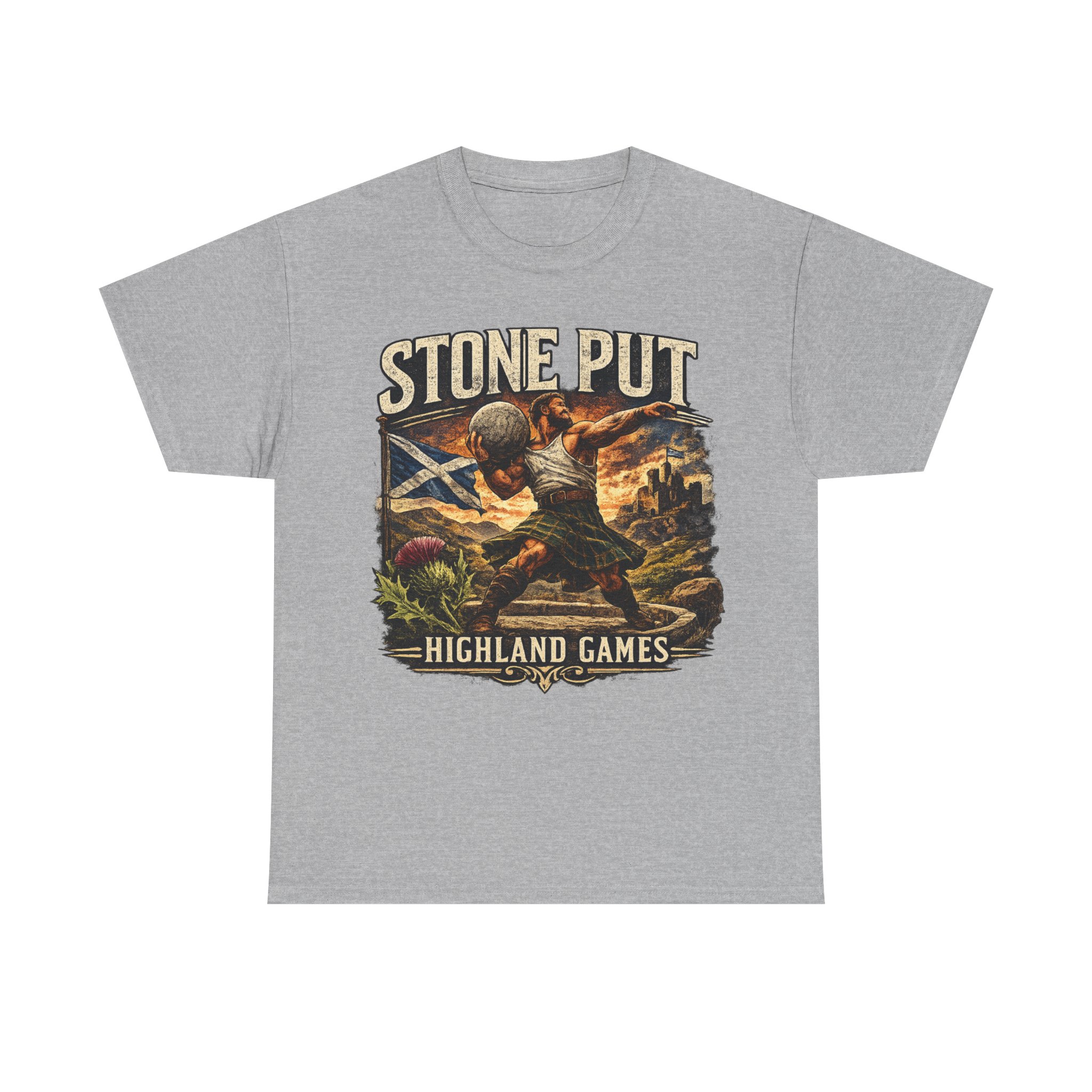 Celebrate Scottish strength and tradition with this Highland Games Stone Put Shirt, featuring a powerful stone thrower design inspired by one of Scotland’s most iconic strongman events.