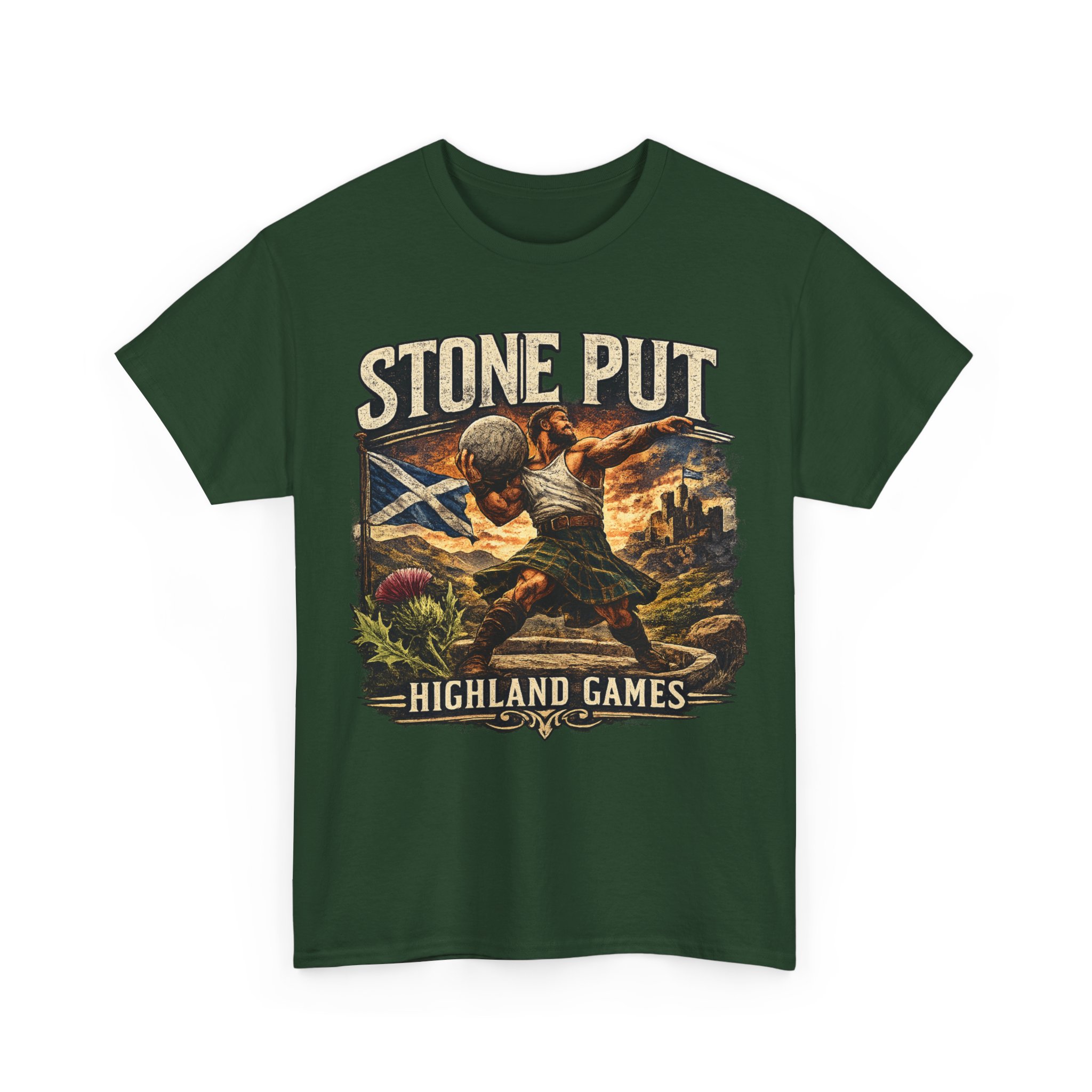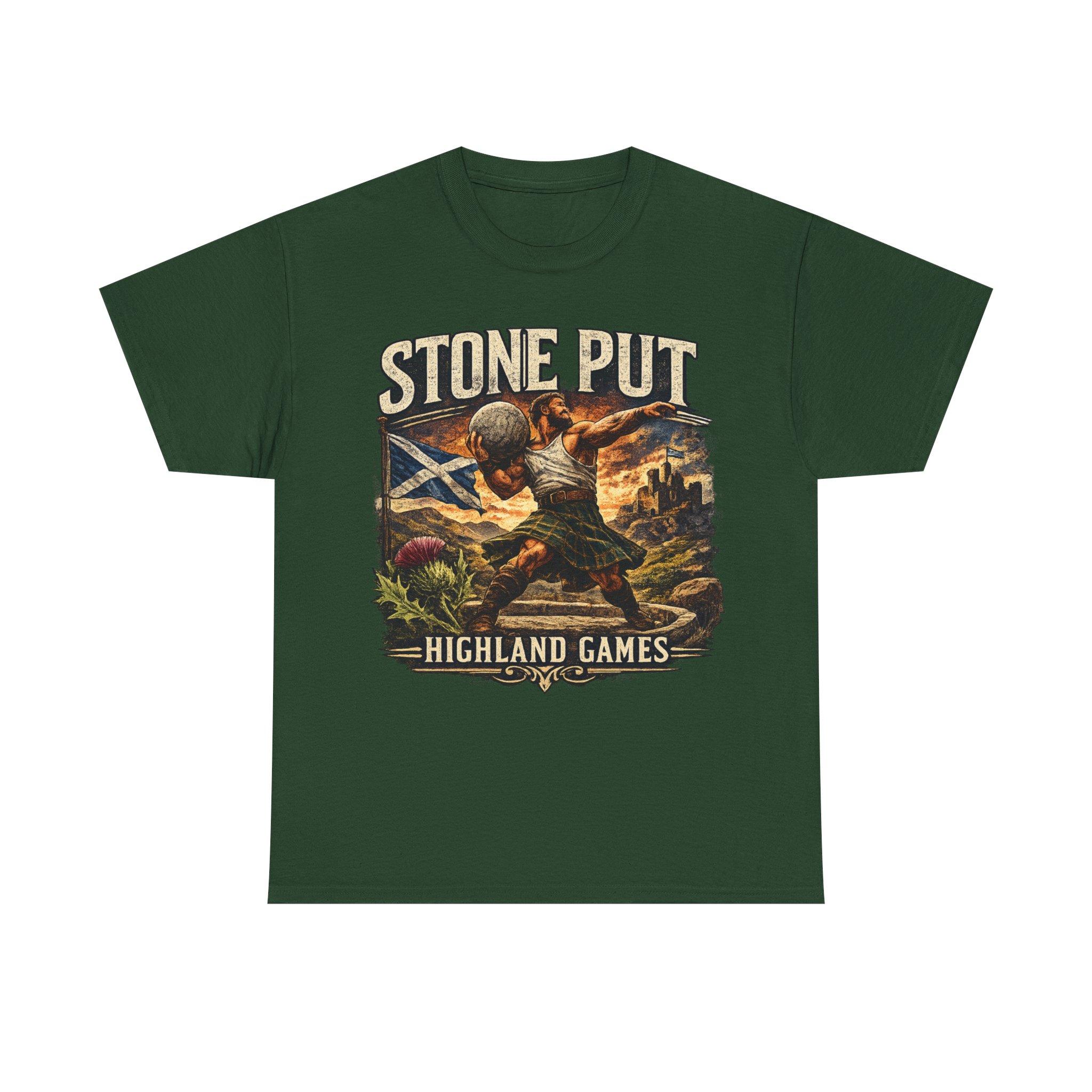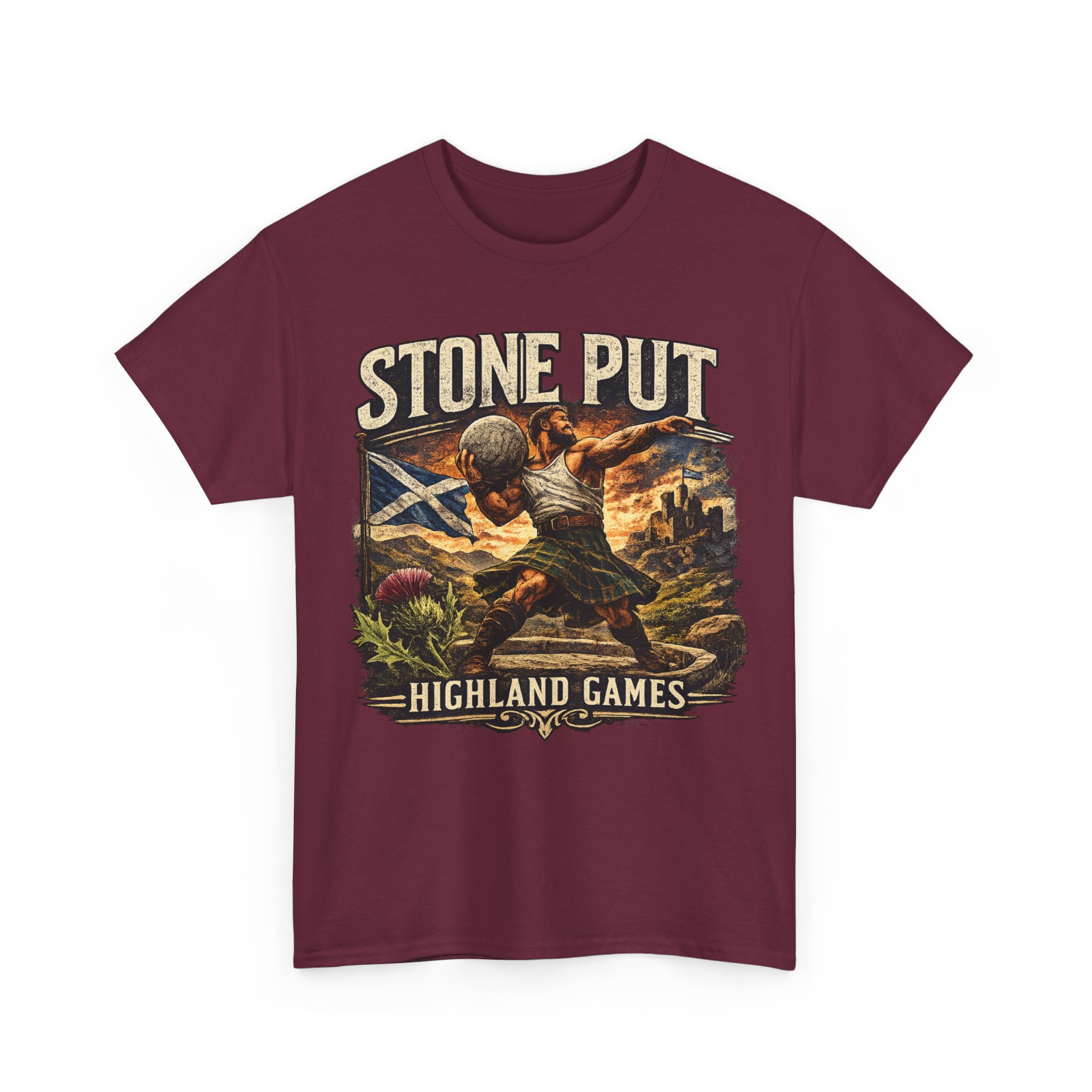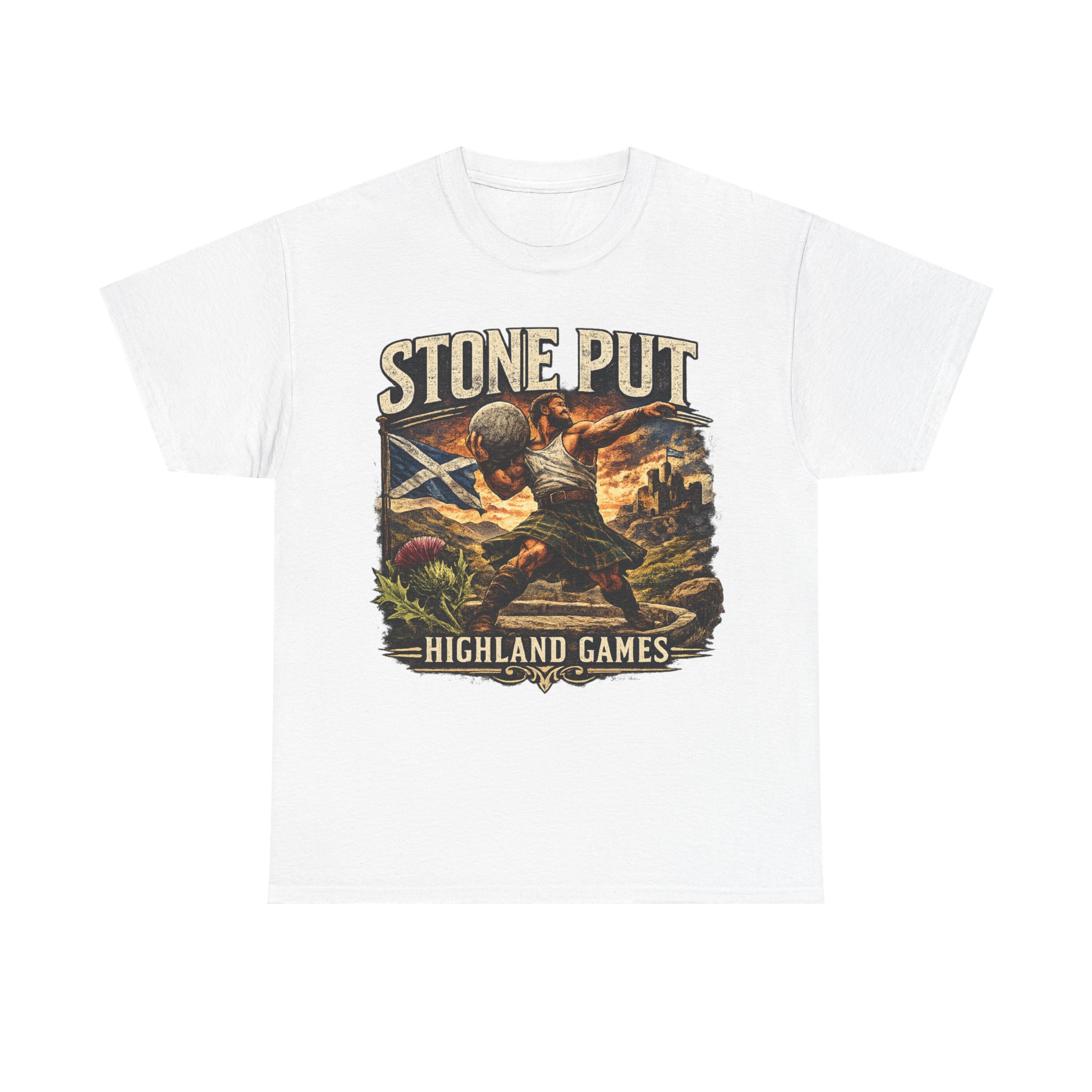 Celebrate Scottish strength and tradition with this Highland Games Stone Put Shirt, featuring a powerful stone thrower design inspired by one of Scotland’s most iconic strongman events.