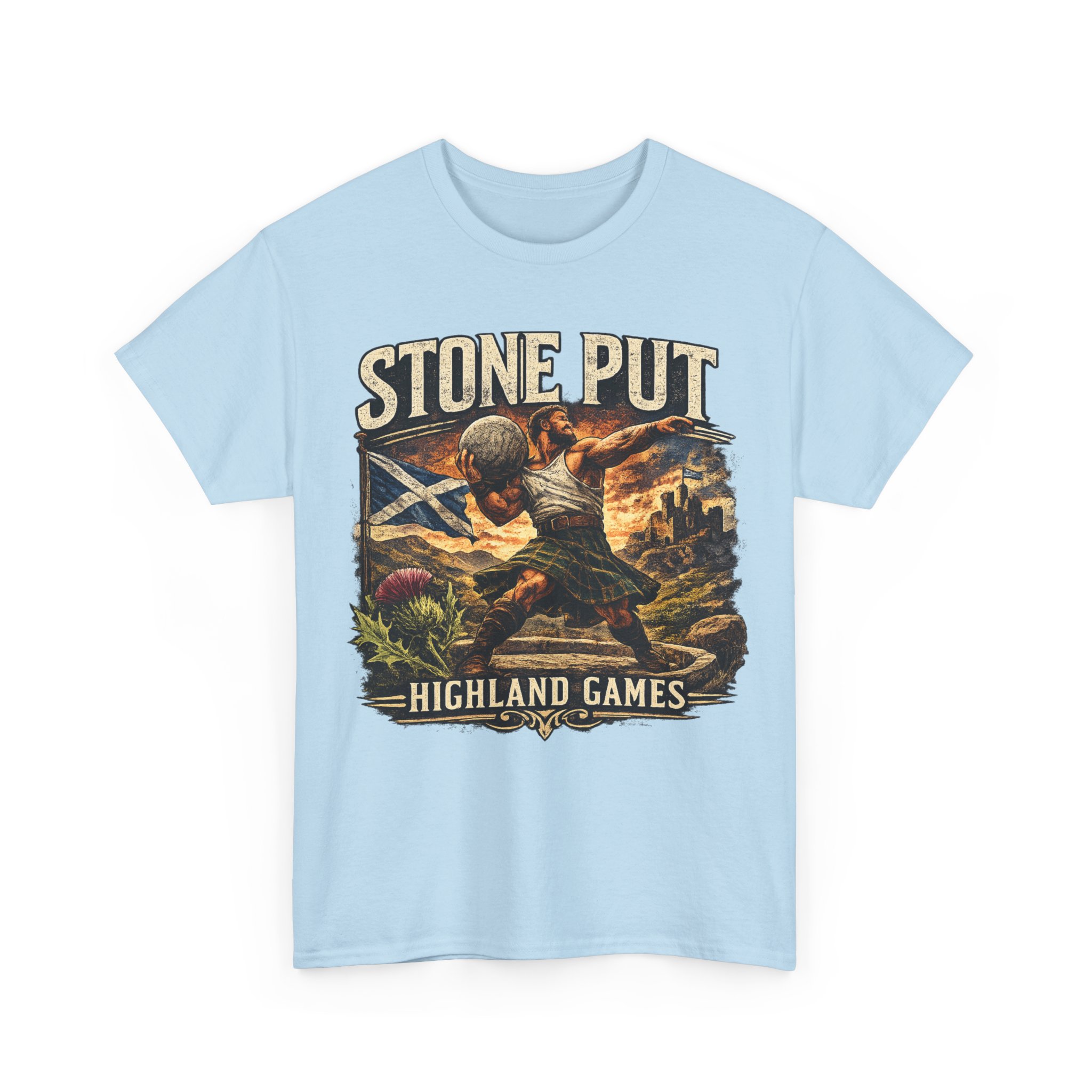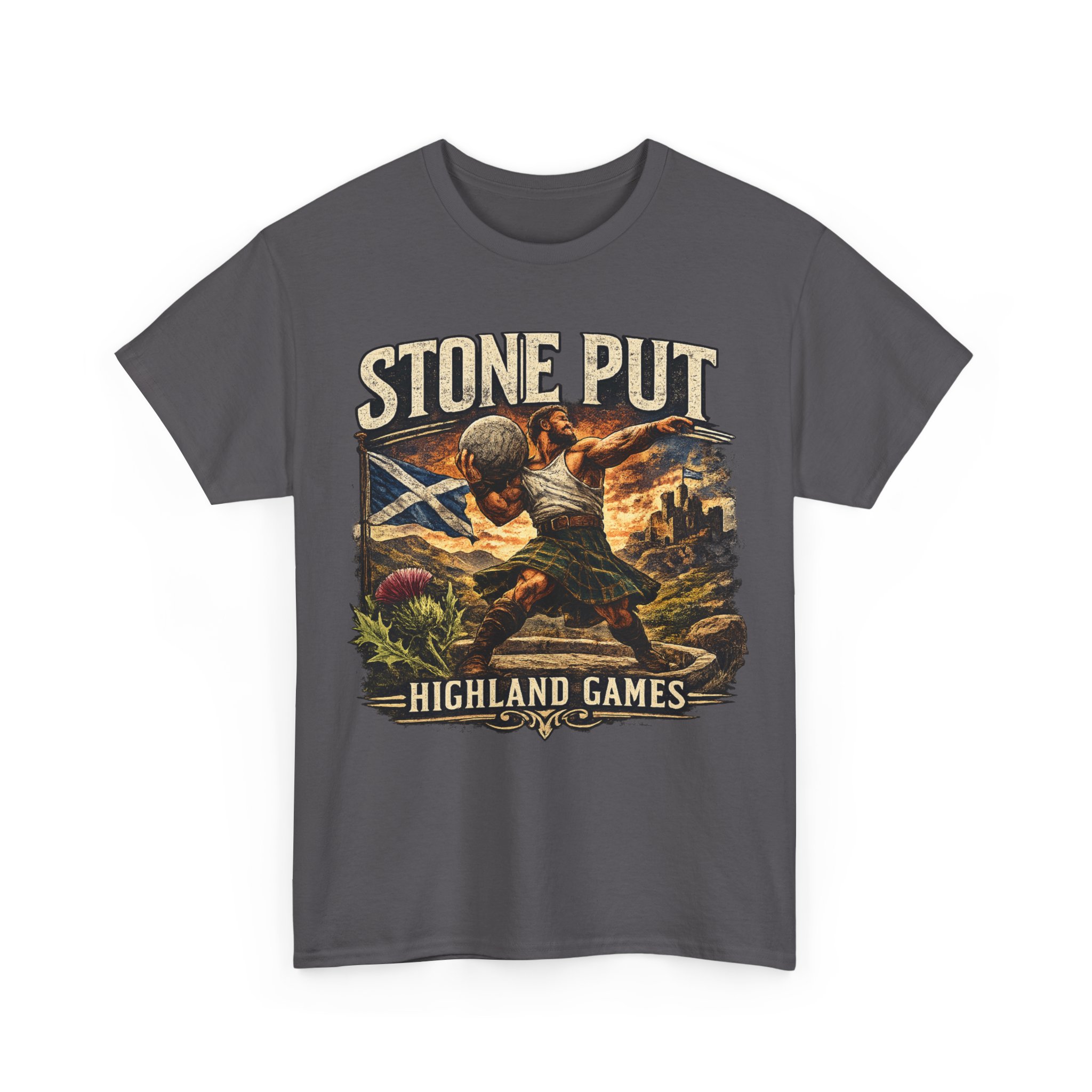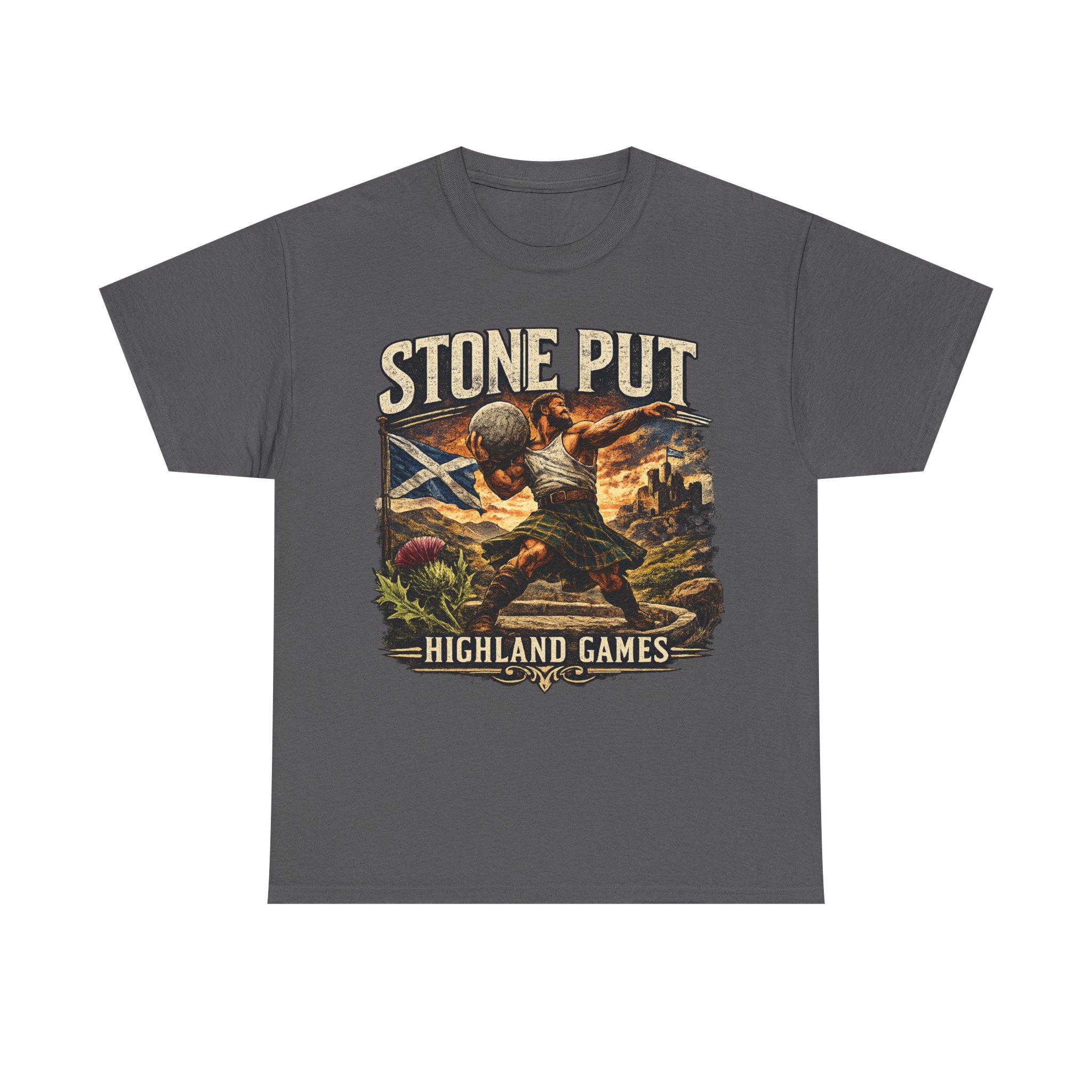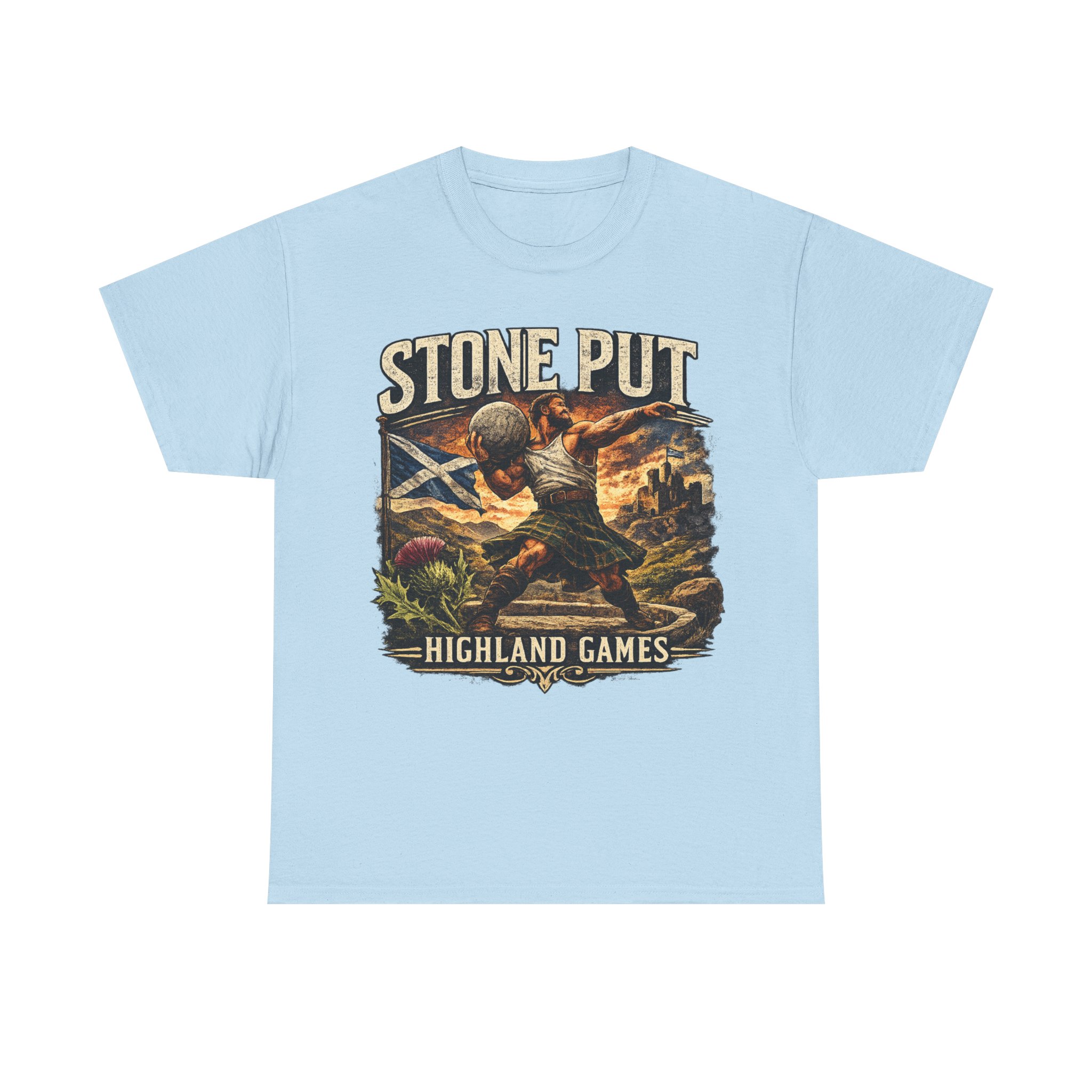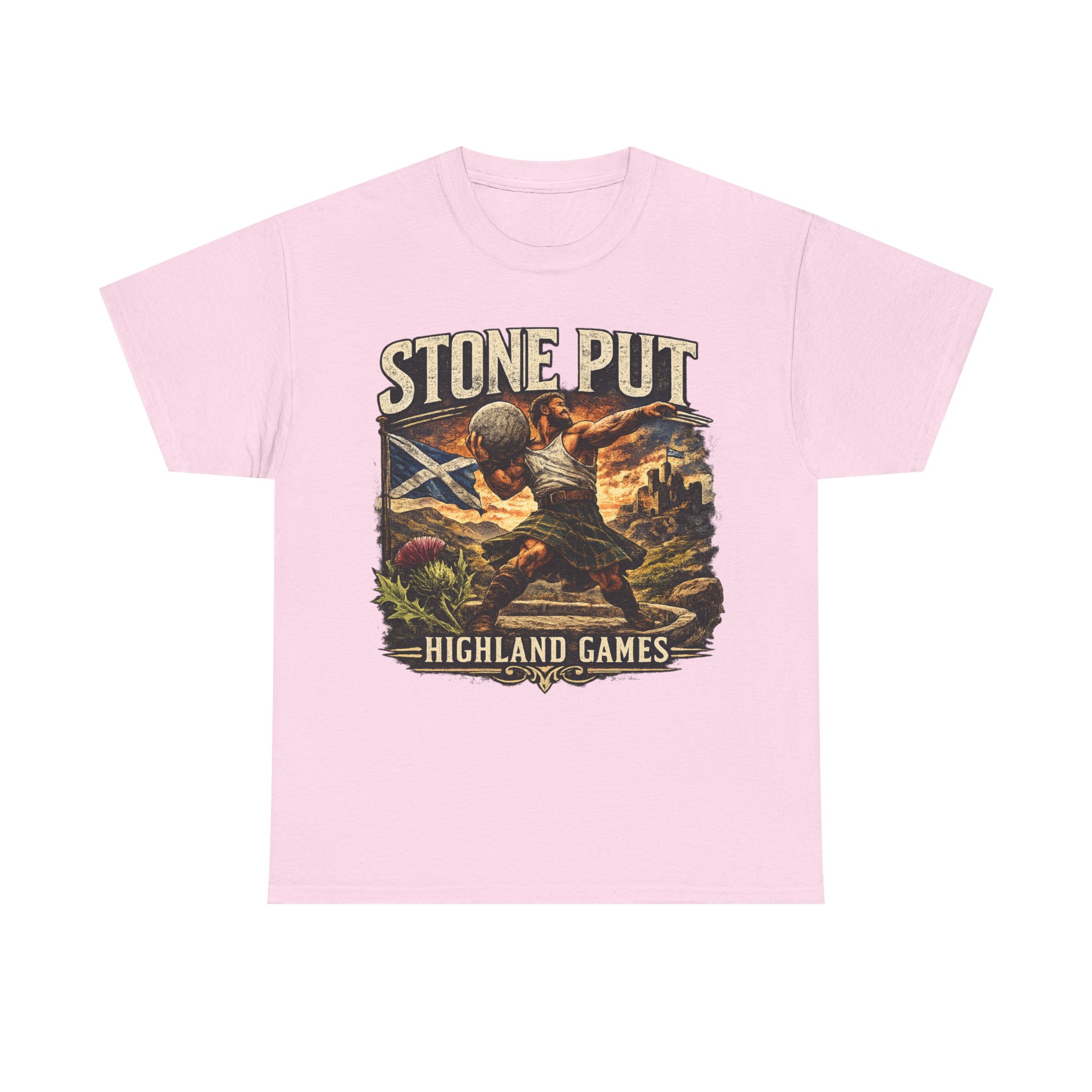 Celebrate Scottish strength and tradition with this Highland Games Stone Put Shirt, featuring a powerful stone thrower design inspired by one of Scotland’s most iconic strongman events.