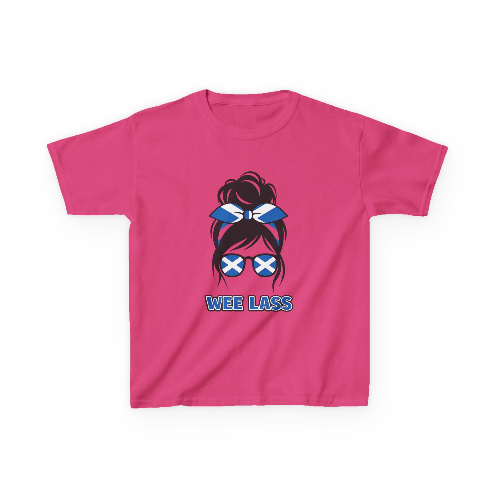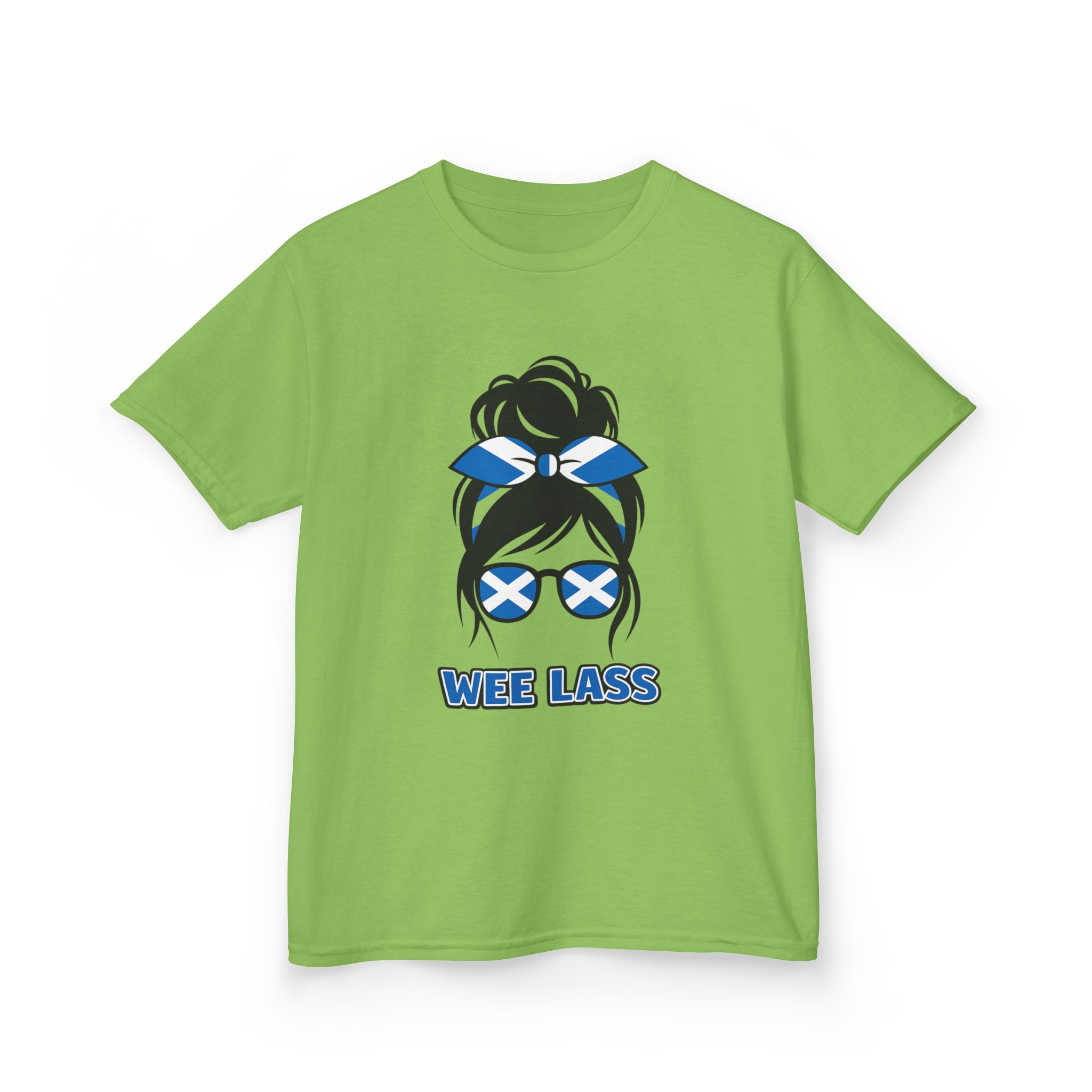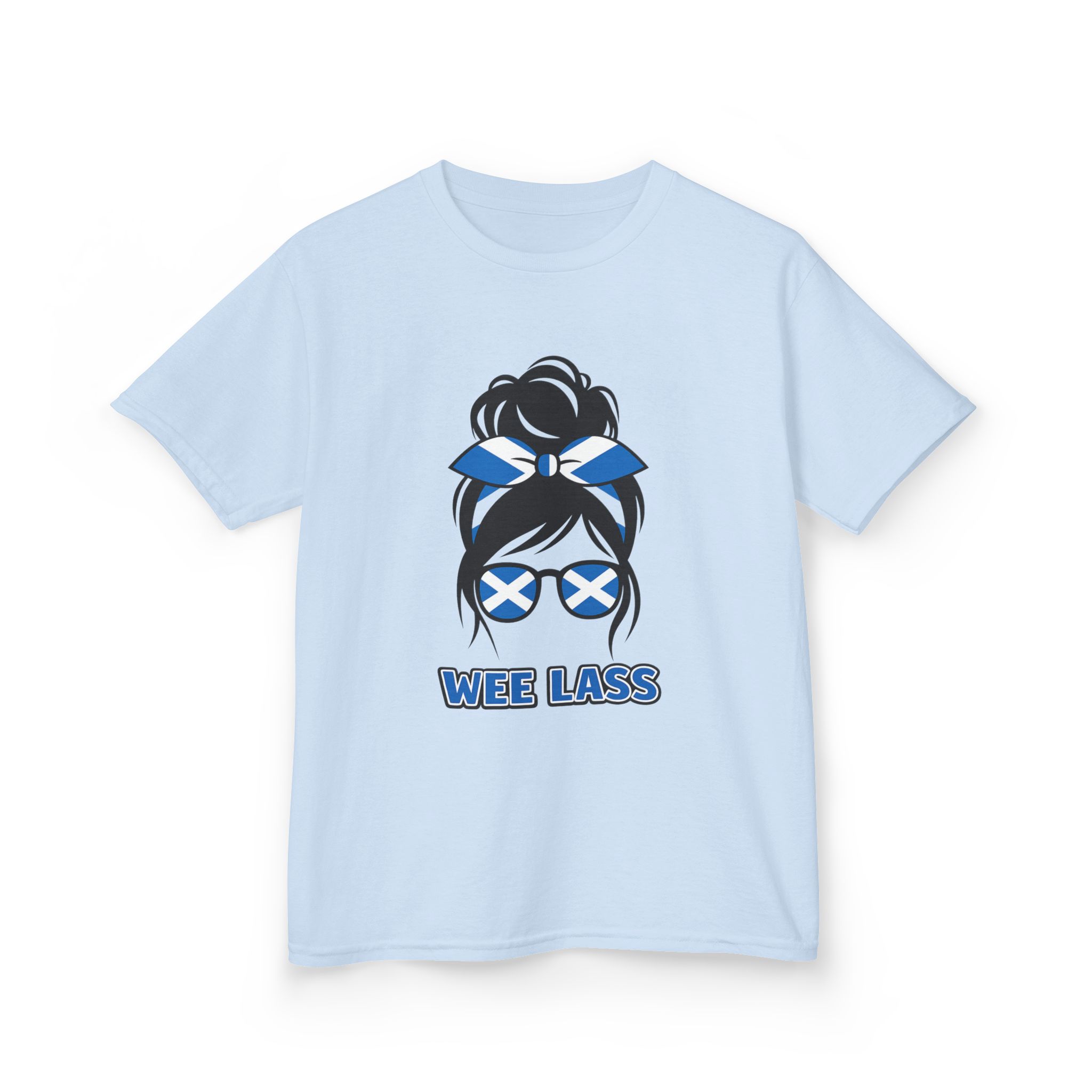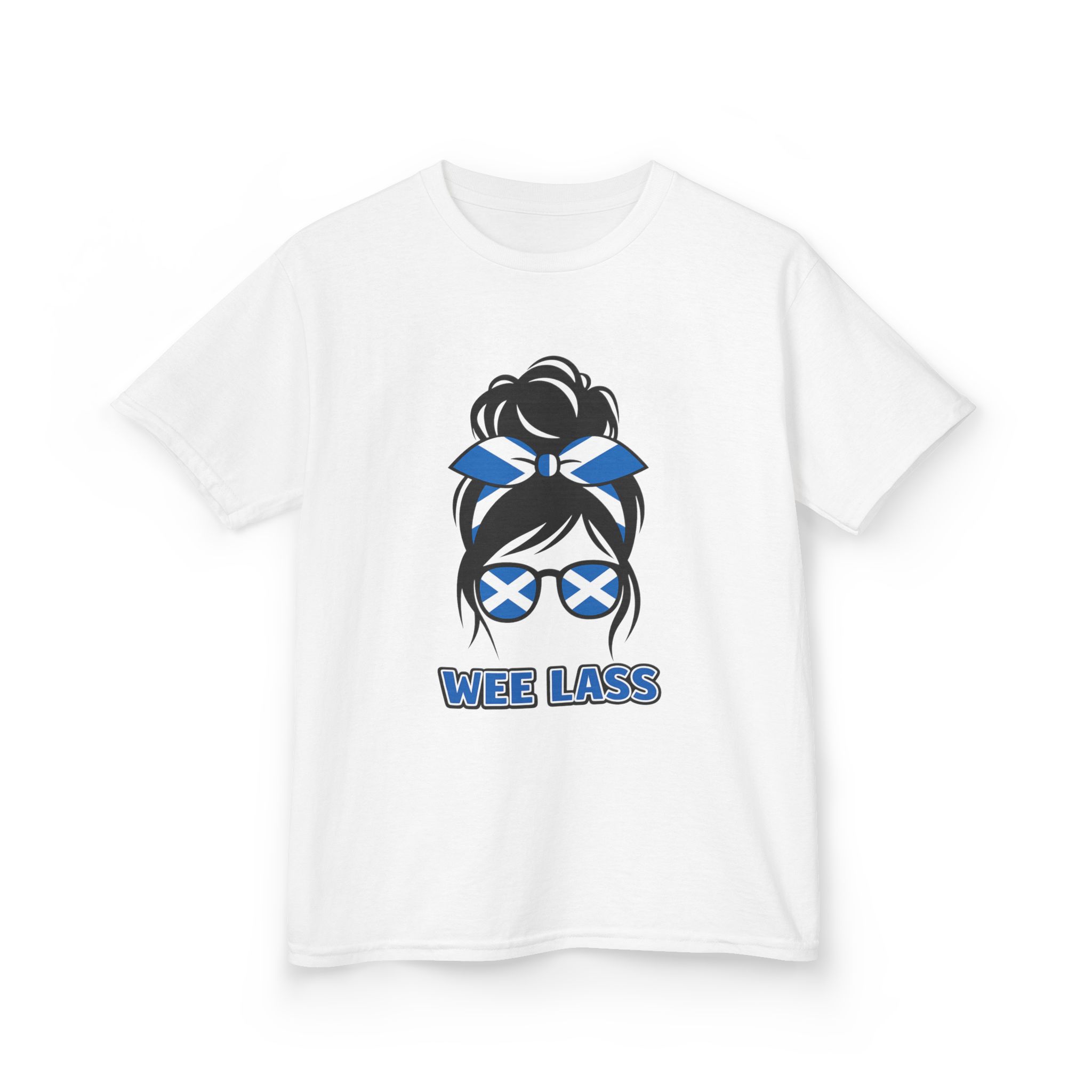This adorable Wee Lass kids t-shirt is made for girls who love showing their Scottish pride in a fun, playful way. Featuring bold Saltire sunglasses and bow details, it’s the perfect everyday tee for family days out, school, holidays in Scotland, or cheering on the team with mum and dad 🇸🇨✨