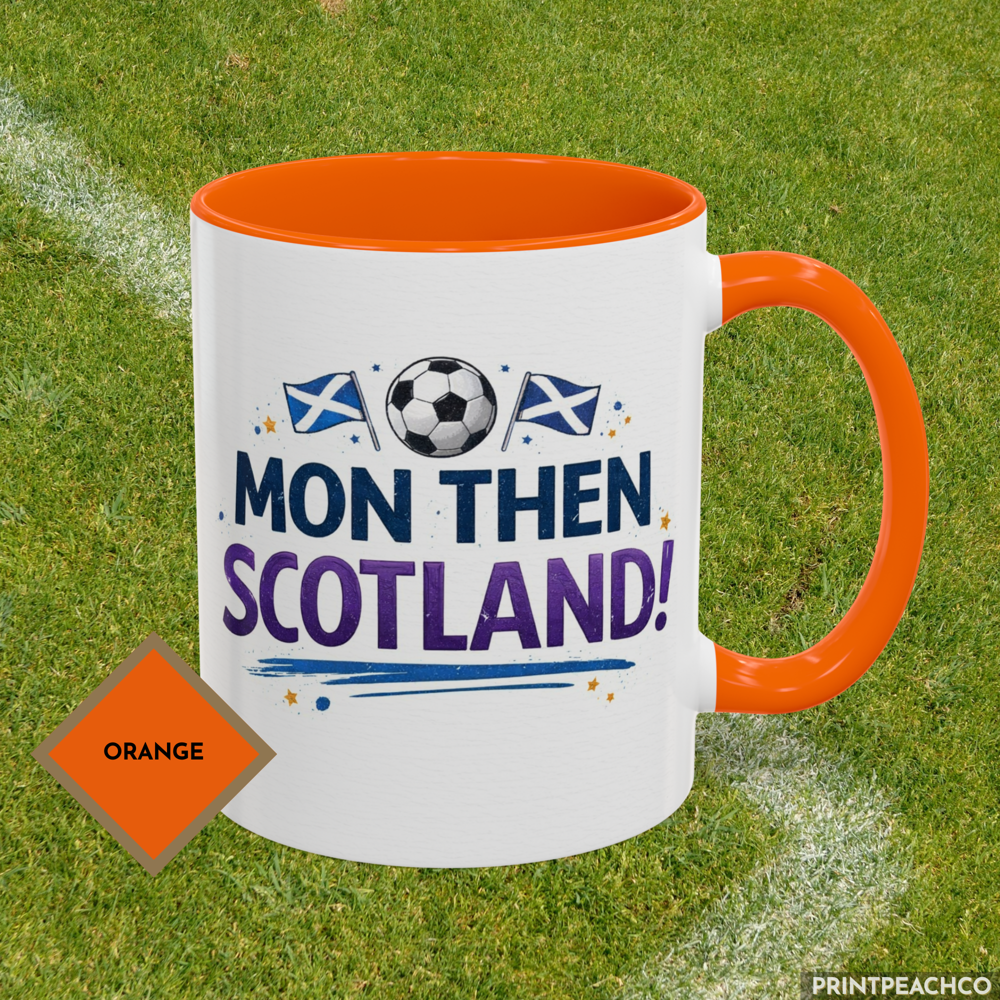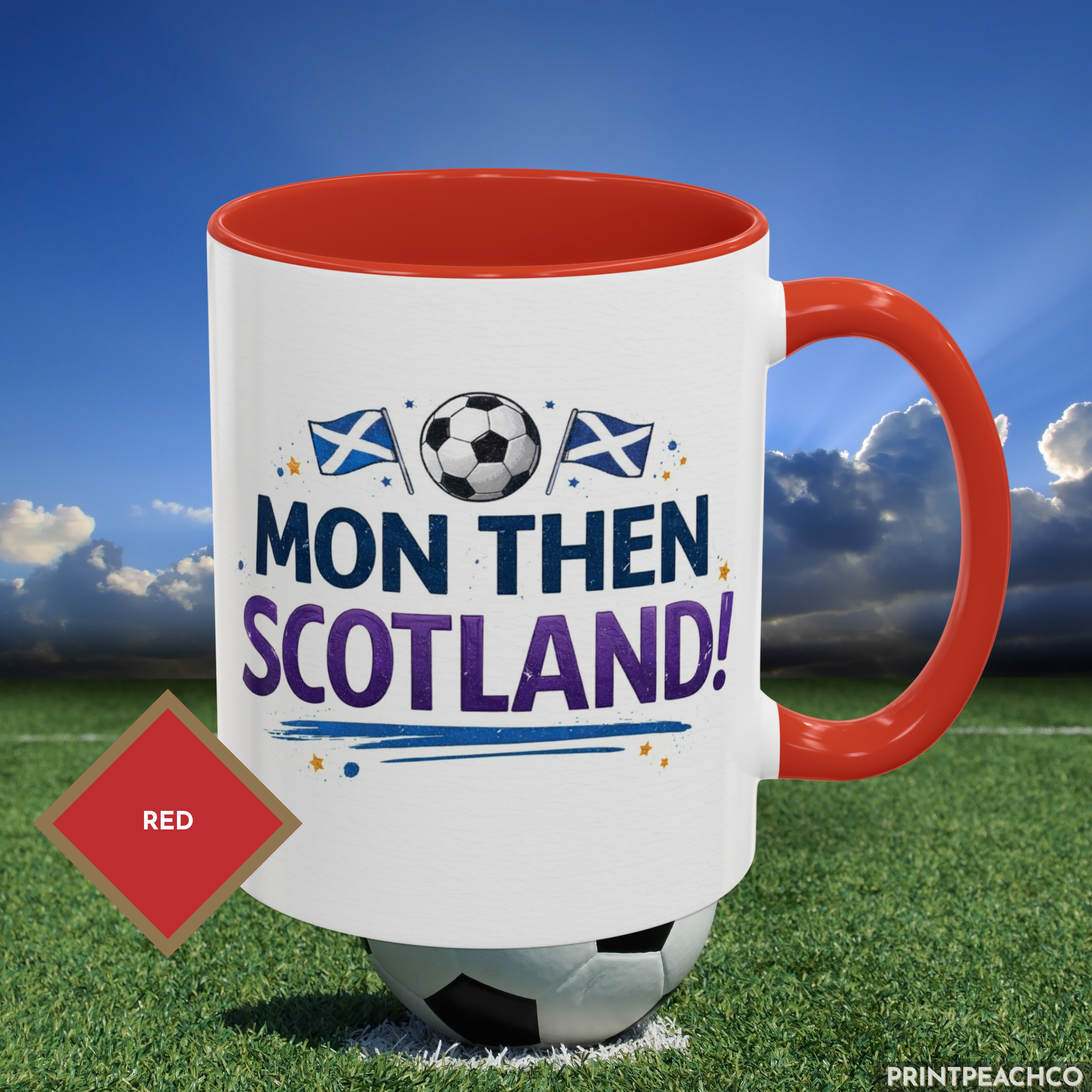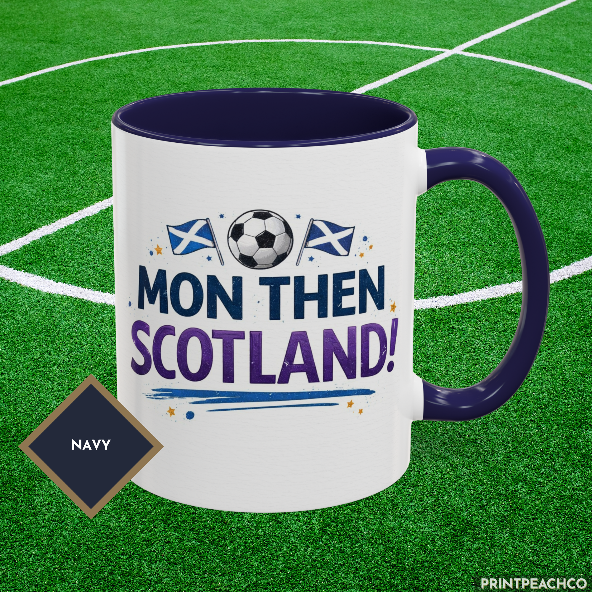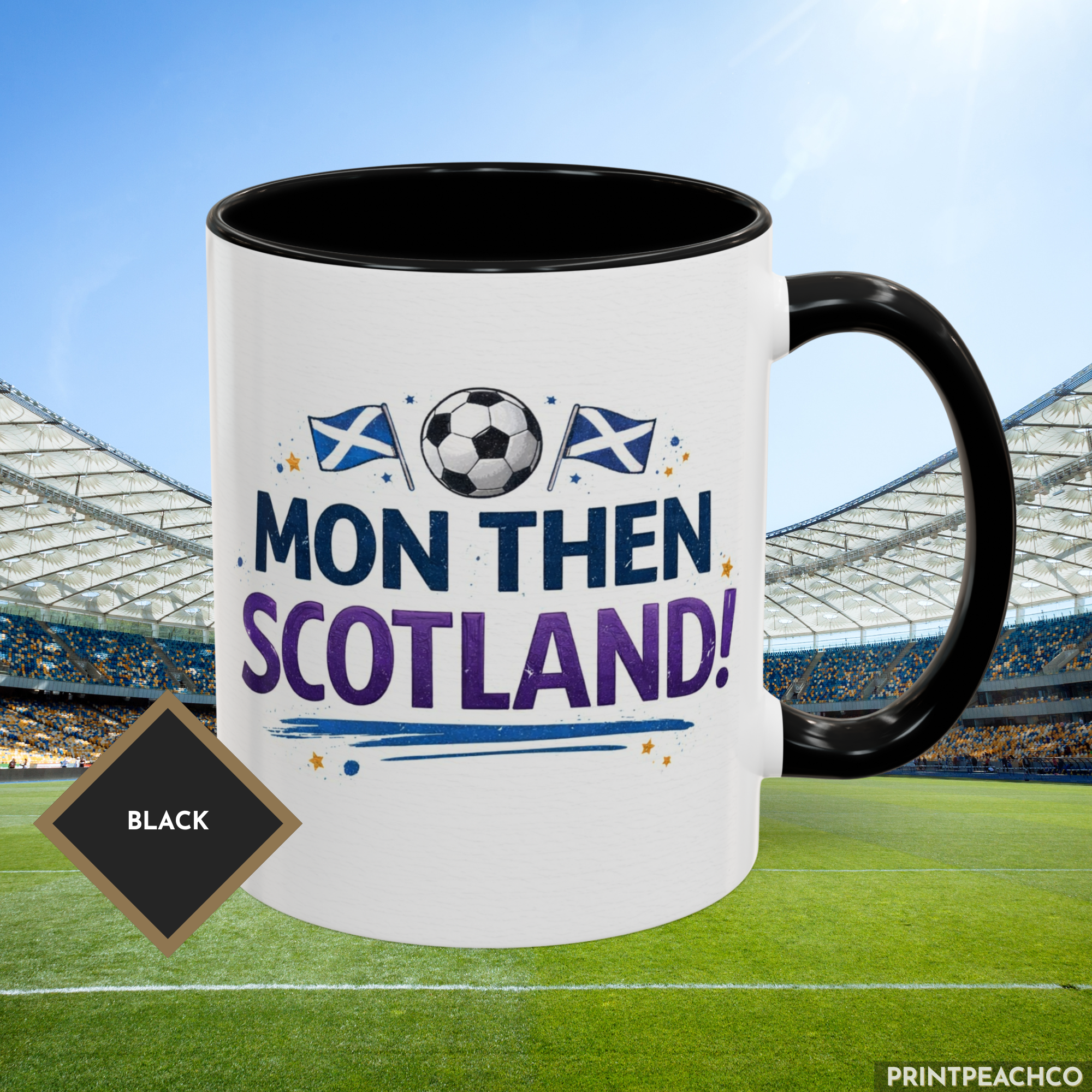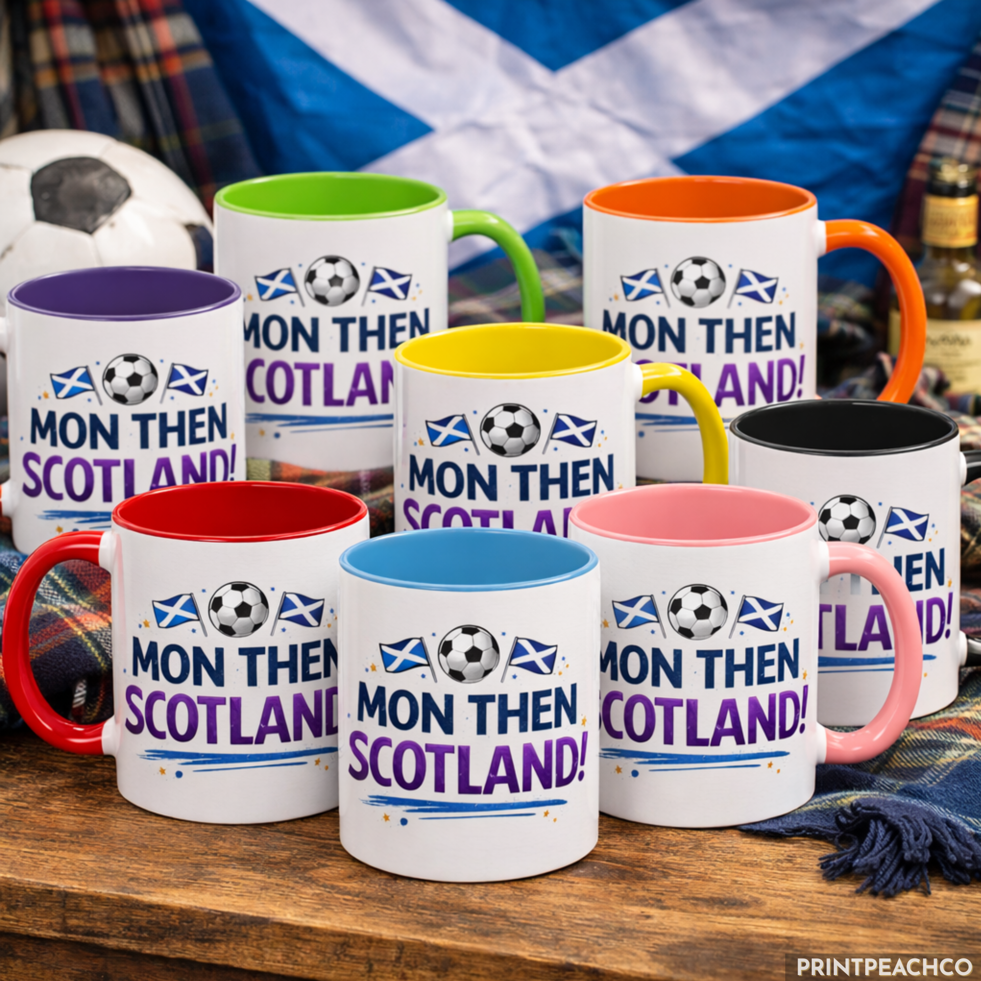 Start your day backing Scotland with a mug made for true supporters. Featuring the bold “MON THEN SCOTLAND!” design with football and Saltire details, this mug is perfect for match mornings, office brews, or cheering on the national team from home.