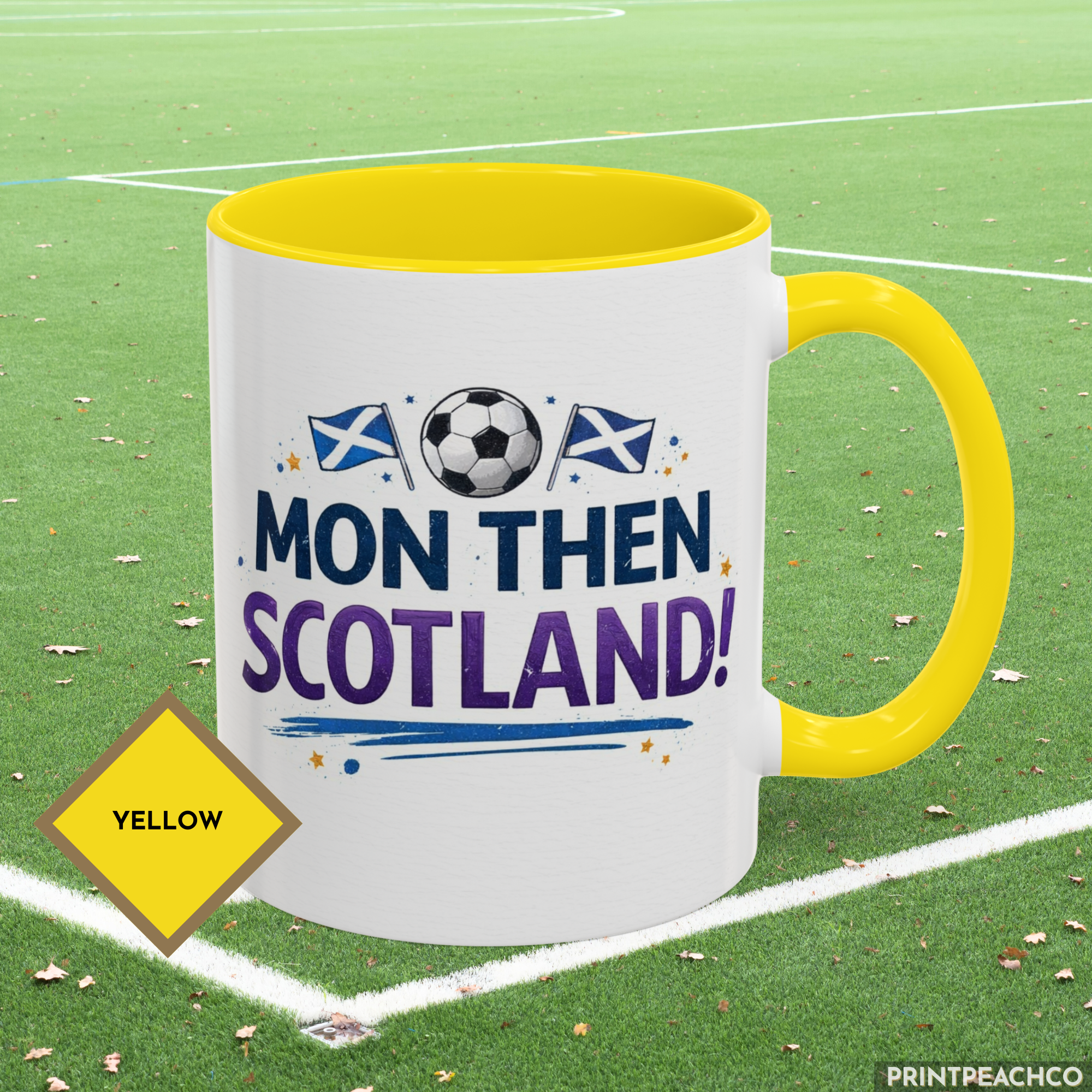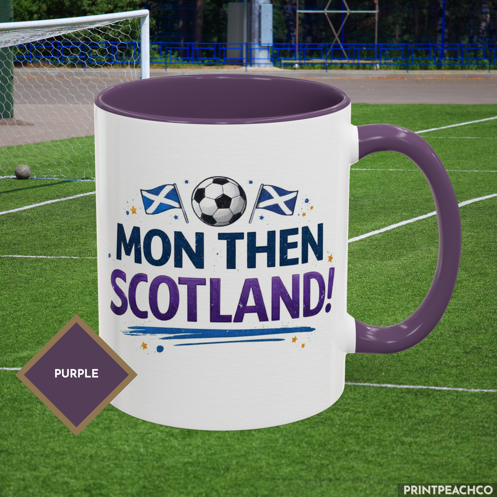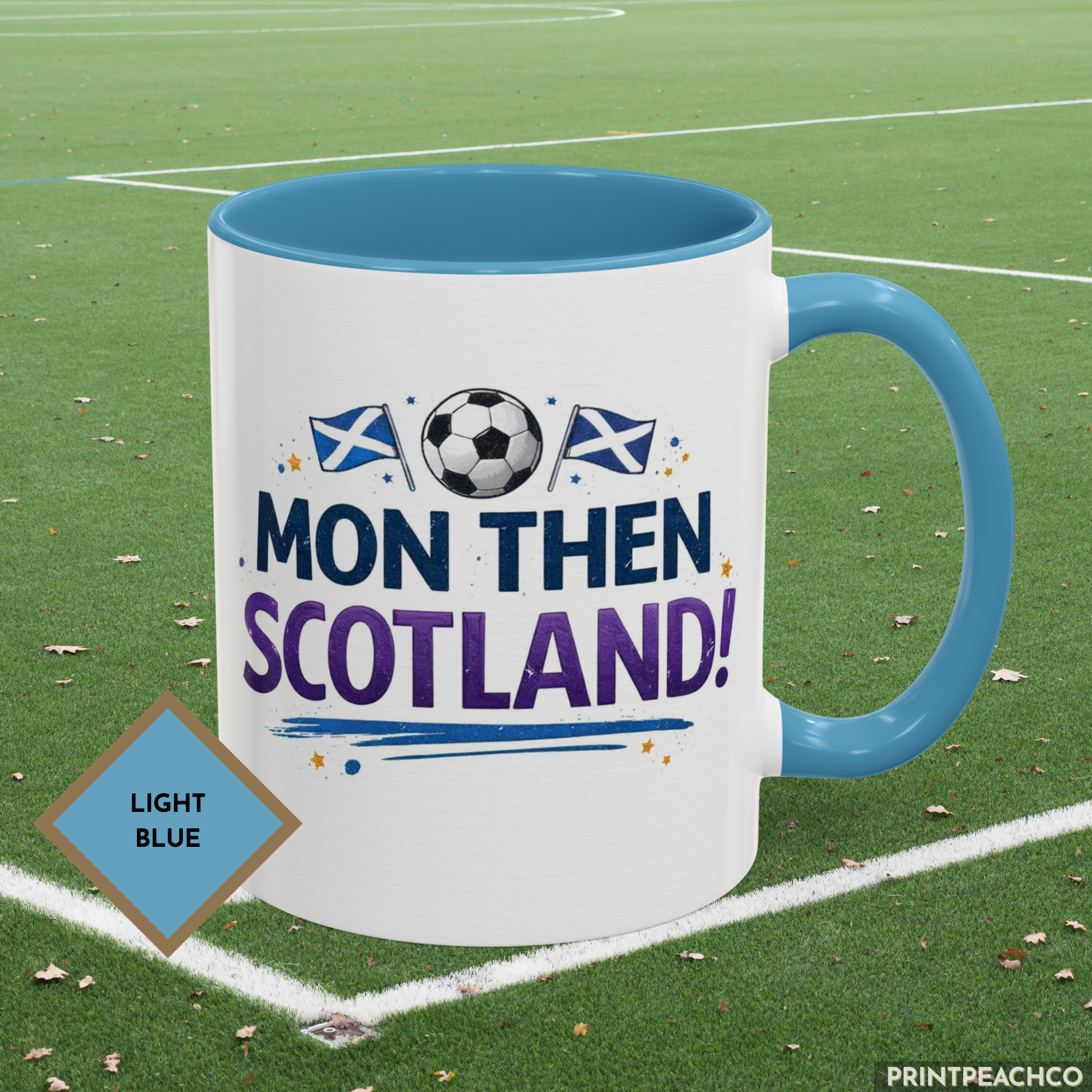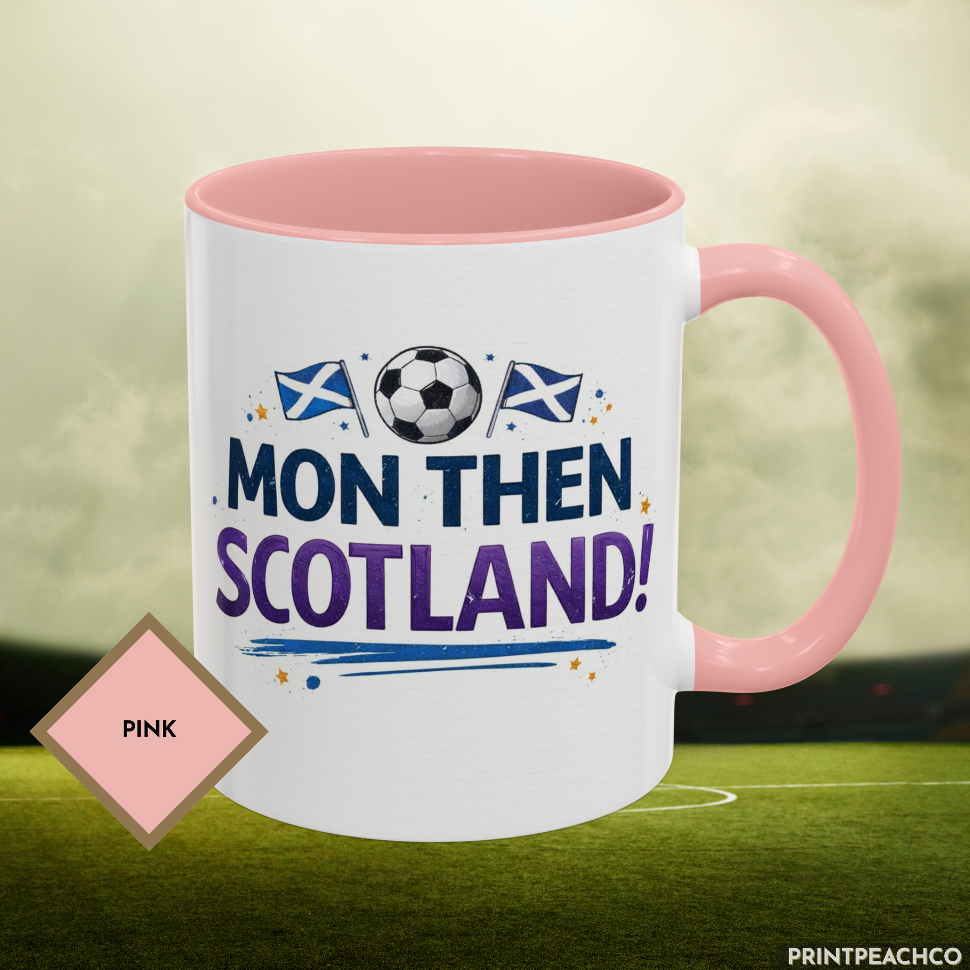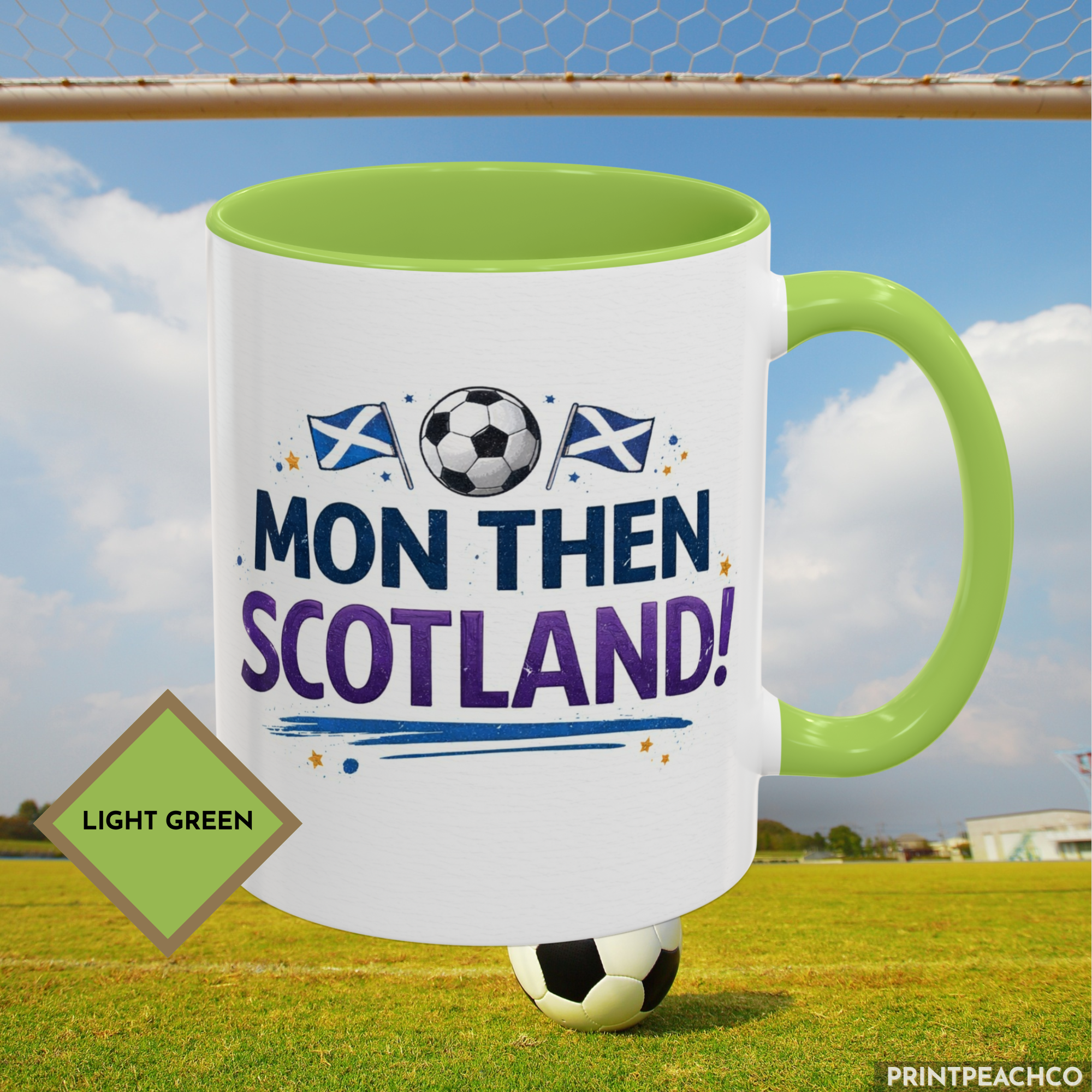 Start your day backing Scotland with a mug made for true supporters. Featuring the bold “MON THEN SCOTLAND!” design with football and Saltire details, this mug is perfect for match mornings, office brews, or cheering on the national team from home.