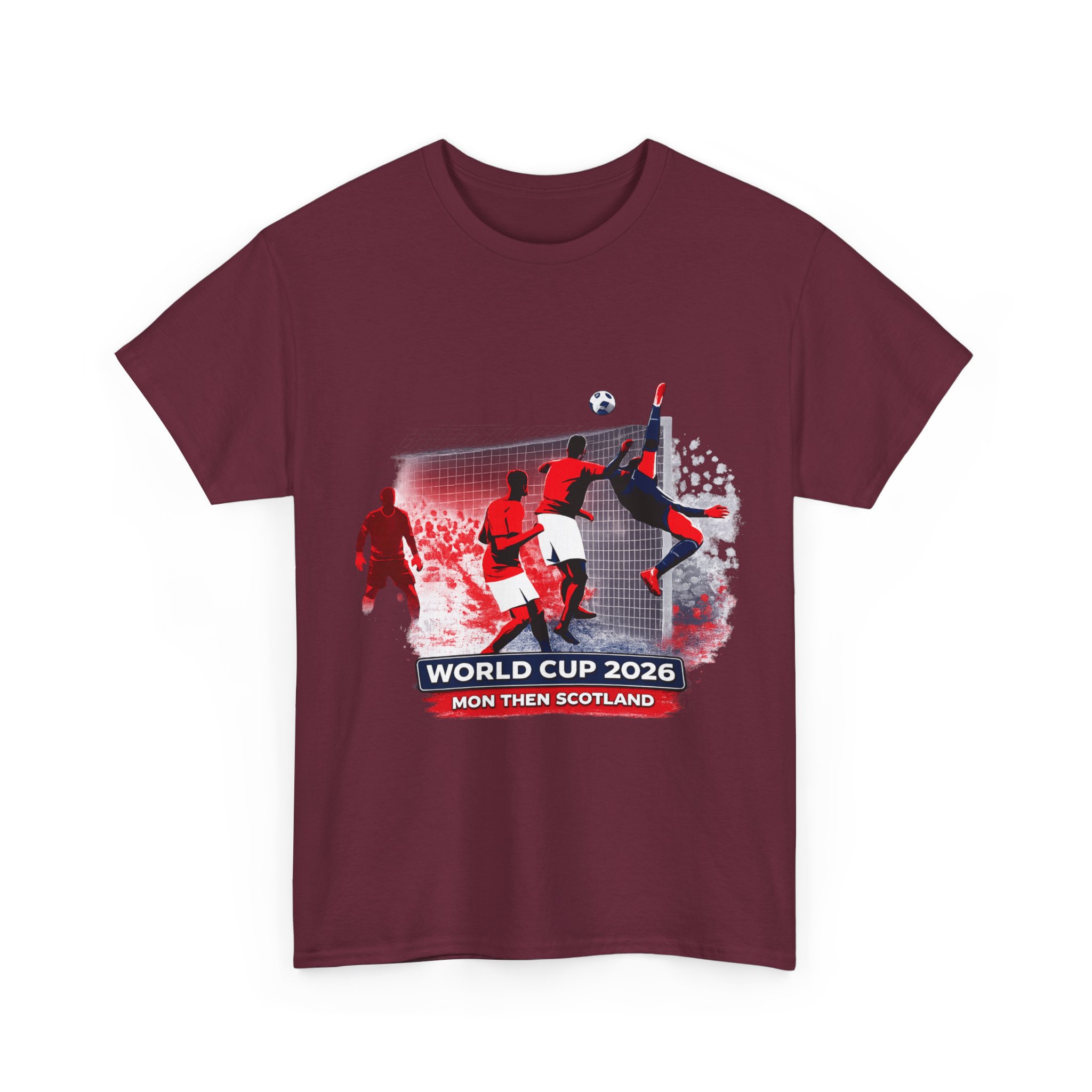 This Scotland football tee captures the split second that lifts fans to their feet — a bicycle kick frozen mid-air, the net waiting, and the noise of the crowd ringing in your ears. With World Cup 2026 woven into the design, it’s a shirt made for supporters who live for moments, not highlights reels.