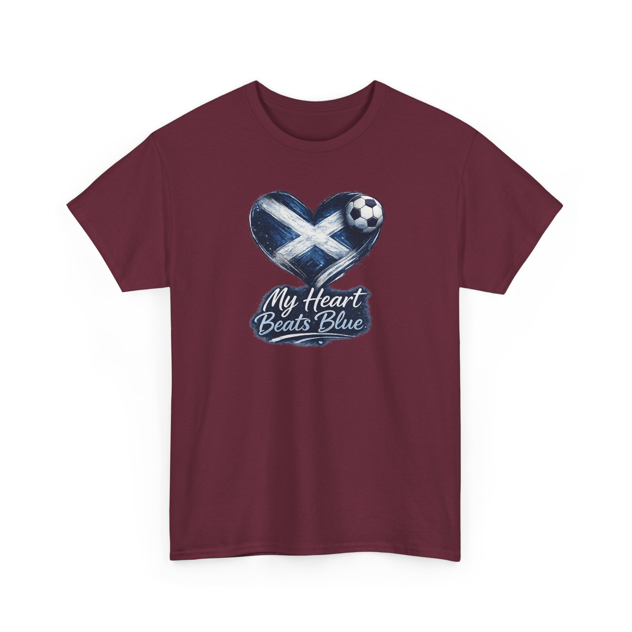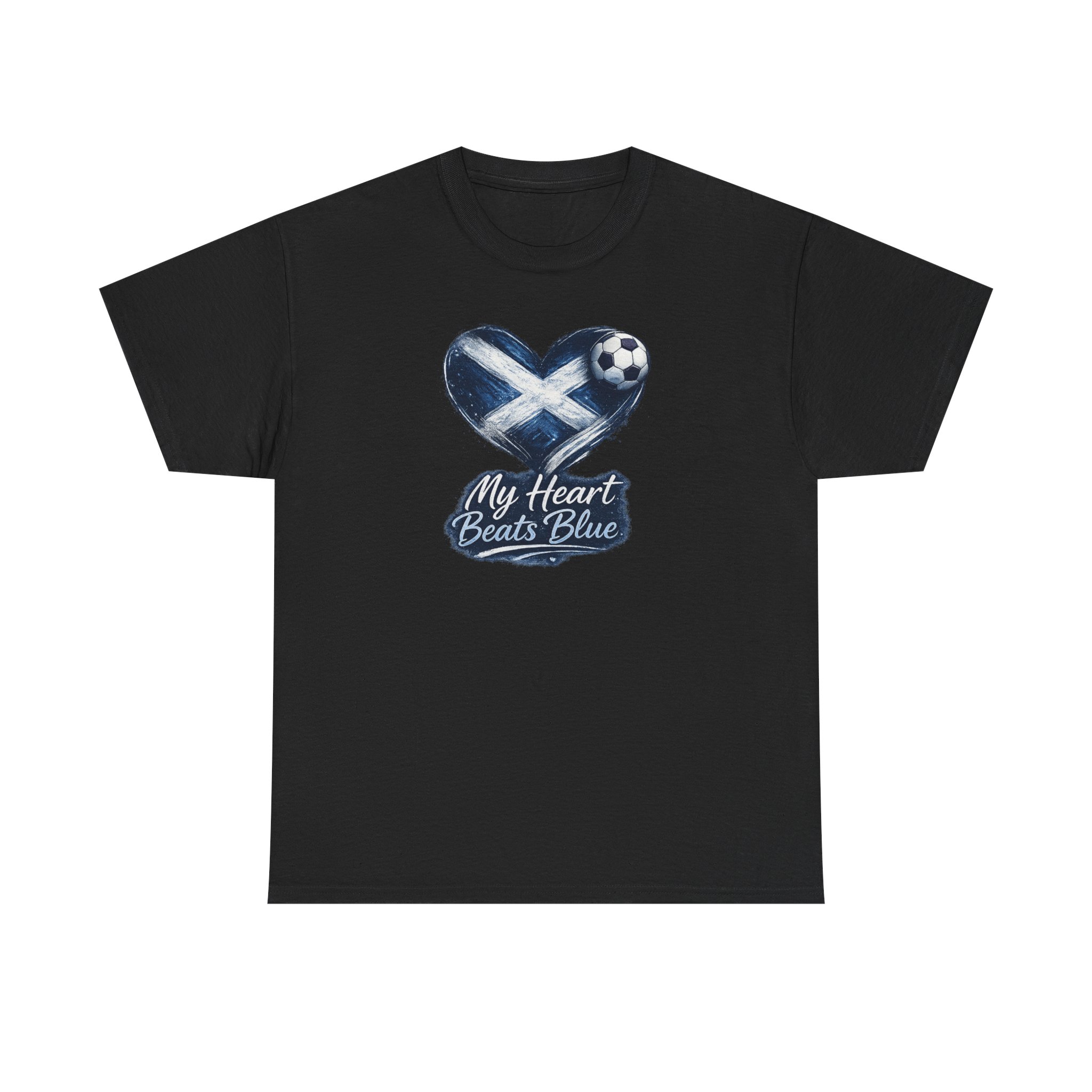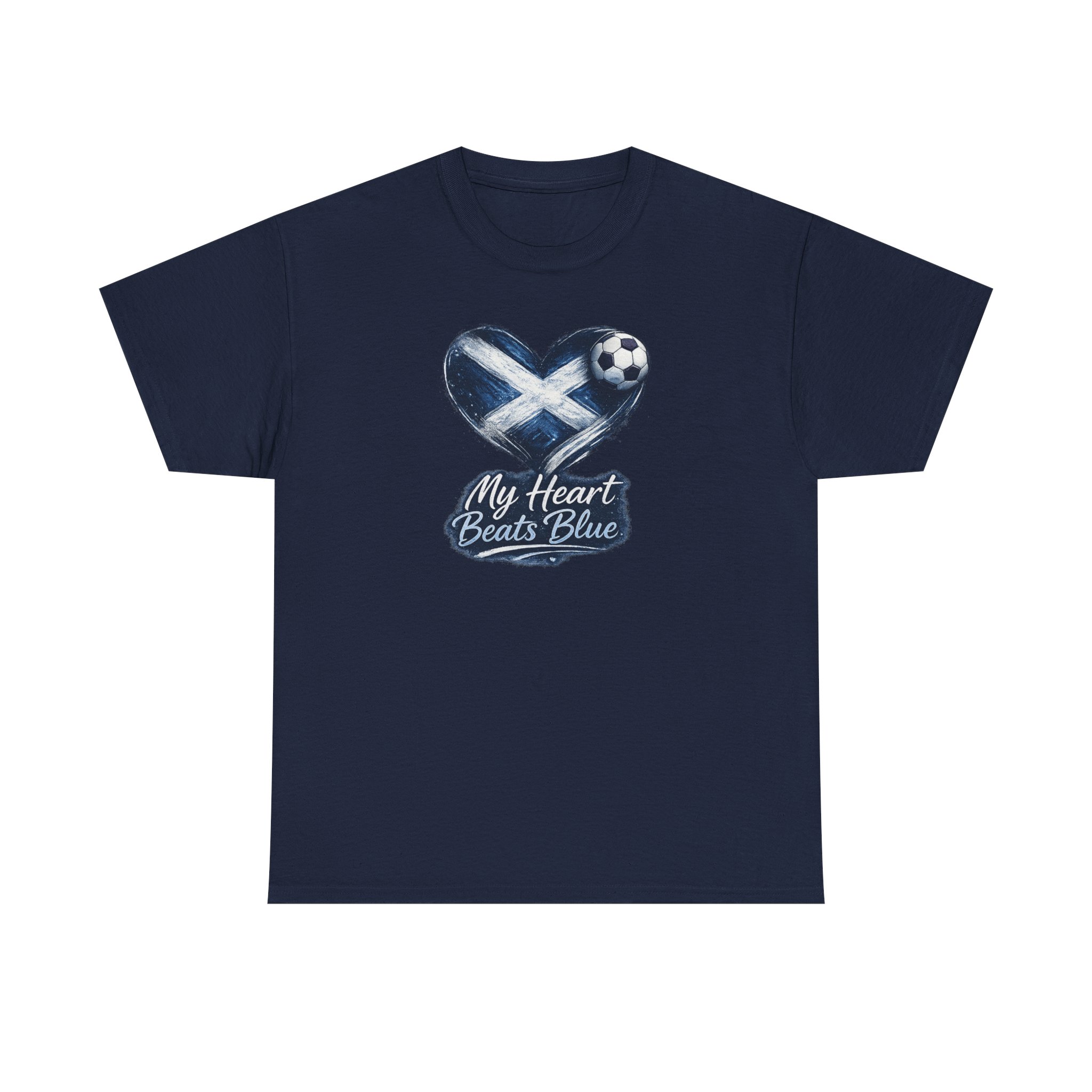 “My Heart Beats Blue” blends Scottish football passion with a soft, wearable Valentine’s feel. The hand-painted Saltire heart and tucked-in football give it meaning without turning it into a novelty piece. It’s the kind of shirt you wear because it means something — whether that’s love for Scotland, the game, or someone who shares both. ⚽💙