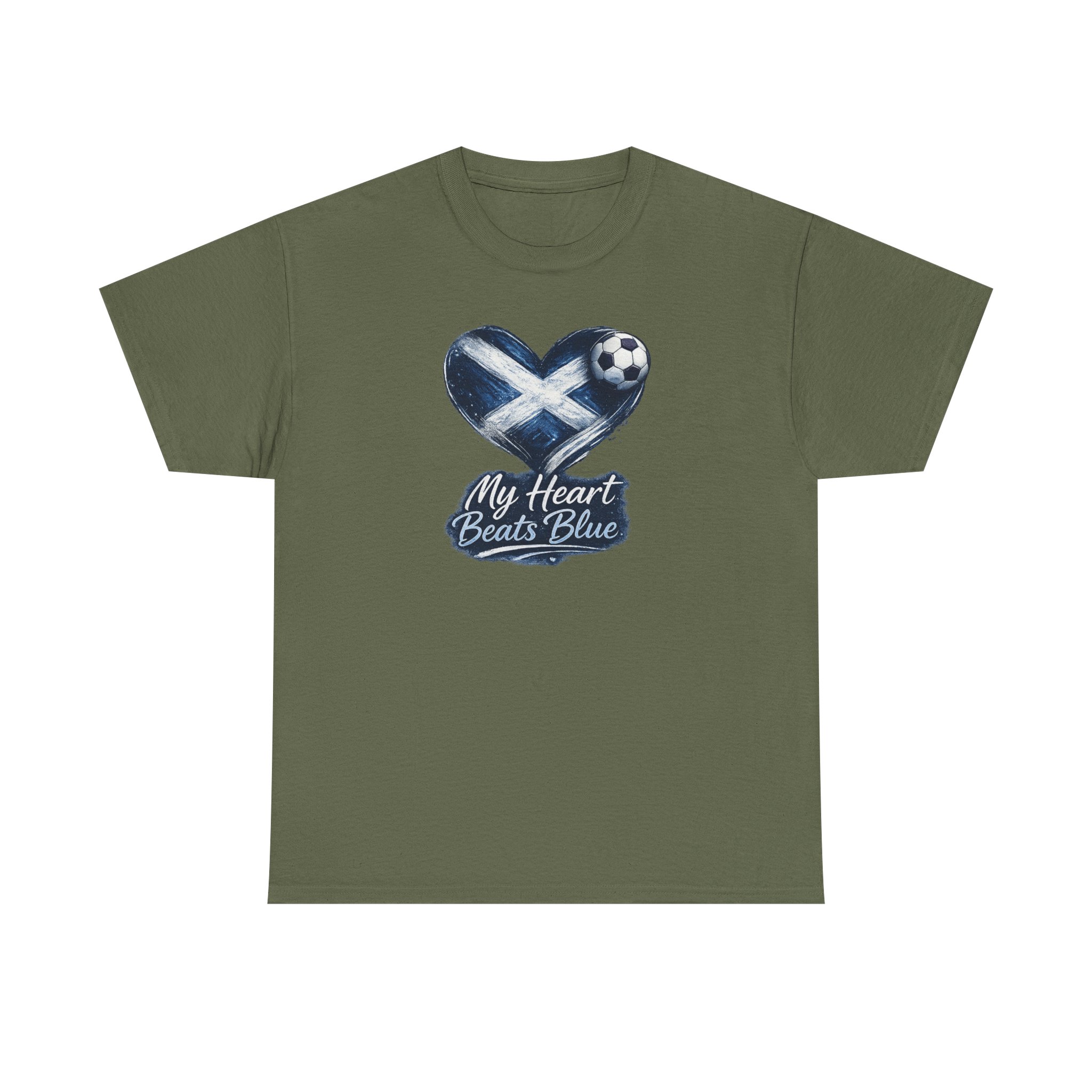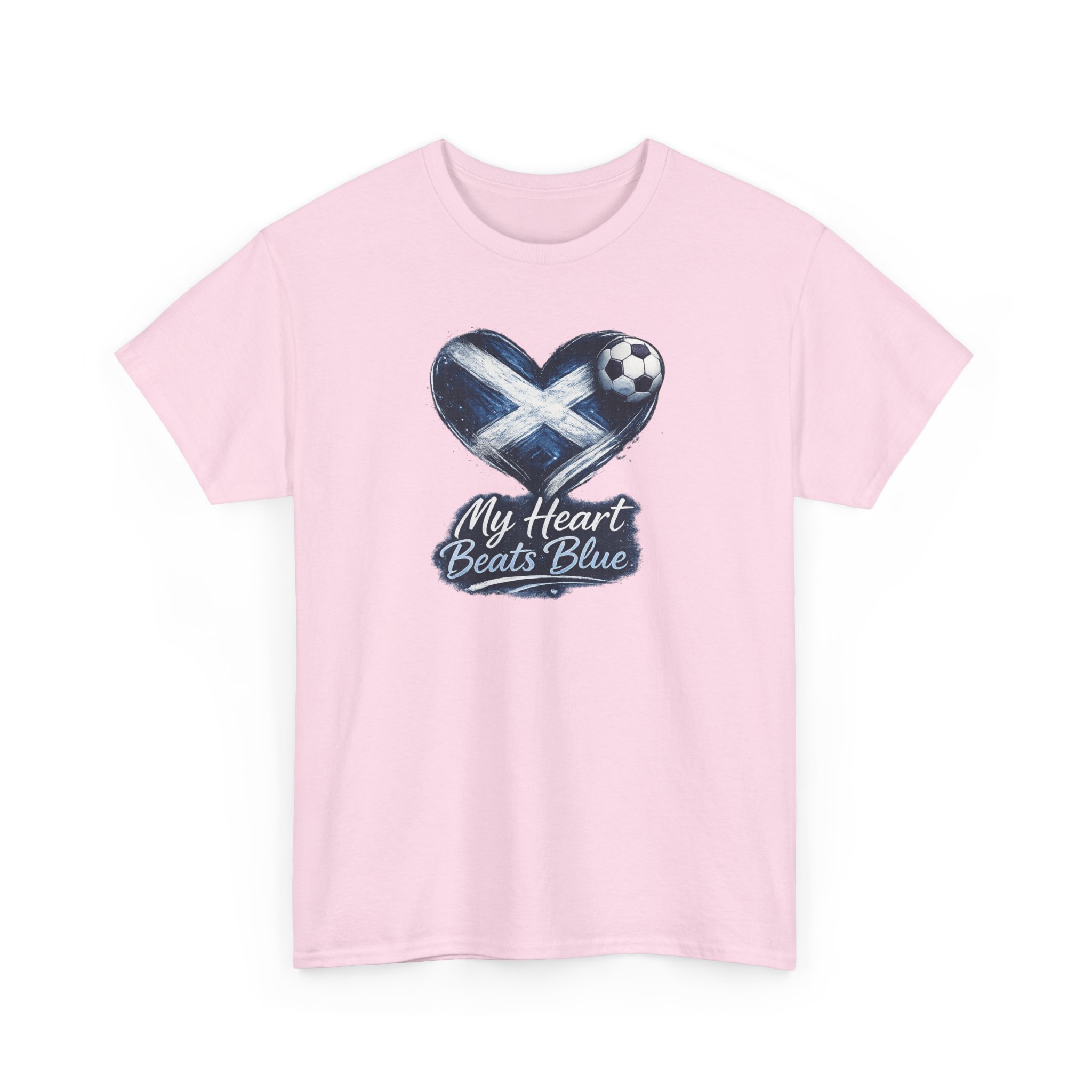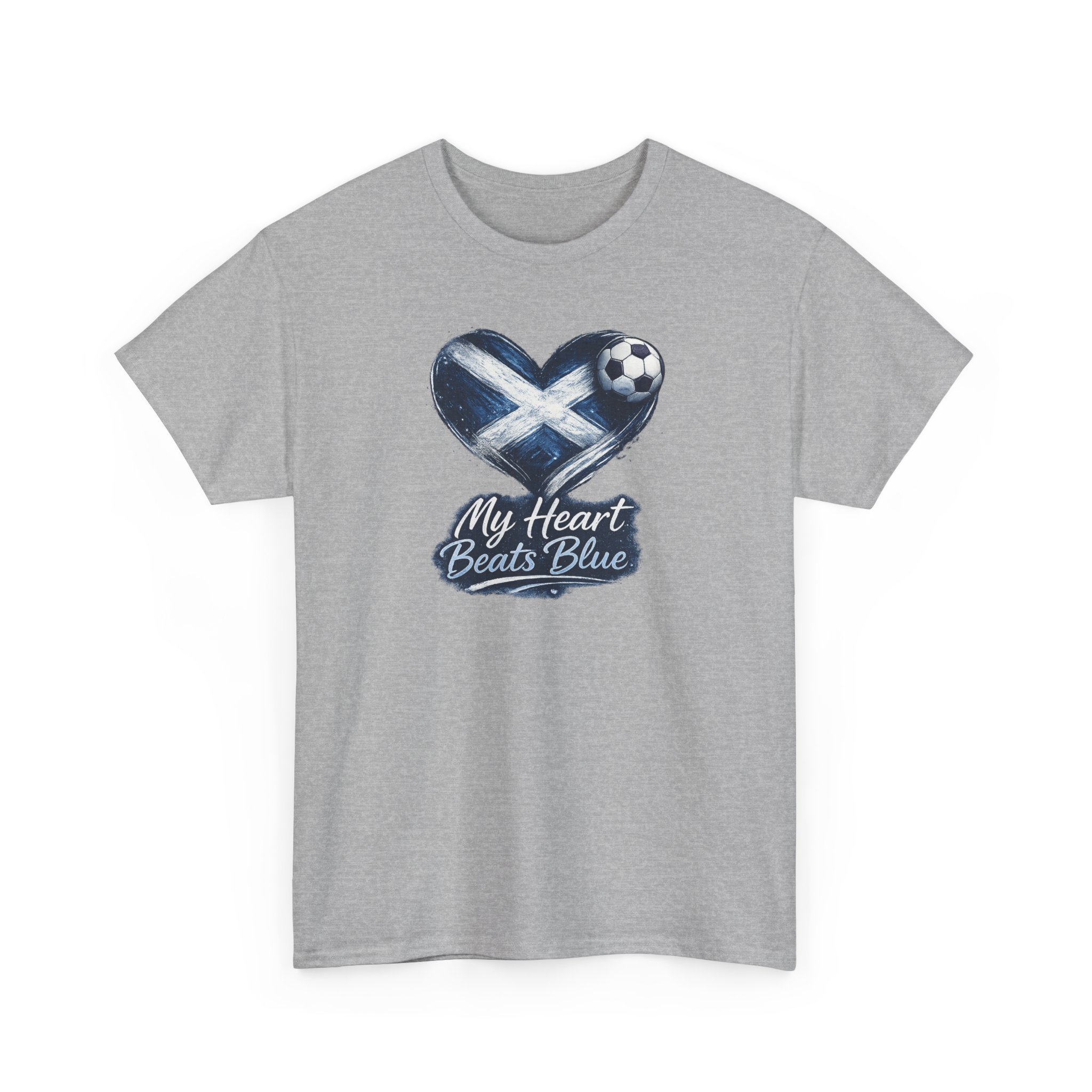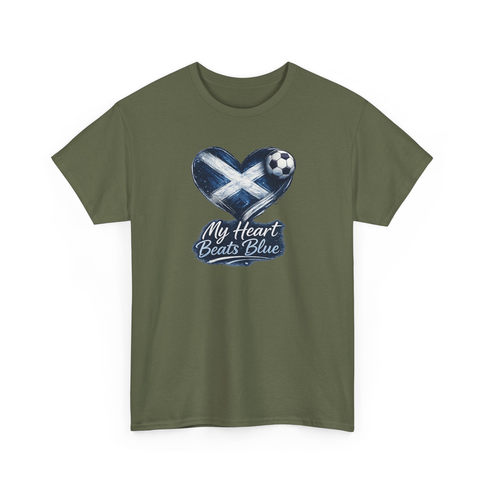 “My Heart Beats Blue” blends Scottish football passion with a soft, wearable Valentine’s feel. The hand-painted Saltire heart and tucked-in football give it meaning without turning it into a novelty piece. It’s the kind of shirt you wear because it means something — whether that’s love for Scotland, the game, or someone who shares both. ⚽💙