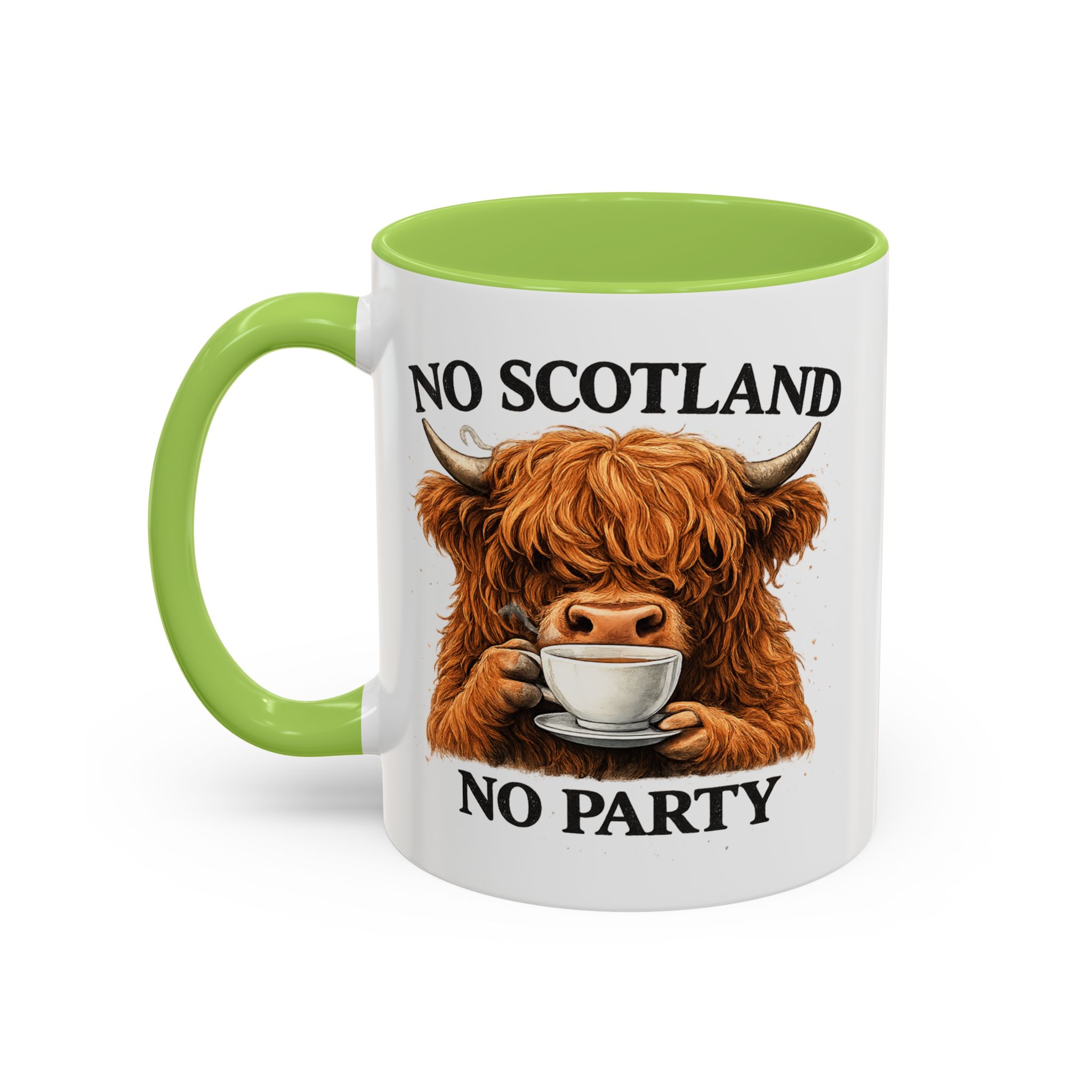 Bring a bit of Scottish humour to your tea or coffee with this funny “No Scotland No Party” Highland cow mug. Featuring a shaggy Highland cow enjoying a cup of tea, this playful design is perfect for Scotland football supporters, Tartan Army fans, and anyone who loves Scottish banter.