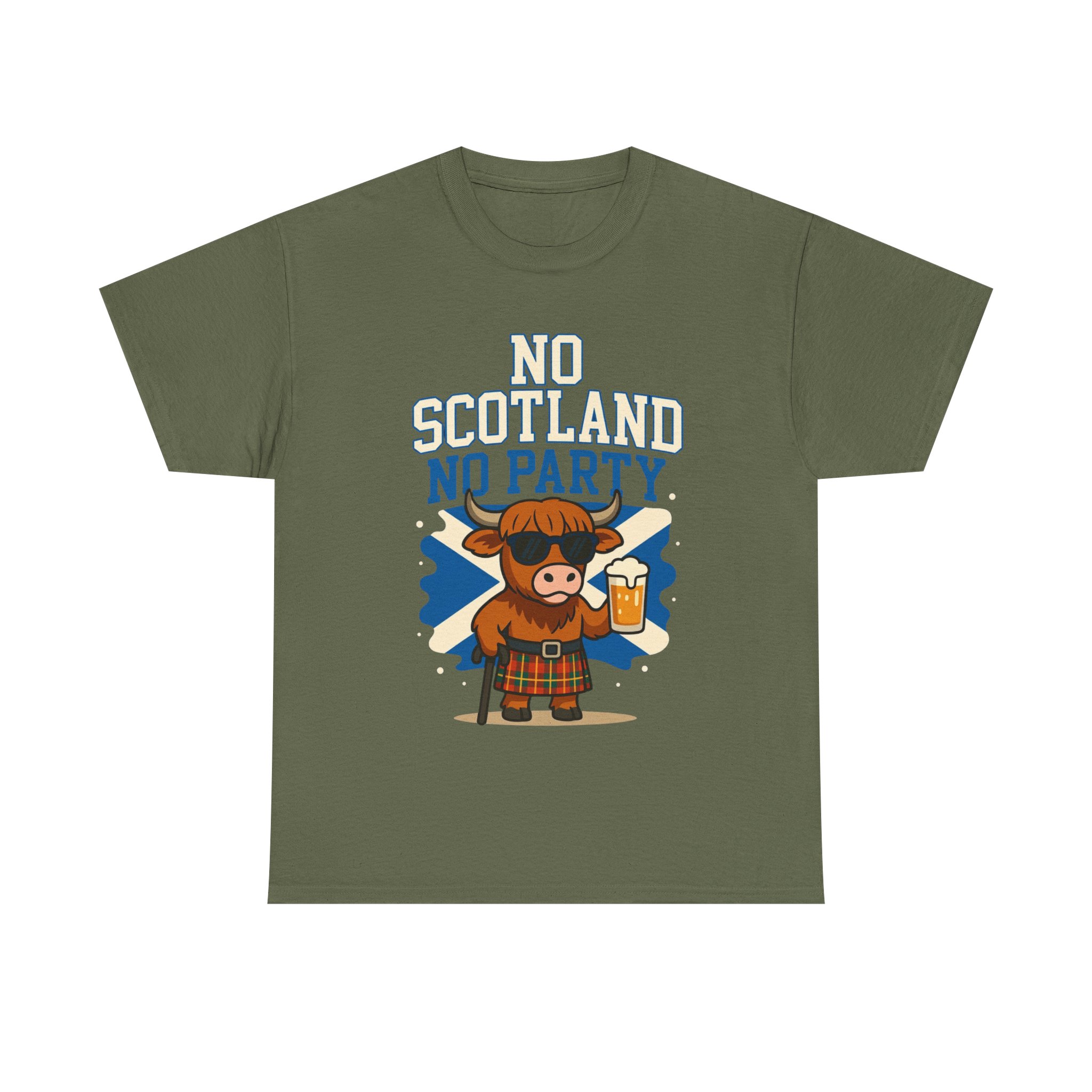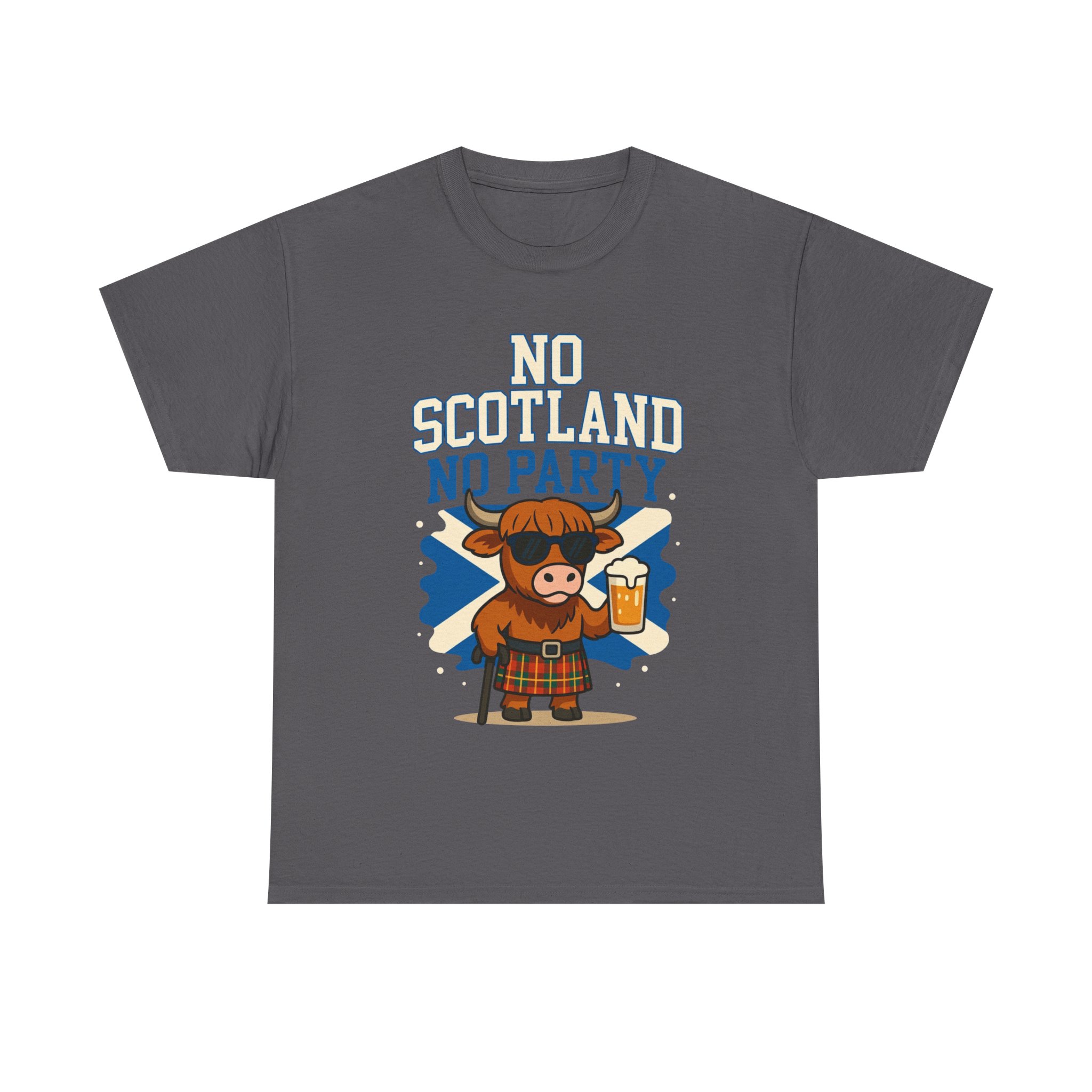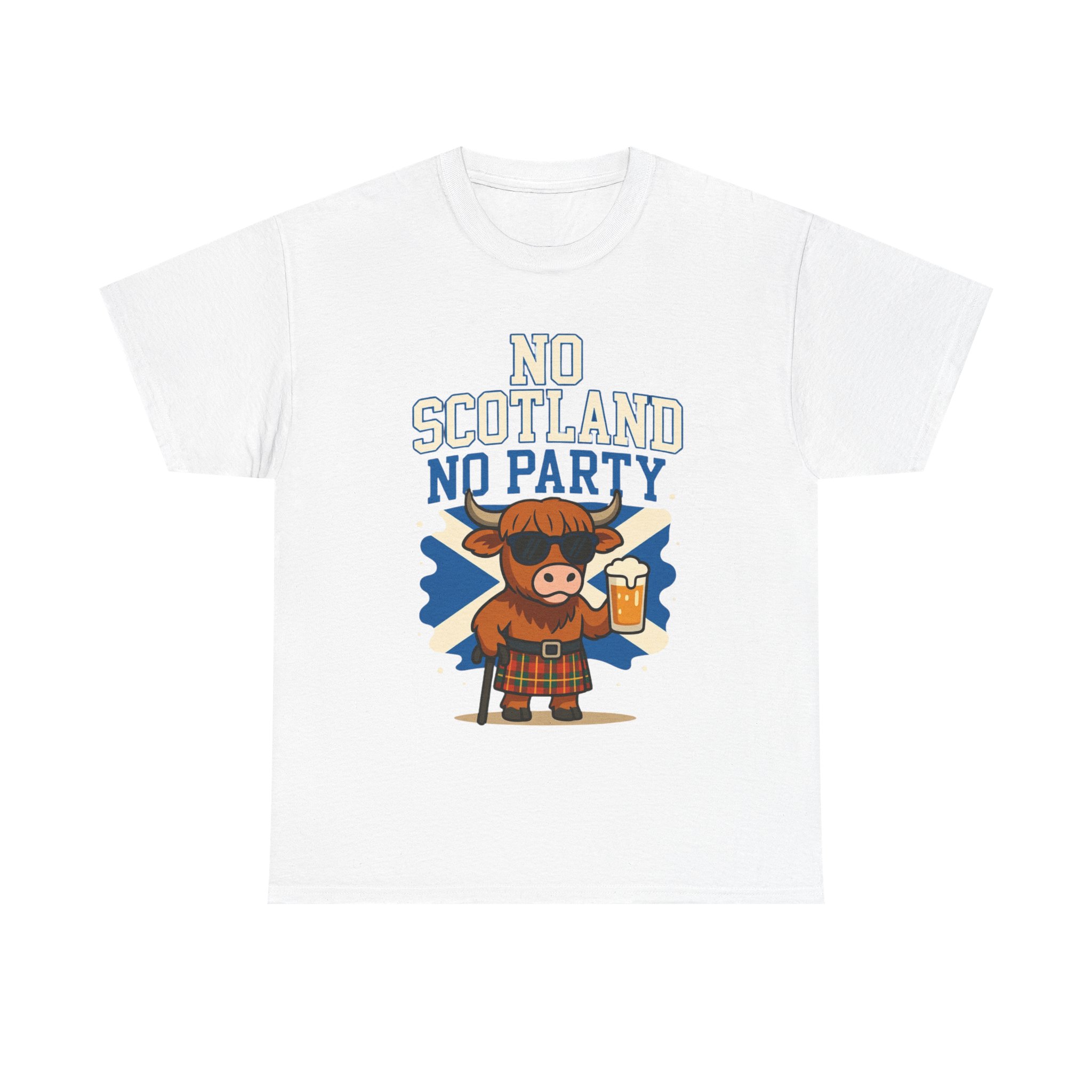 Bring the party wherever you go with this bold “No Scotland No Party” Highland Cow T-Shirt 🐮🏴