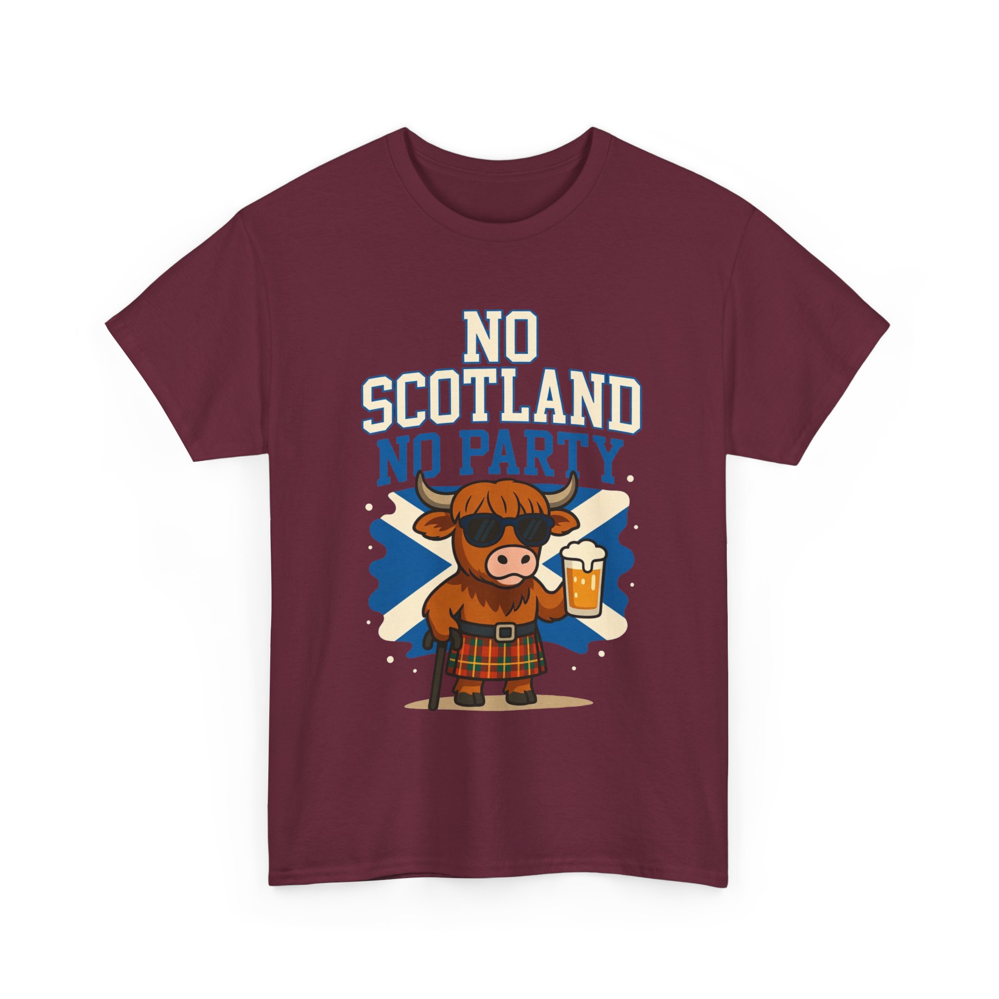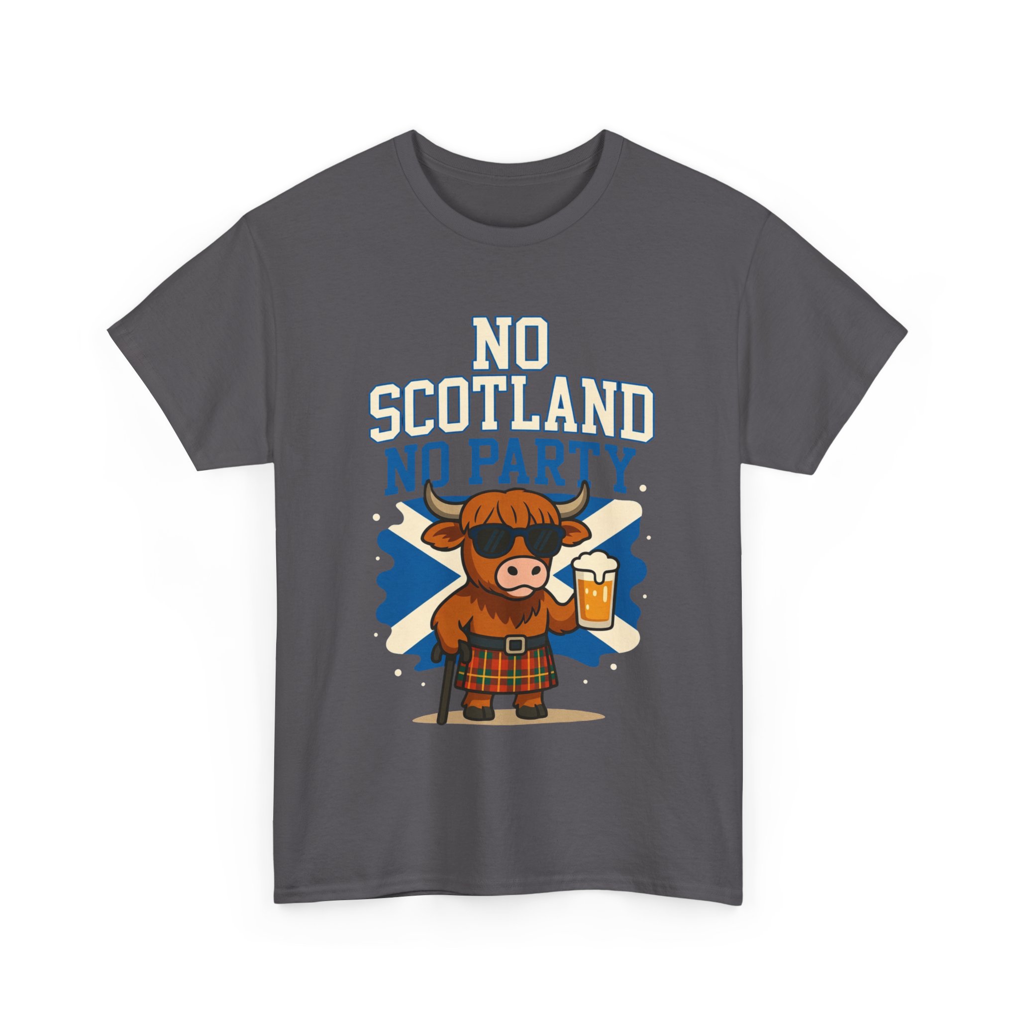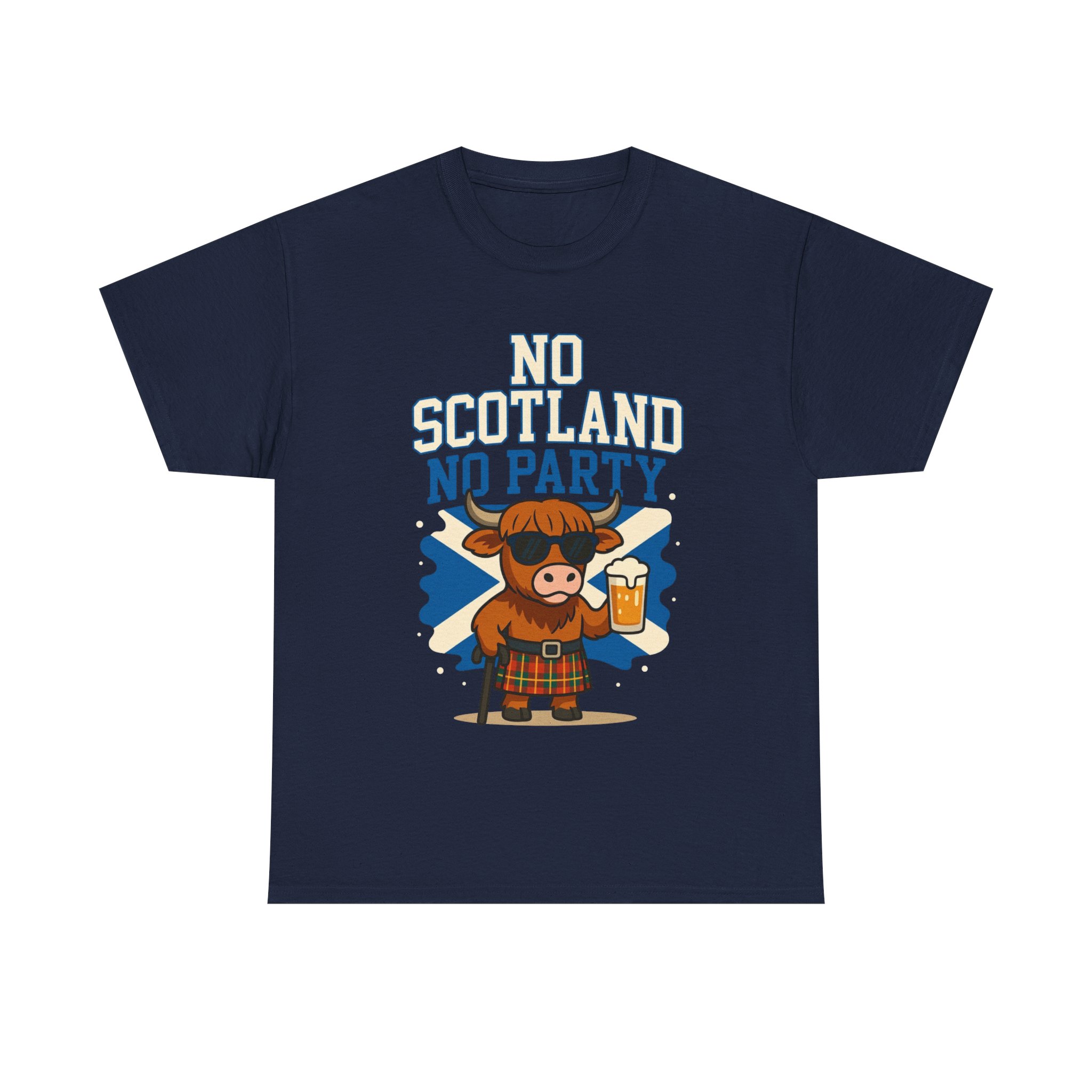Bring the party wherever you go with this bold “No Scotland No Party” Highland Cow T-Shirt 🐮🏴