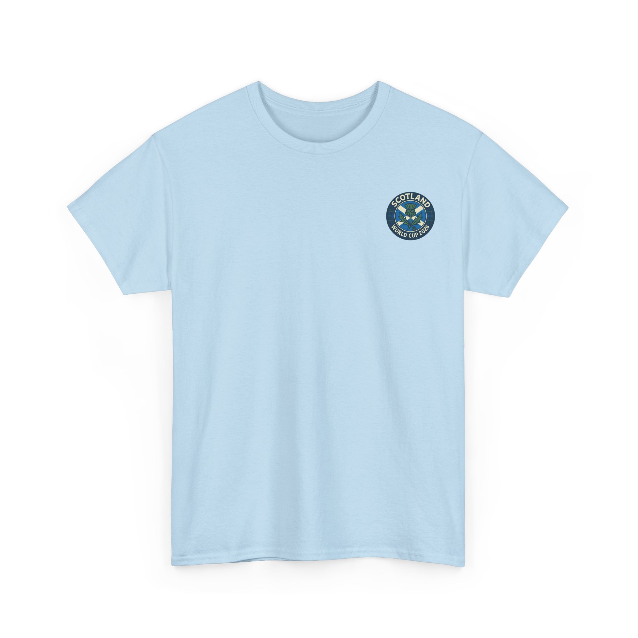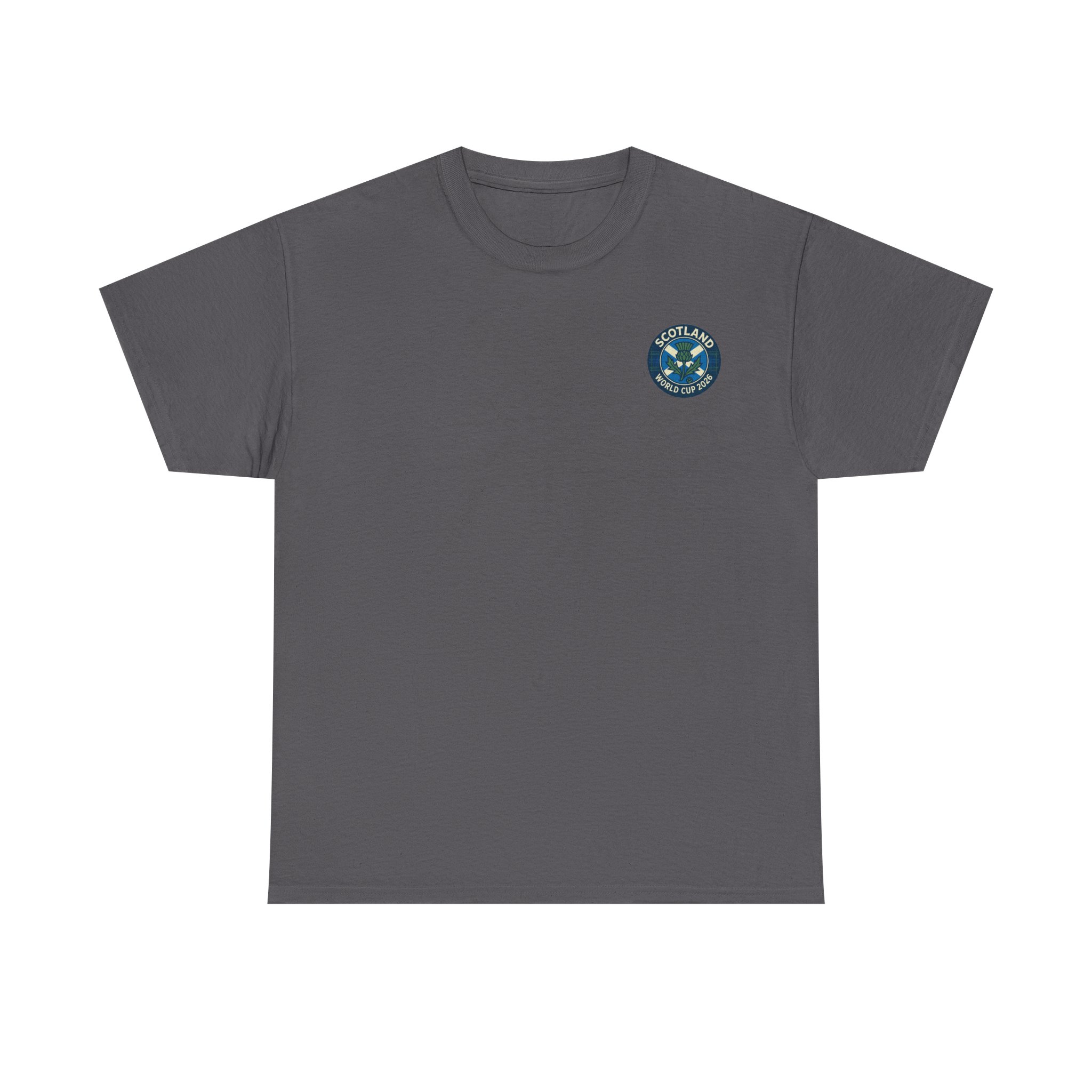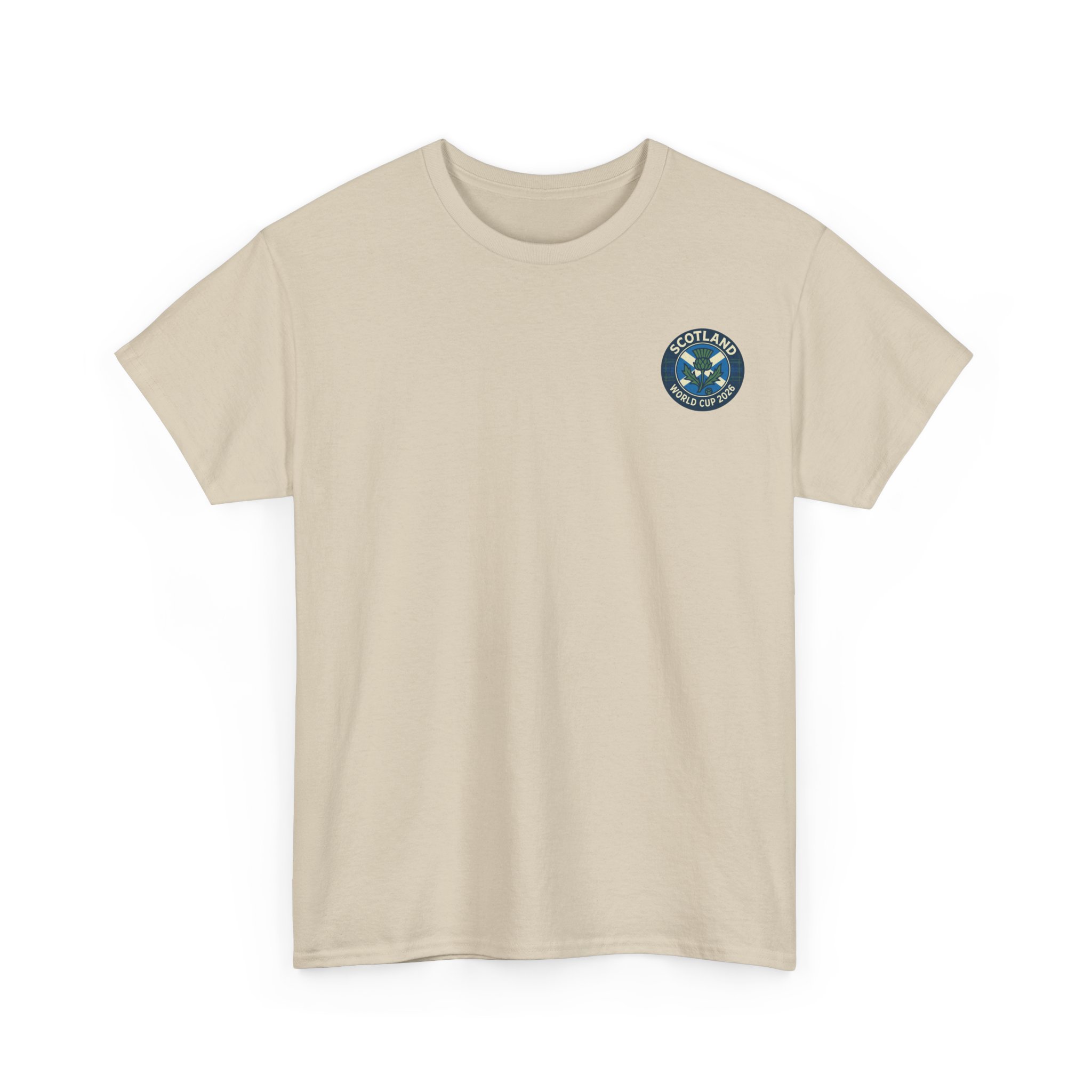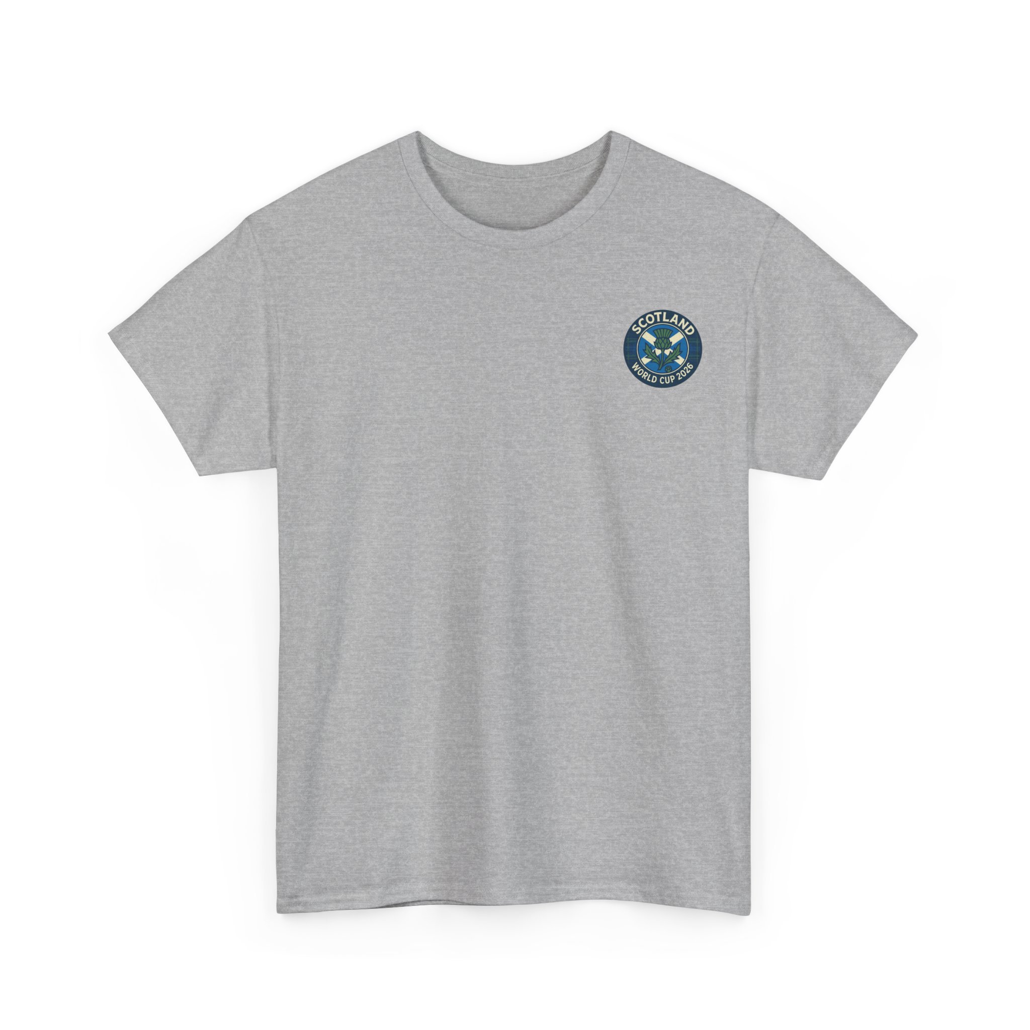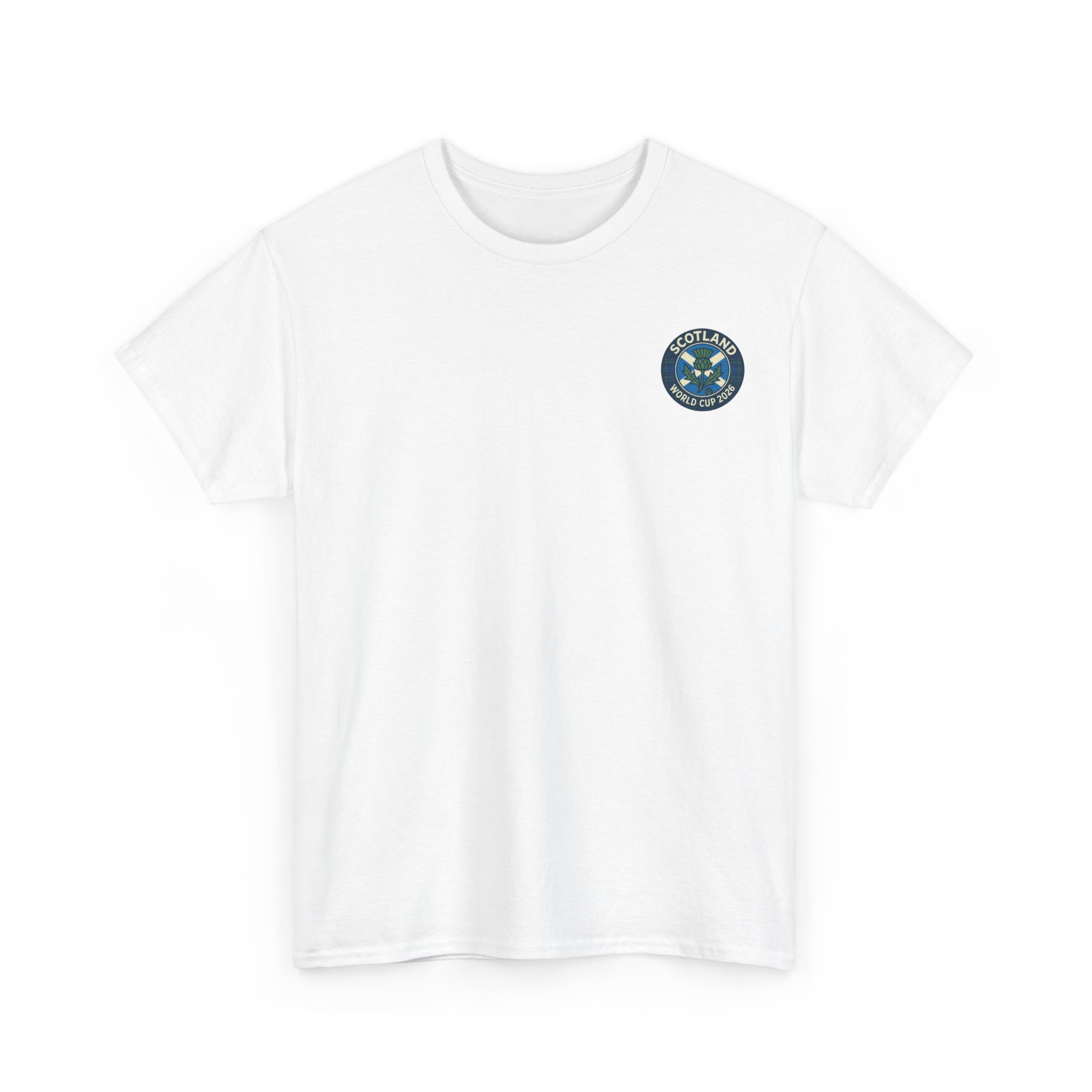 Celebrate Scotland’s journey to the 2026 World Cup with this original supporters’ tee, featuring a handcrafted back design with a custom personalization option and a custom-made Scotland badge on the front. Created for fans traveling to Canada, Mexico, and the USA, this shirt combines patriotism, adventure and timeless Scottish character.