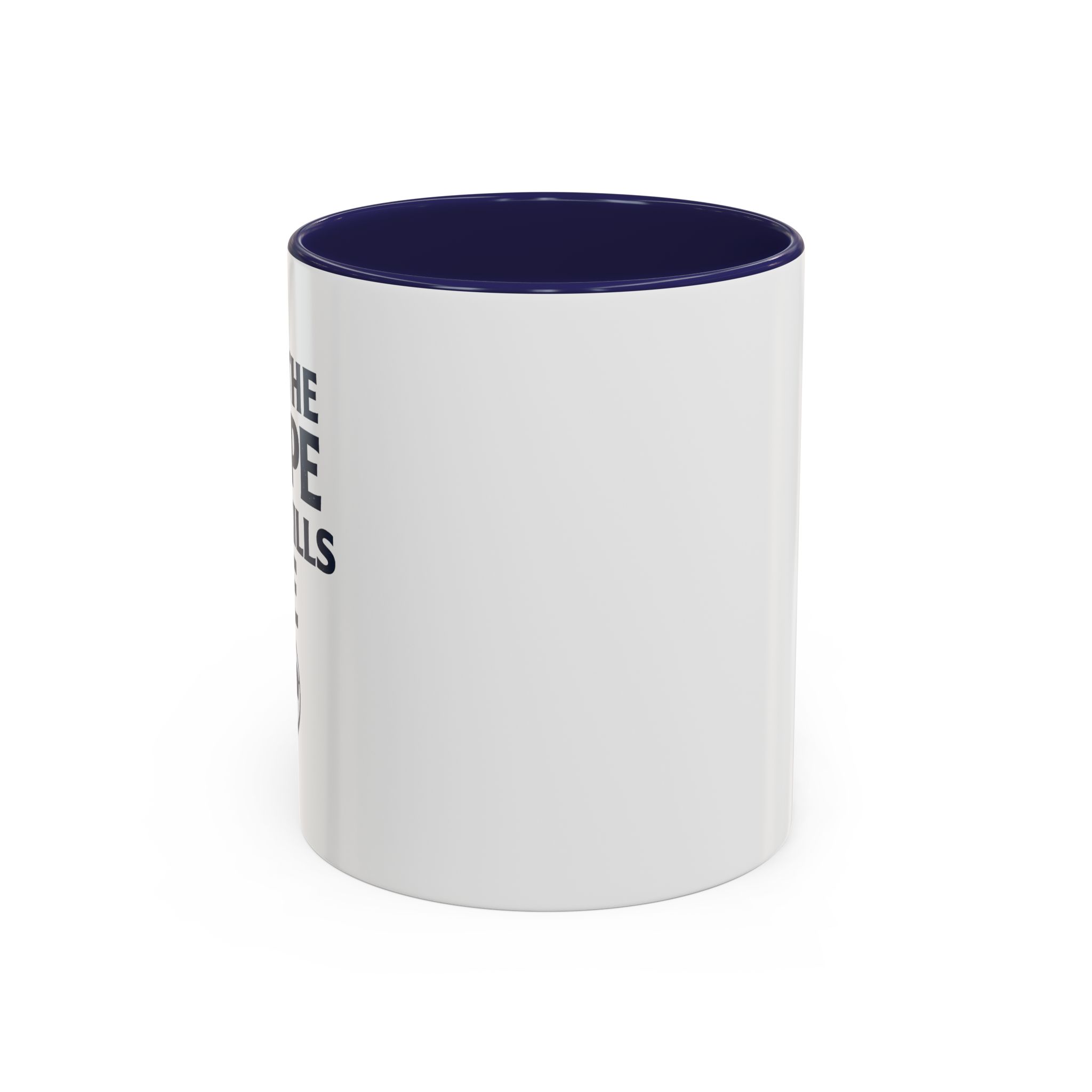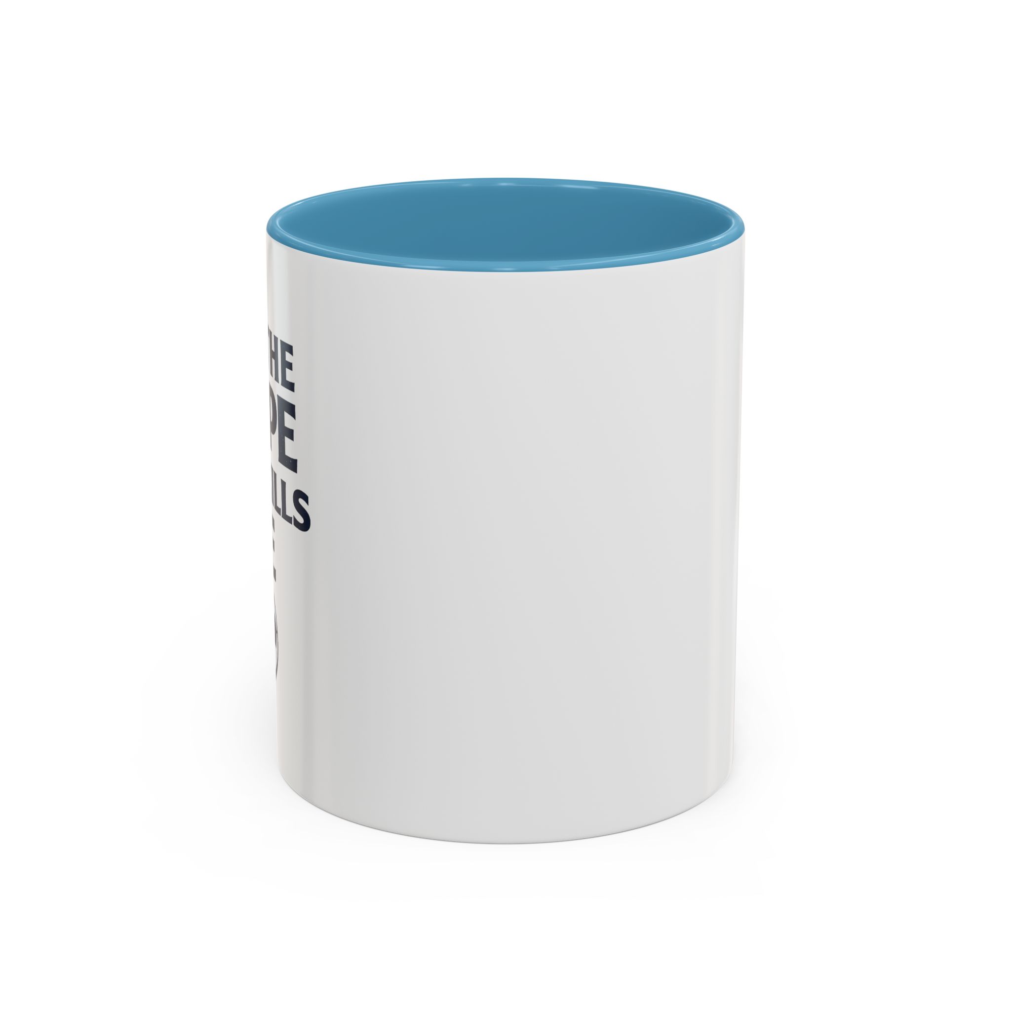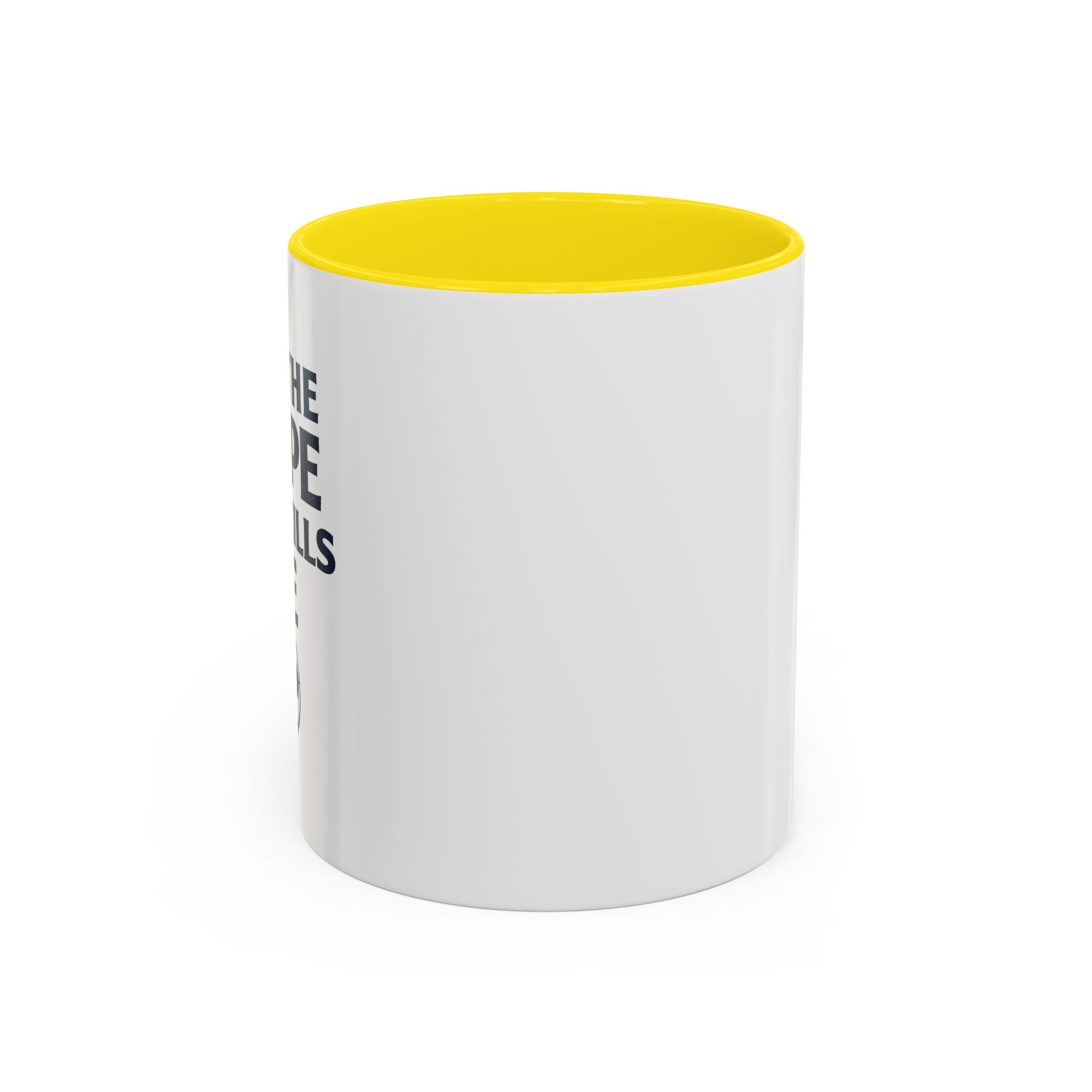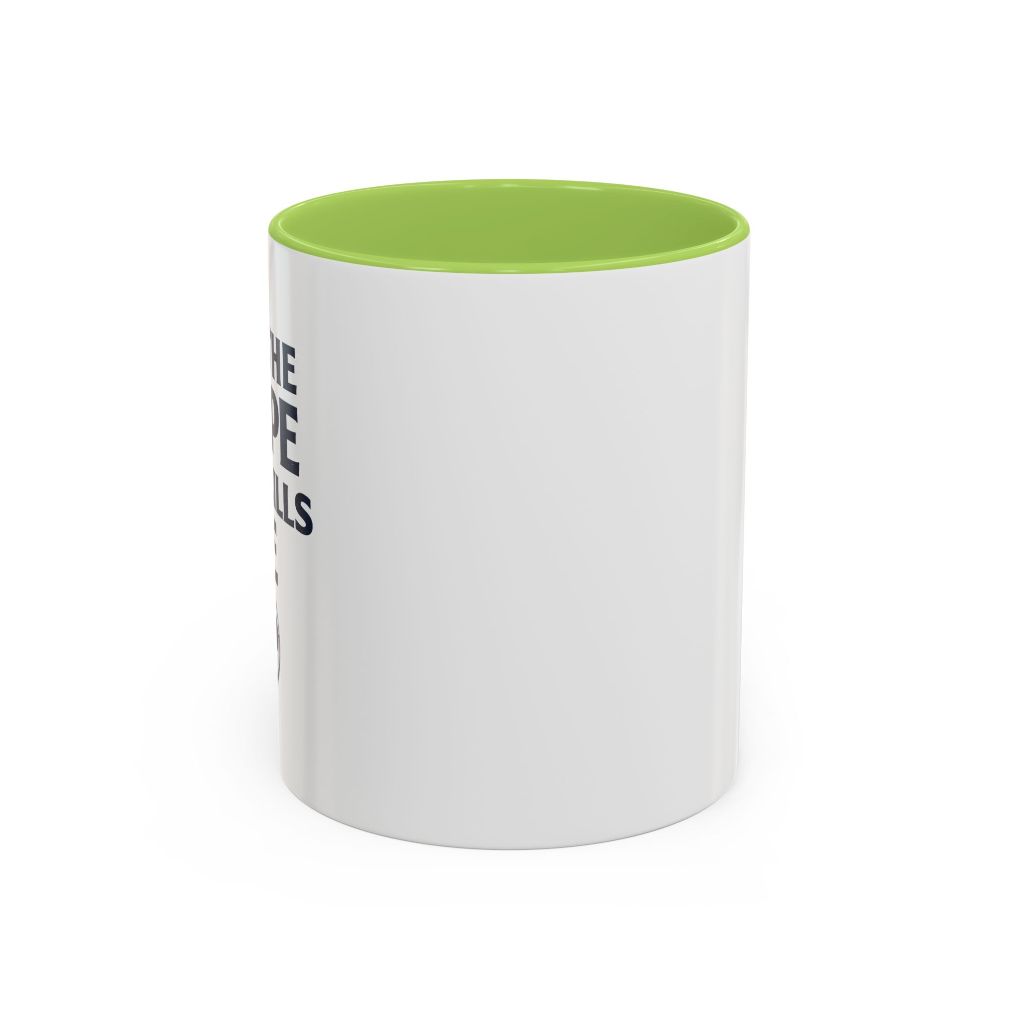 • White ceramic mug with colored interior and C-shaped handle