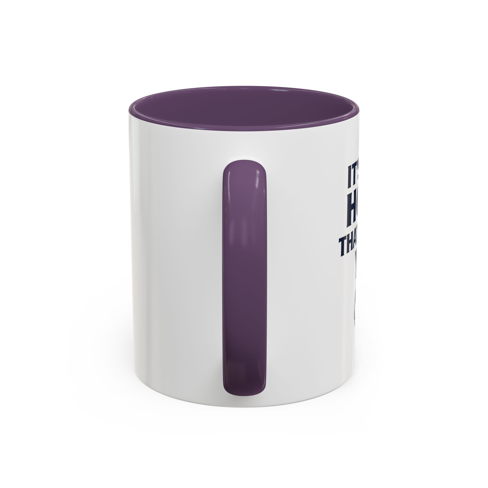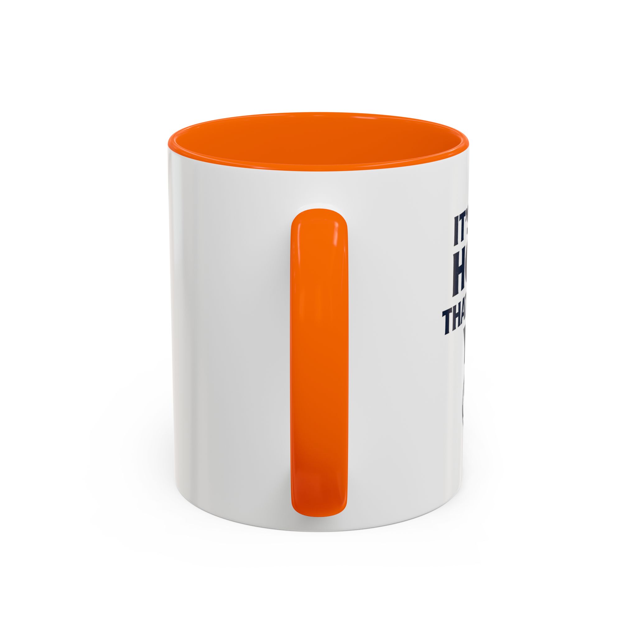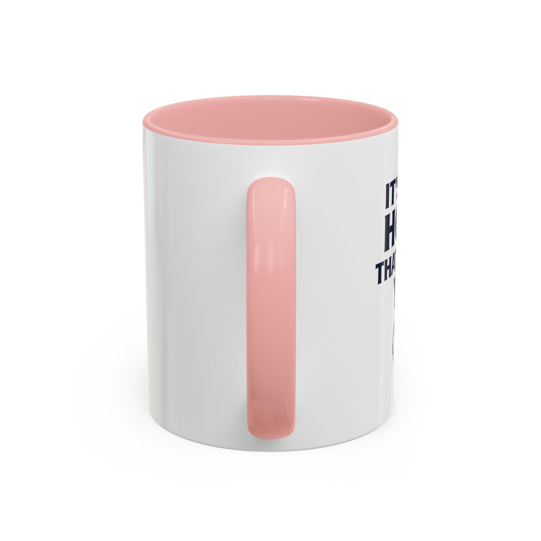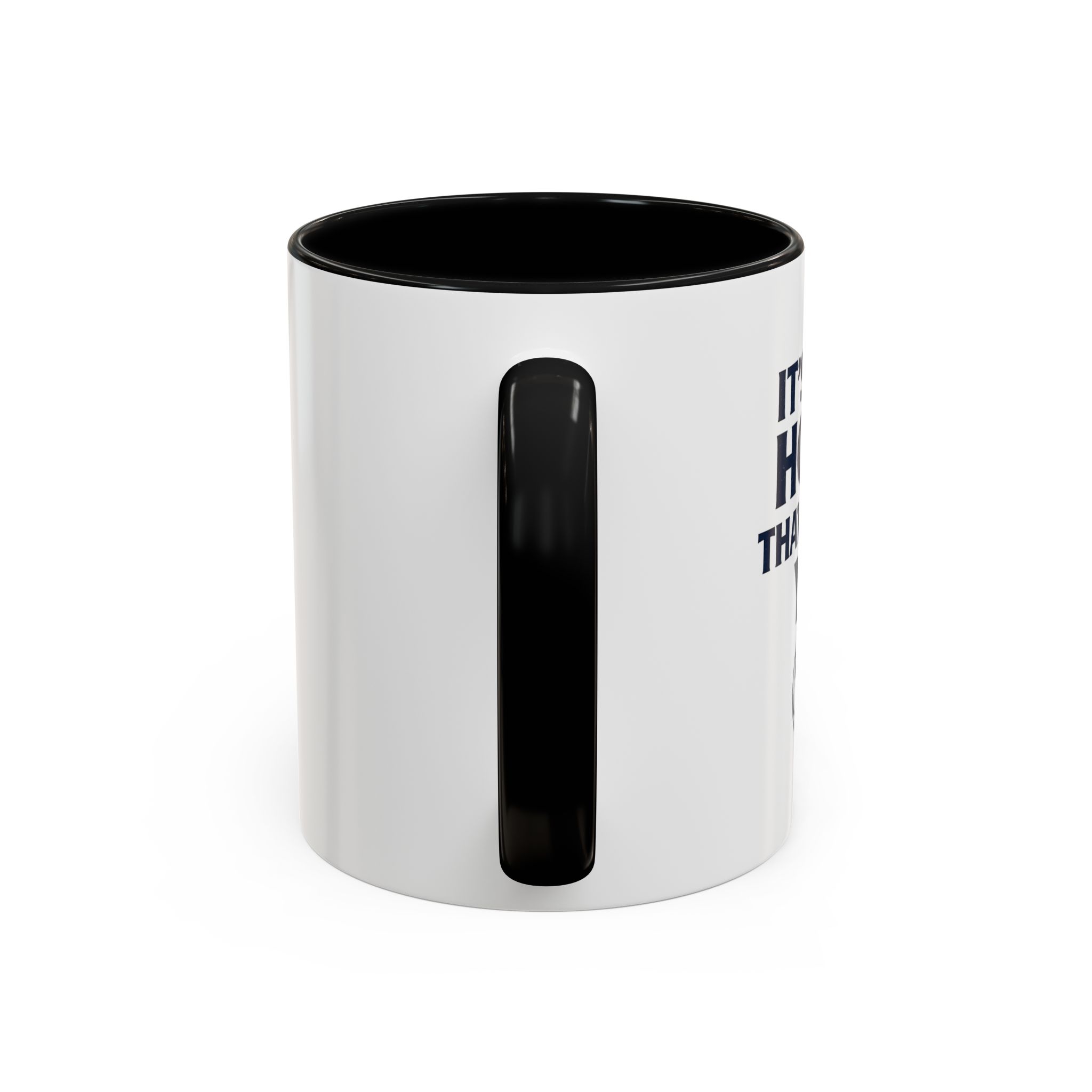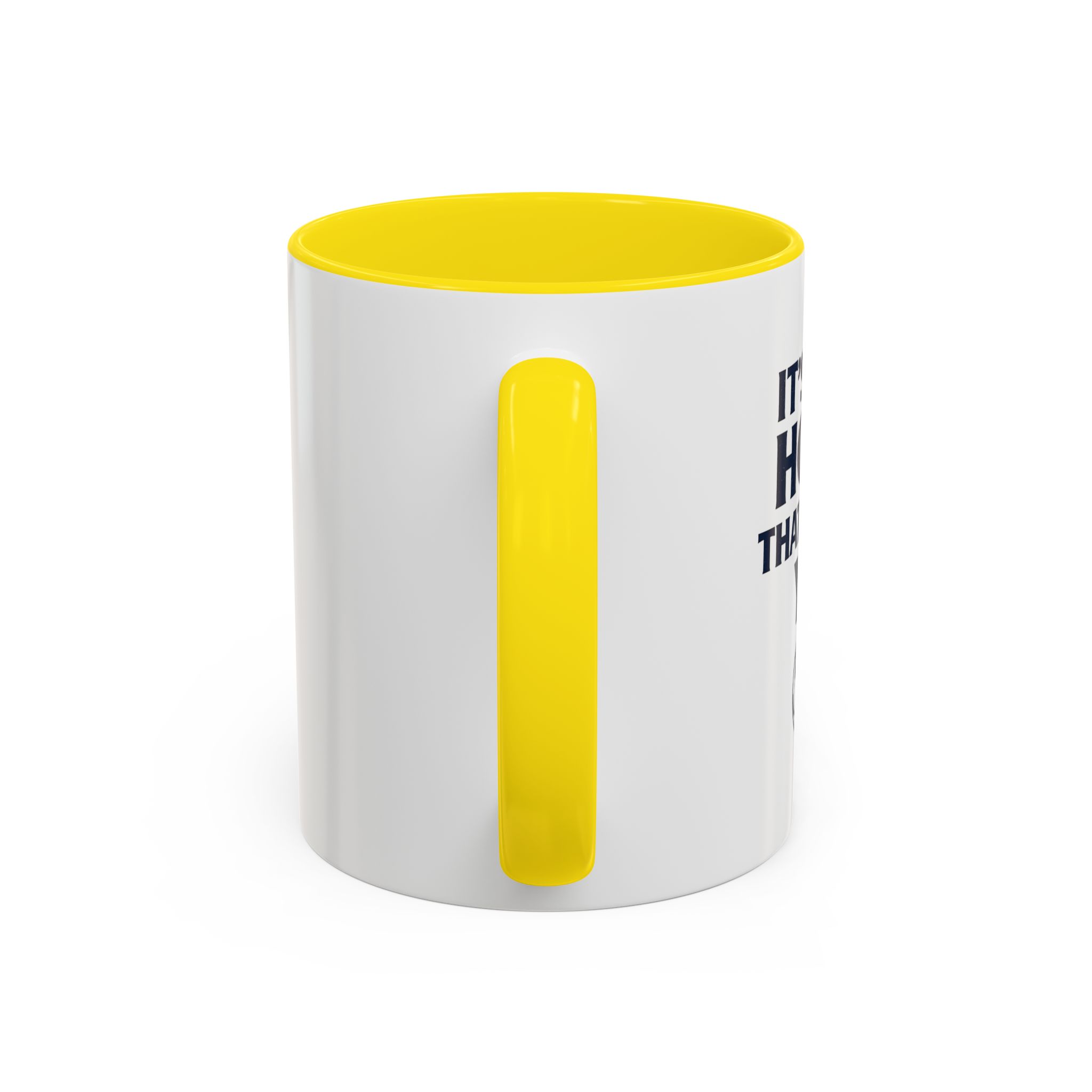 • White ceramic mug with colored interior and C-shaped handle