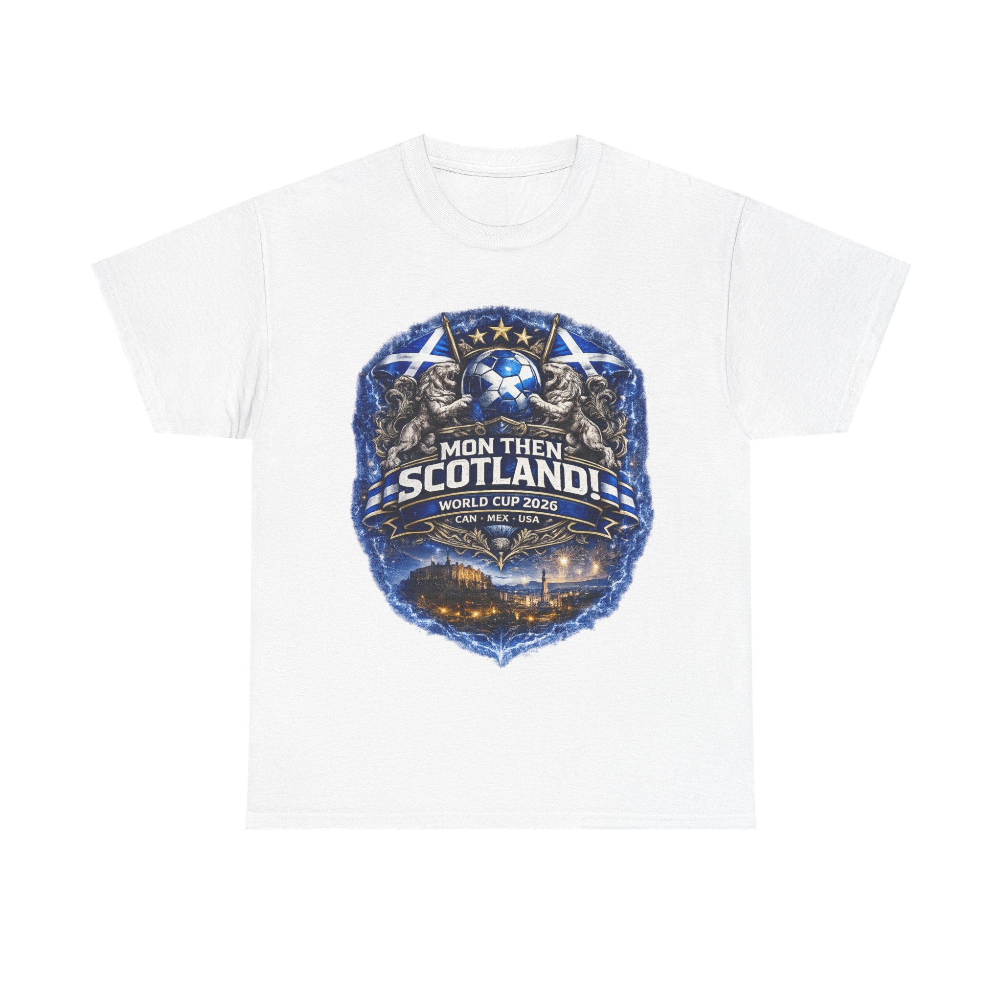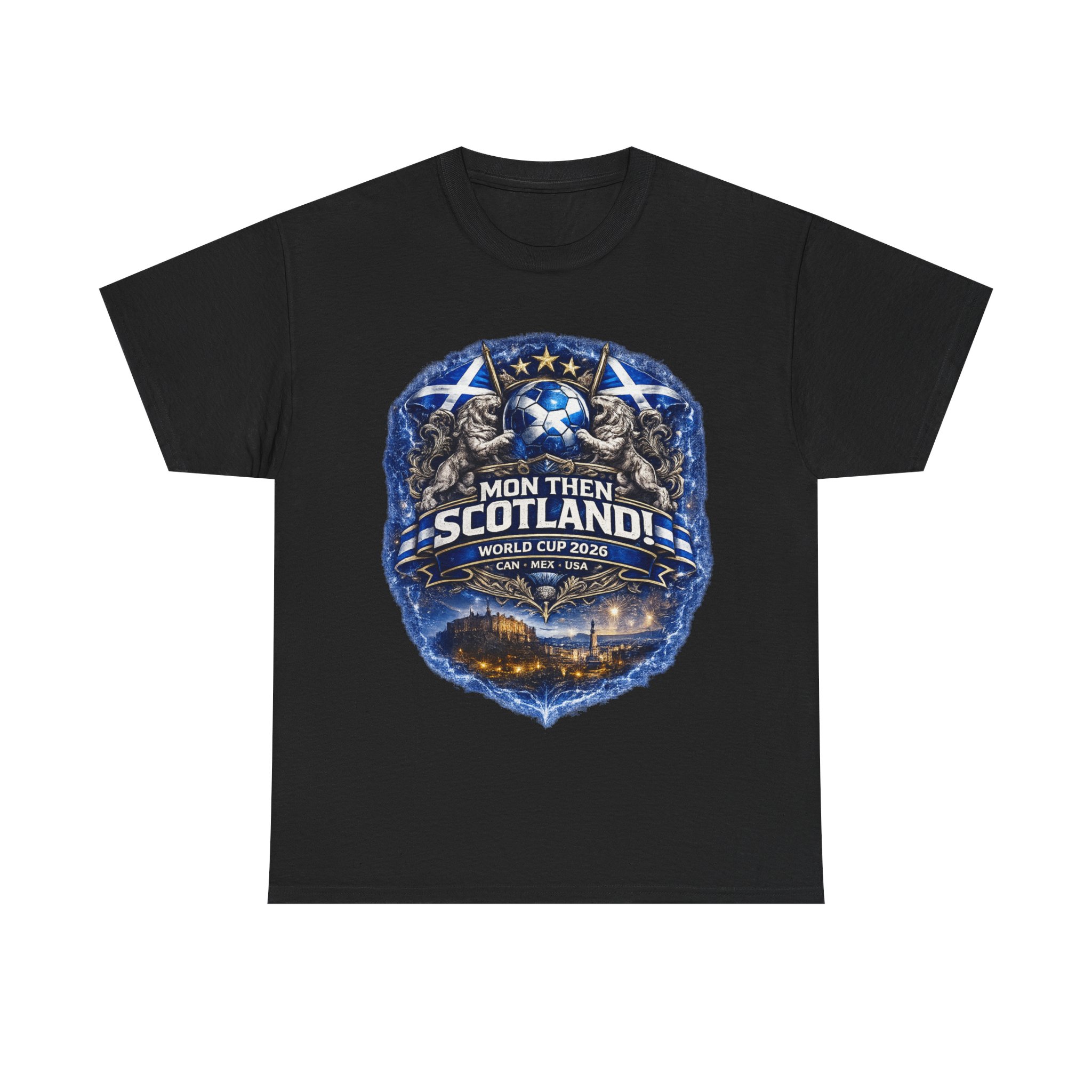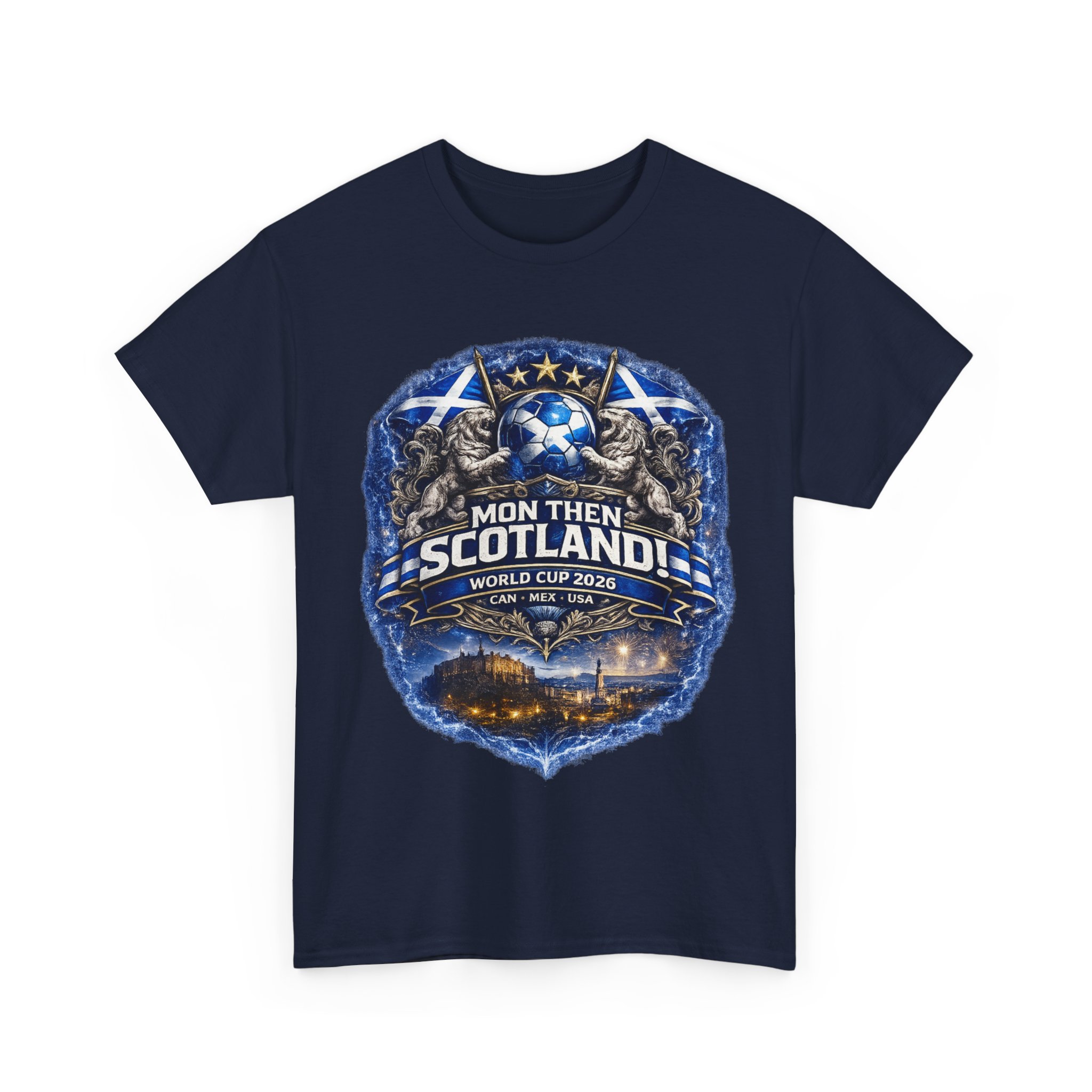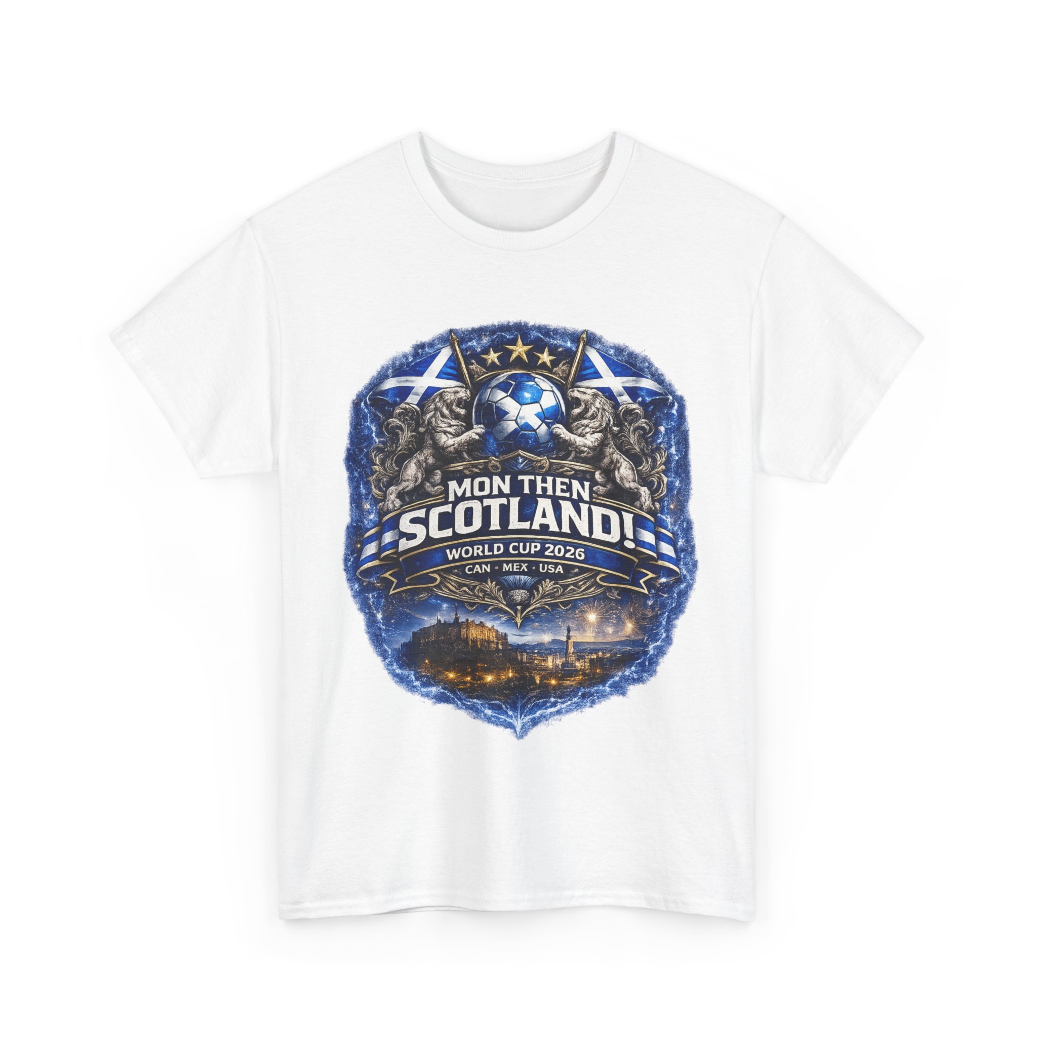 Show your support for Scotland with this bold “Mon Then Scotland!” football supporter shirt, created for passionate fans following the team on the road to World Cup 2026.
