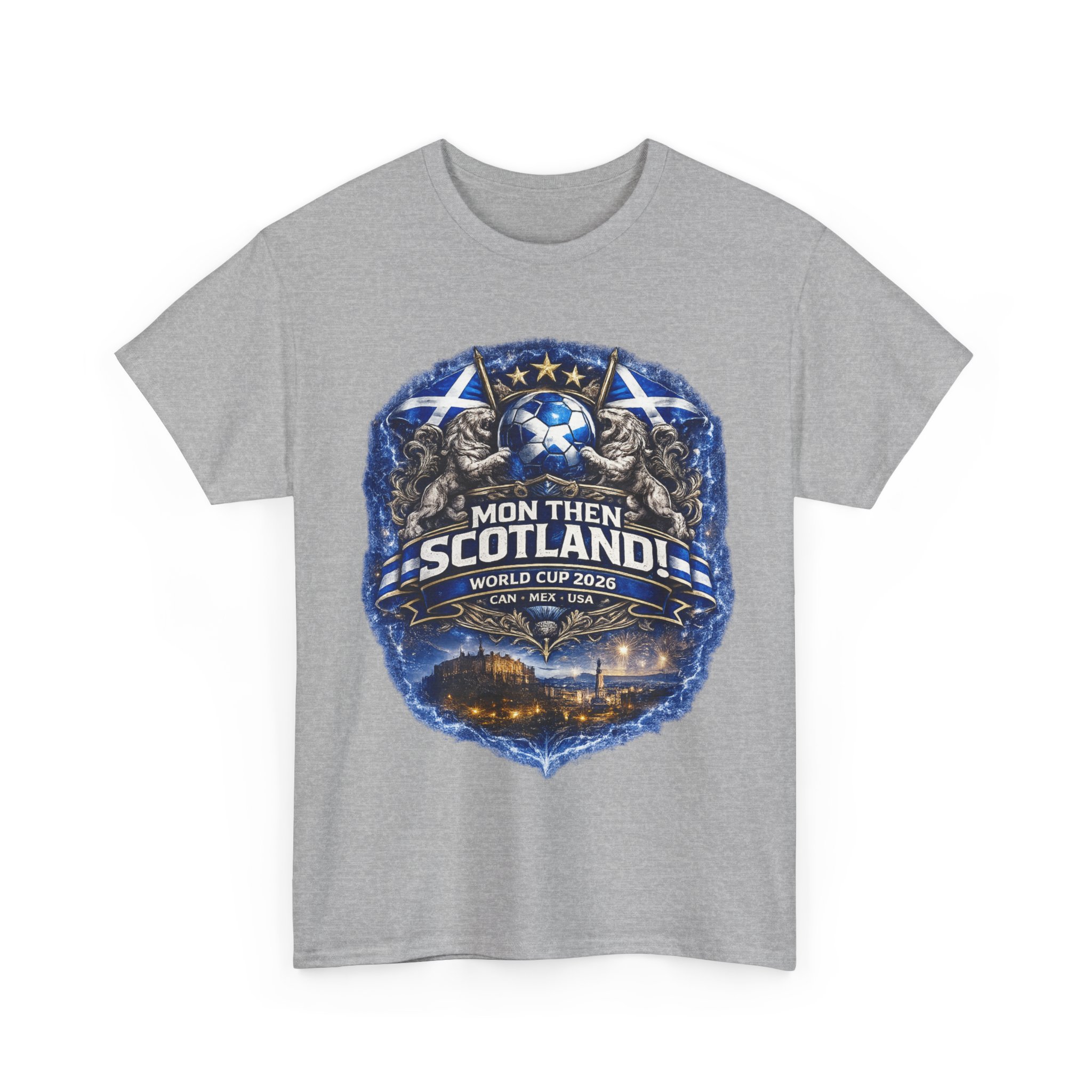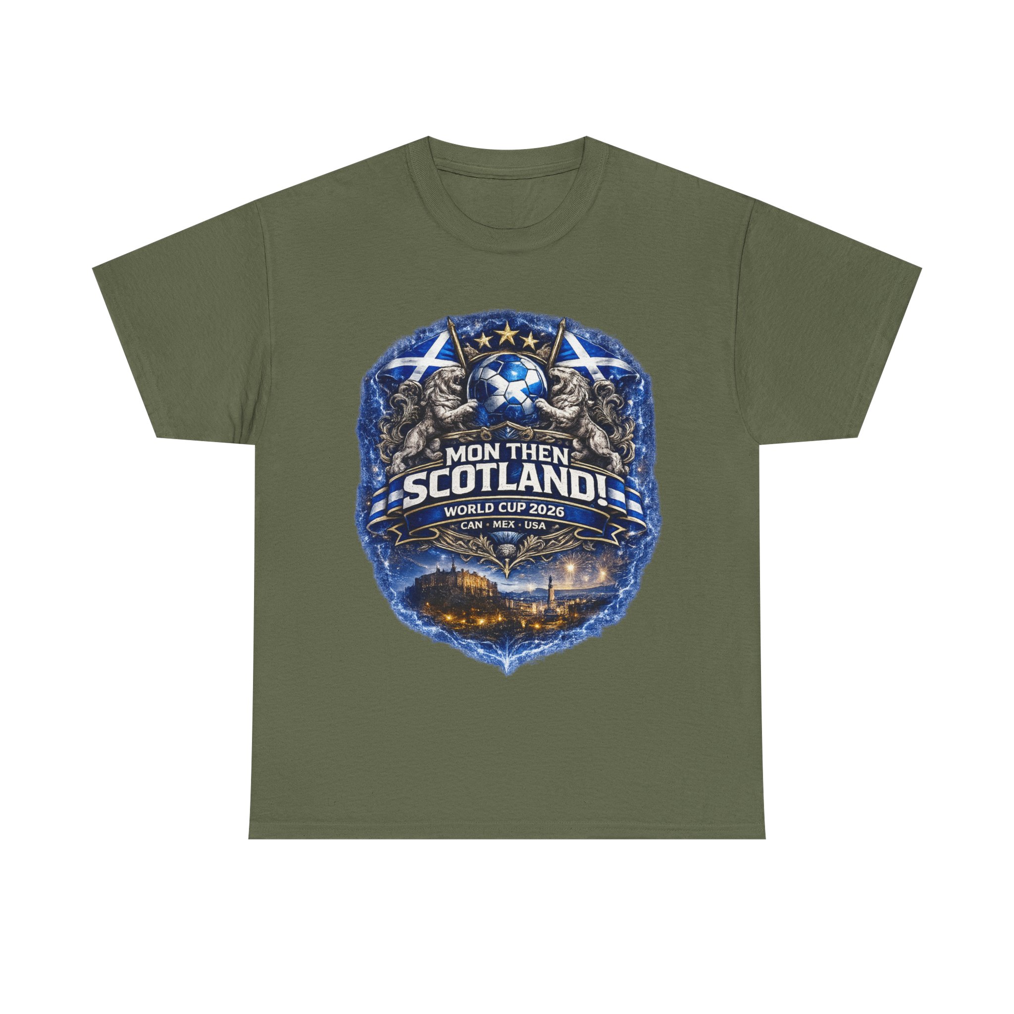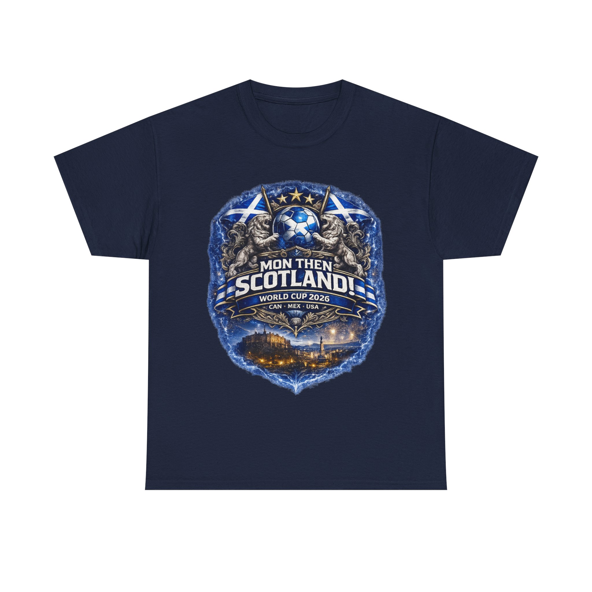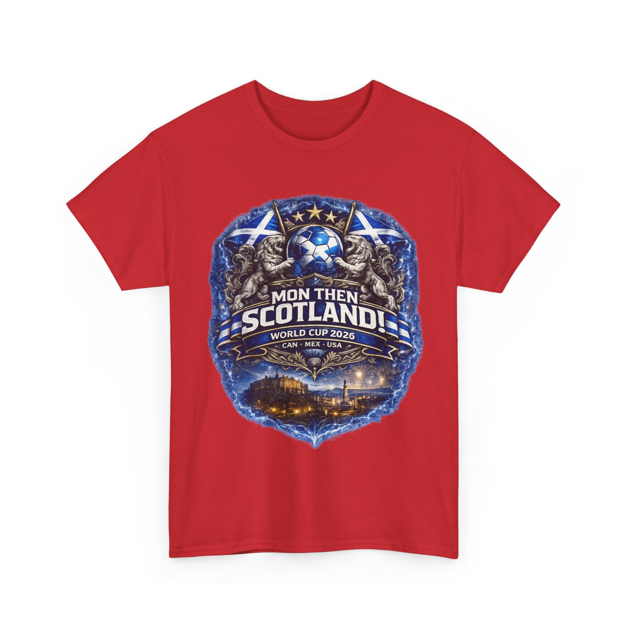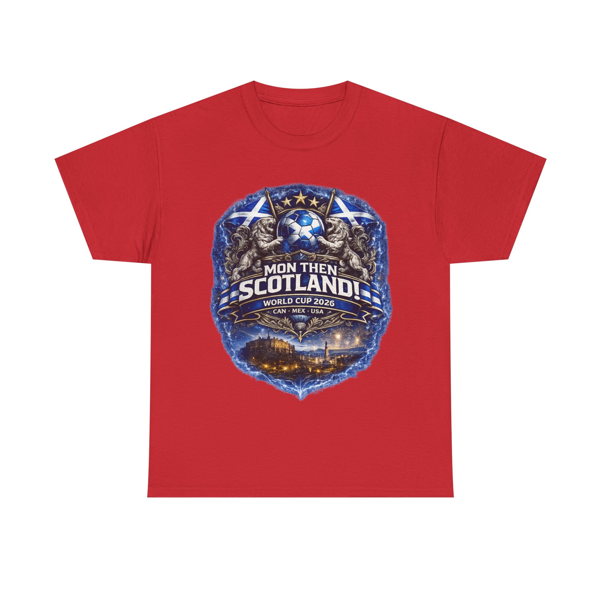 Show your support for Scotland with this bold “Mon Then Scotland!” football supporter shirt, created for passionate fans following the team on the road to World Cup 2026.