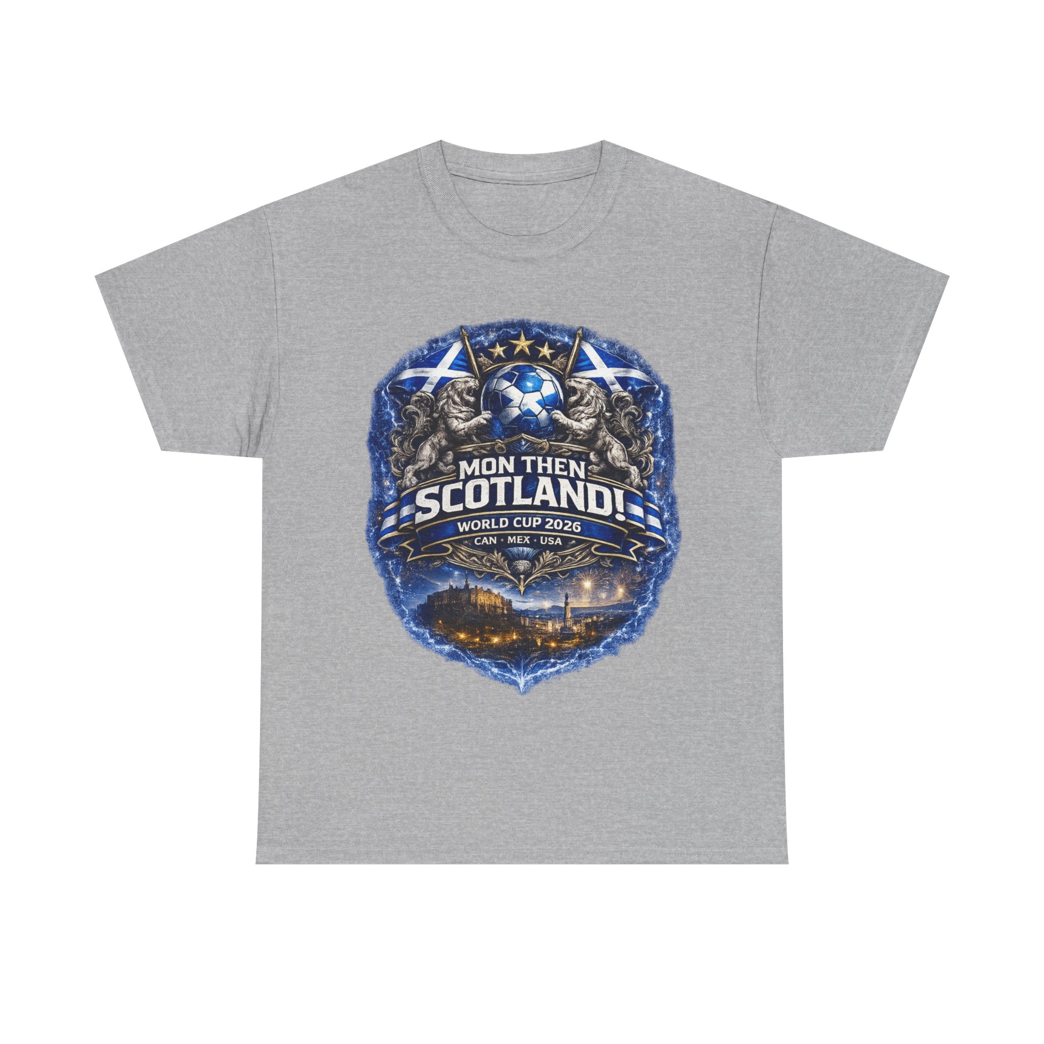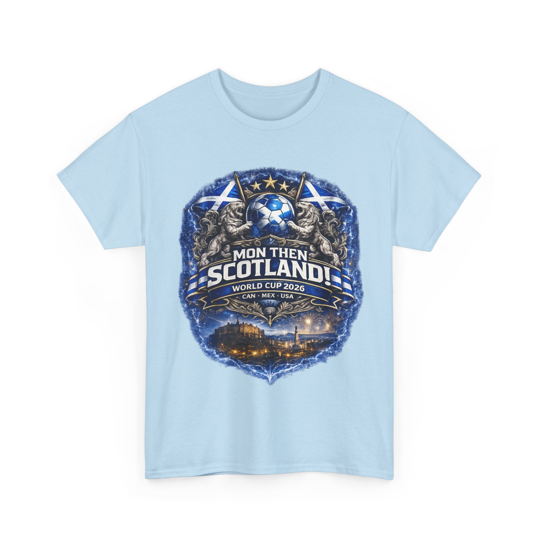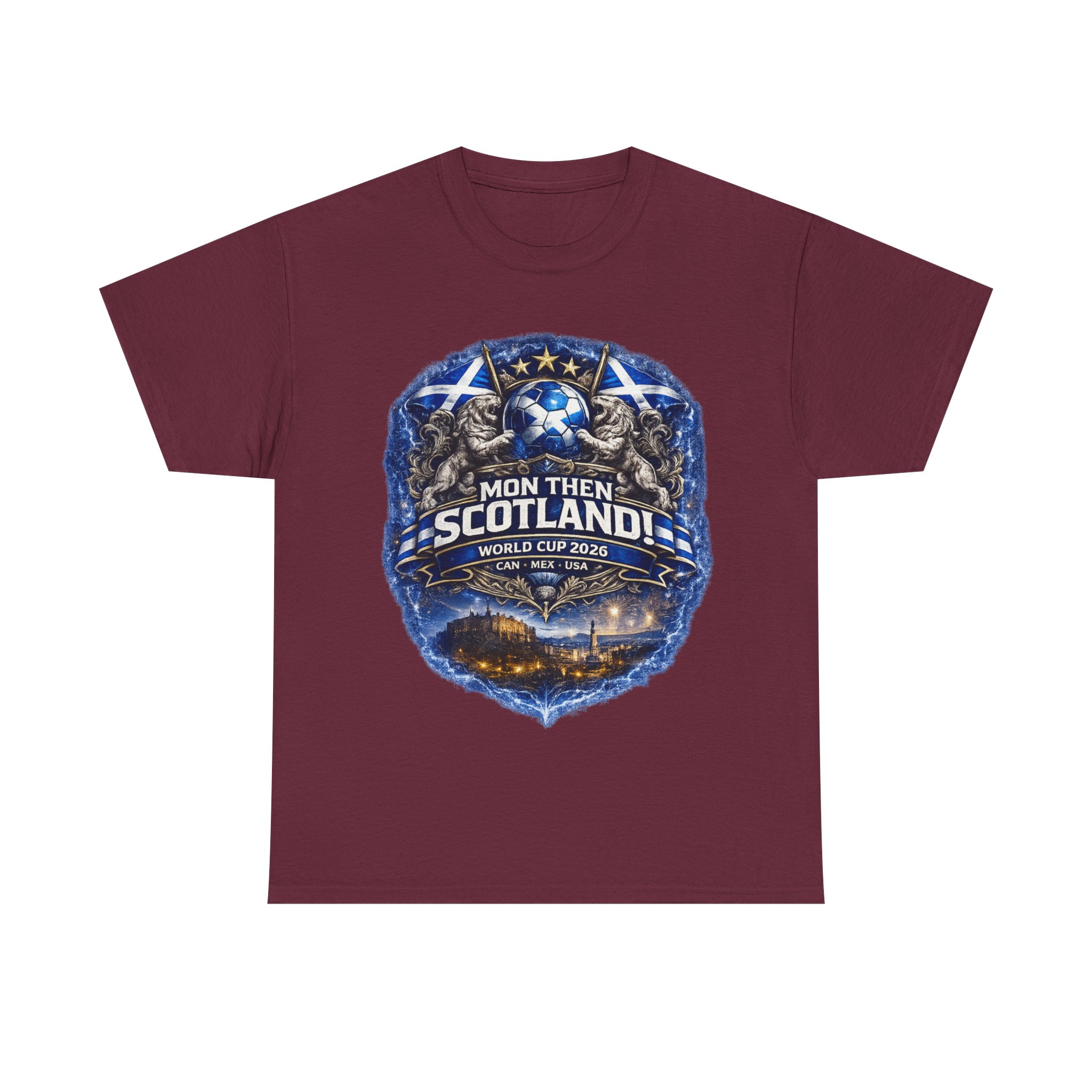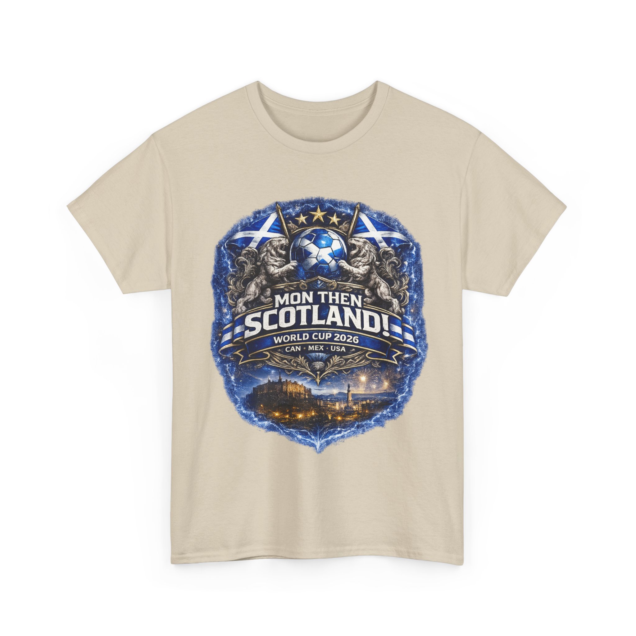 Show your support for Scotland with this bold “Mon Then Scotland!” football supporter shirt, created for passionate fans following the team on the road to World Cup 2026.
