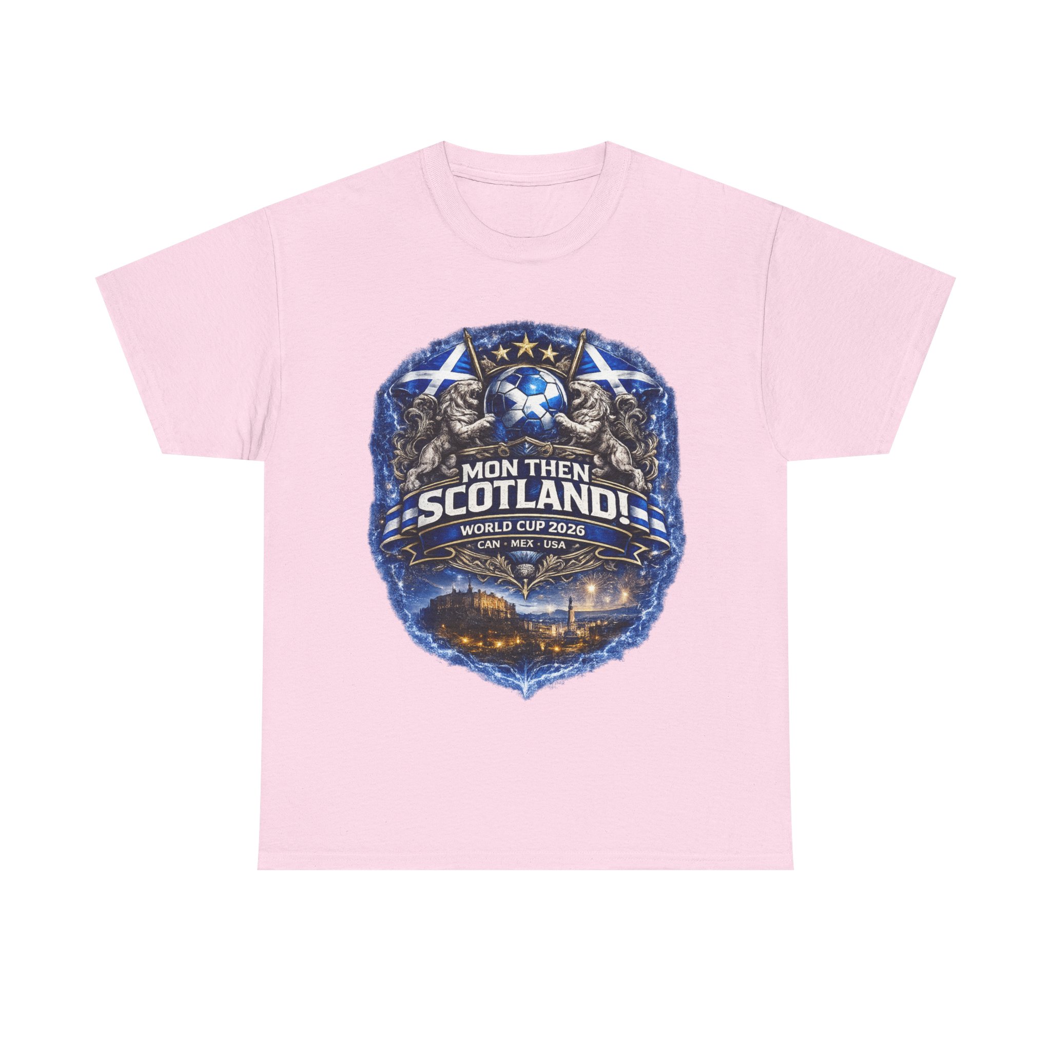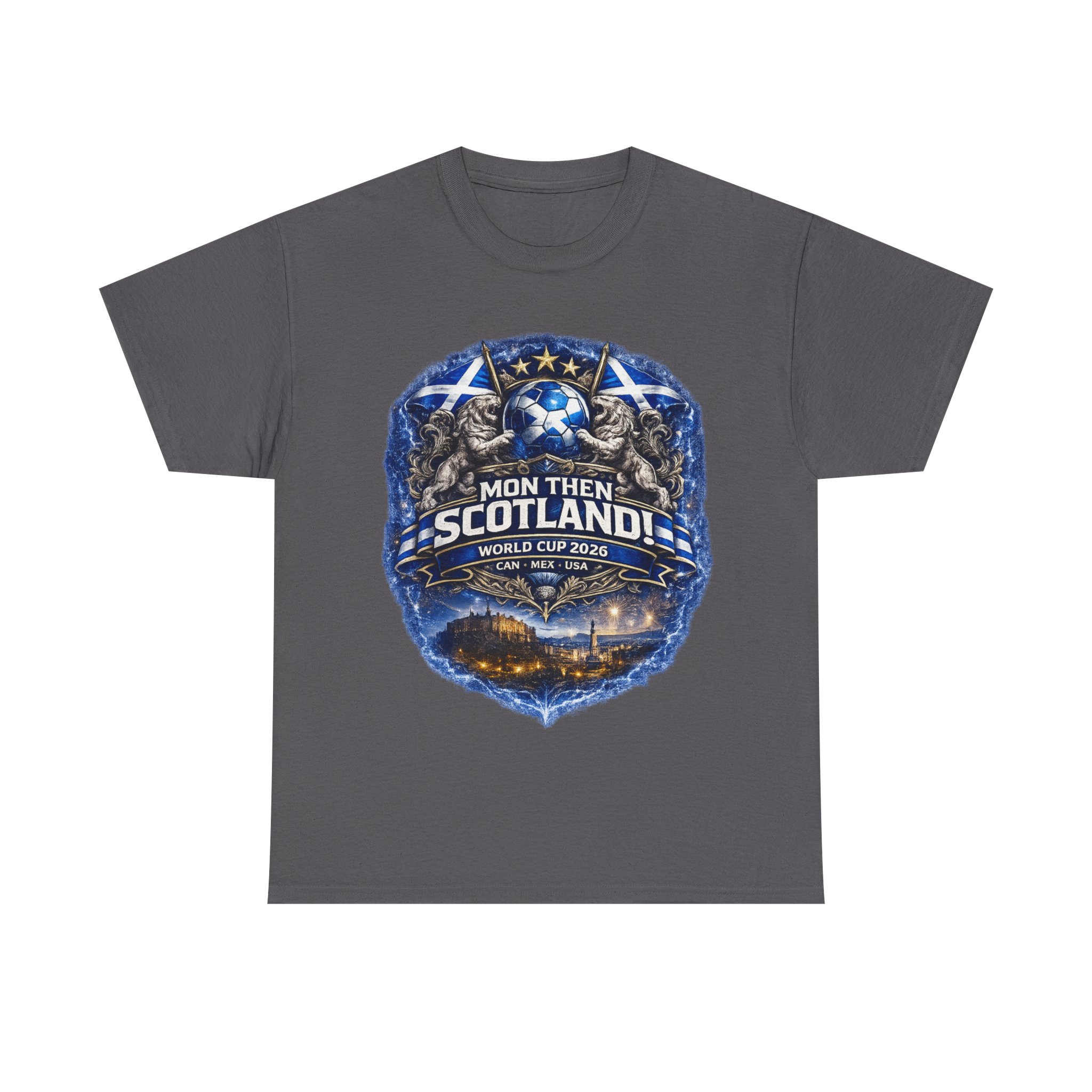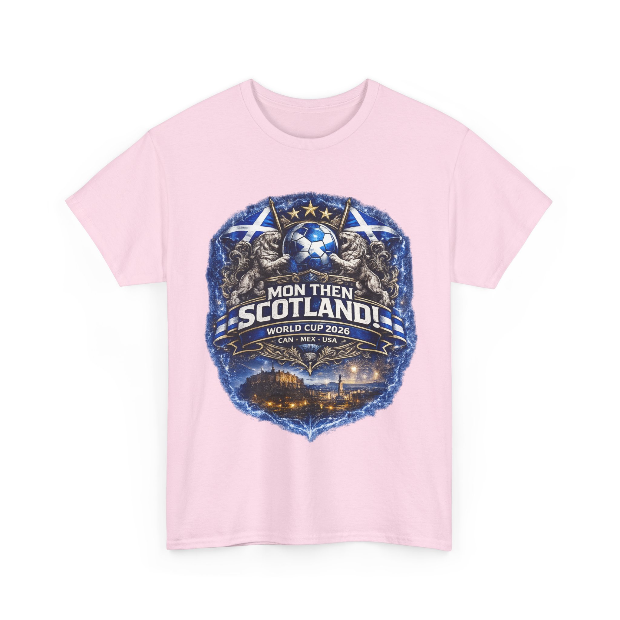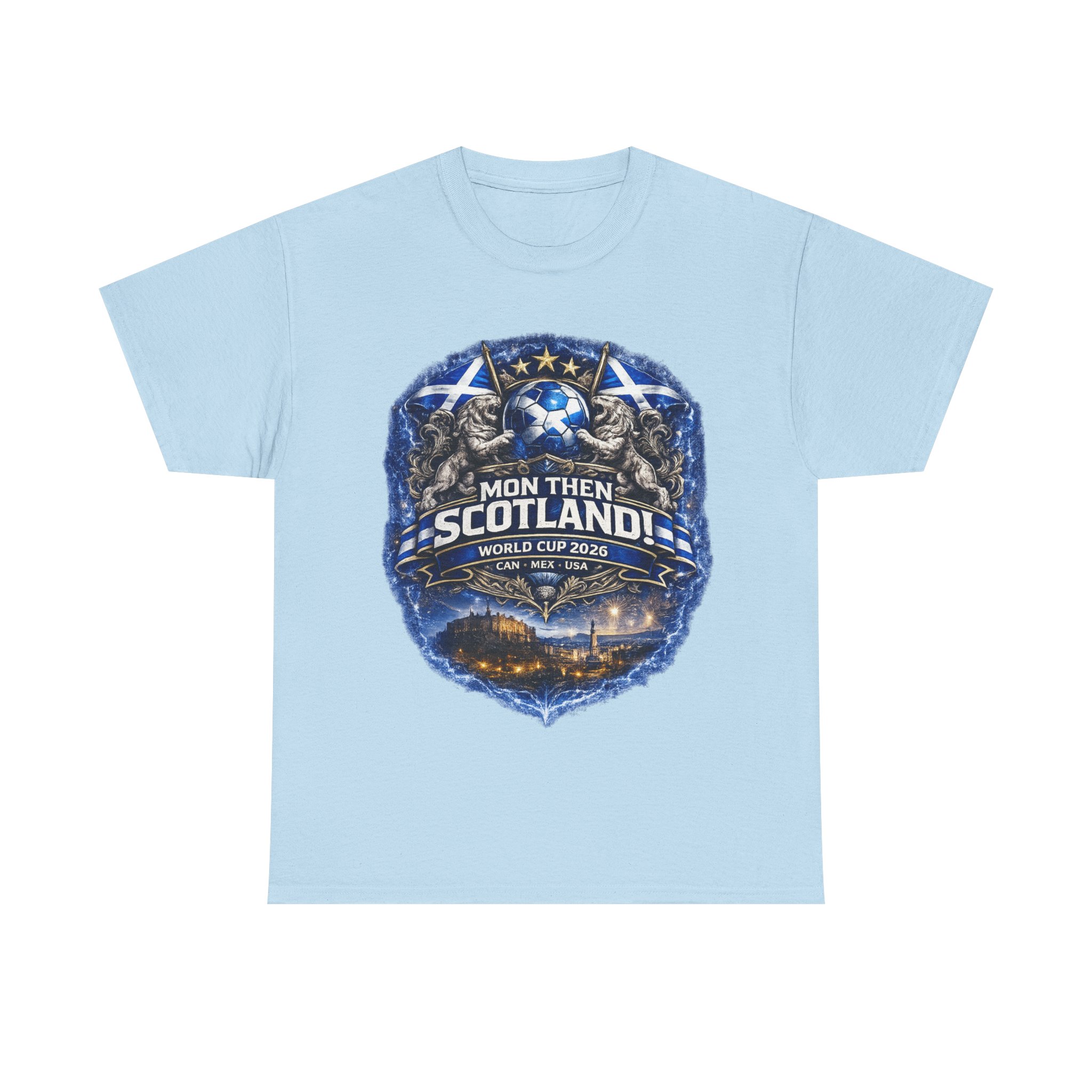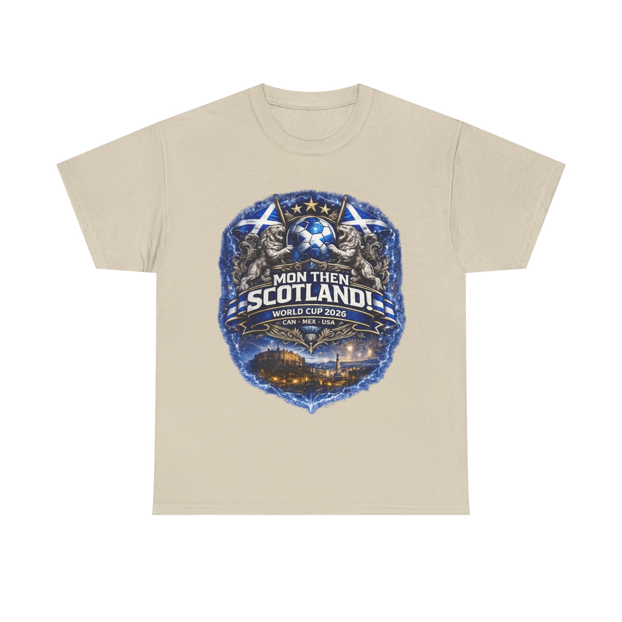 Show your support for Scotland with this bold “Mon Then Scotland!” football supporter shirt, created for passionate fans following the team on the road to World Cup 2026.