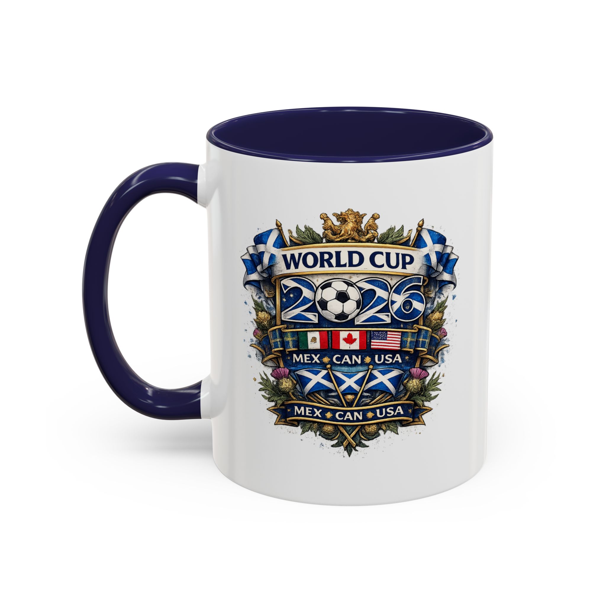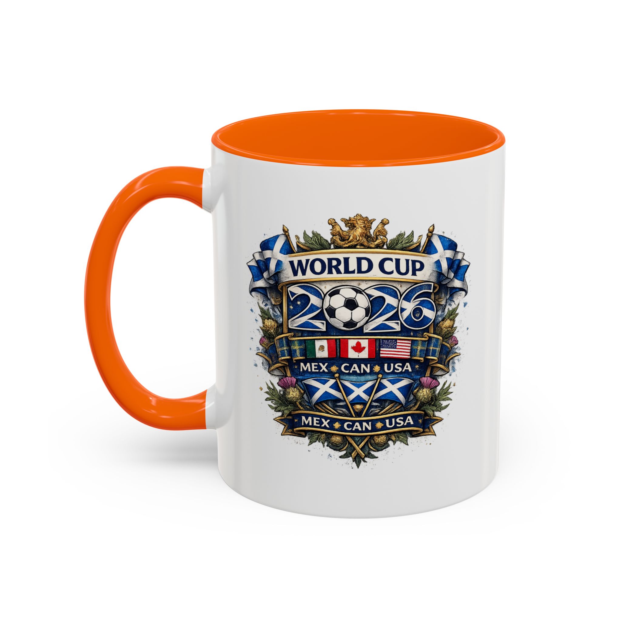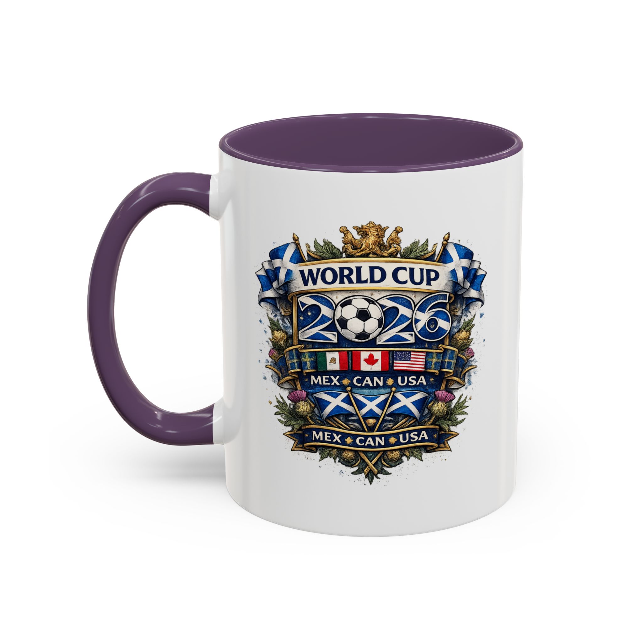 Celebrate the World Cup 2026 in true Scottish style with this Scotland football fan mug, designed for supporters ready to cheer on match day. Featuring a bold Scottish-inspired World Cup crest design, this mug is perfect for enjoying your morning coffee, tea, or a pre-match drink while supporting Scotland during the 2026 World Cup in Mexico, Canada, and the USA.
