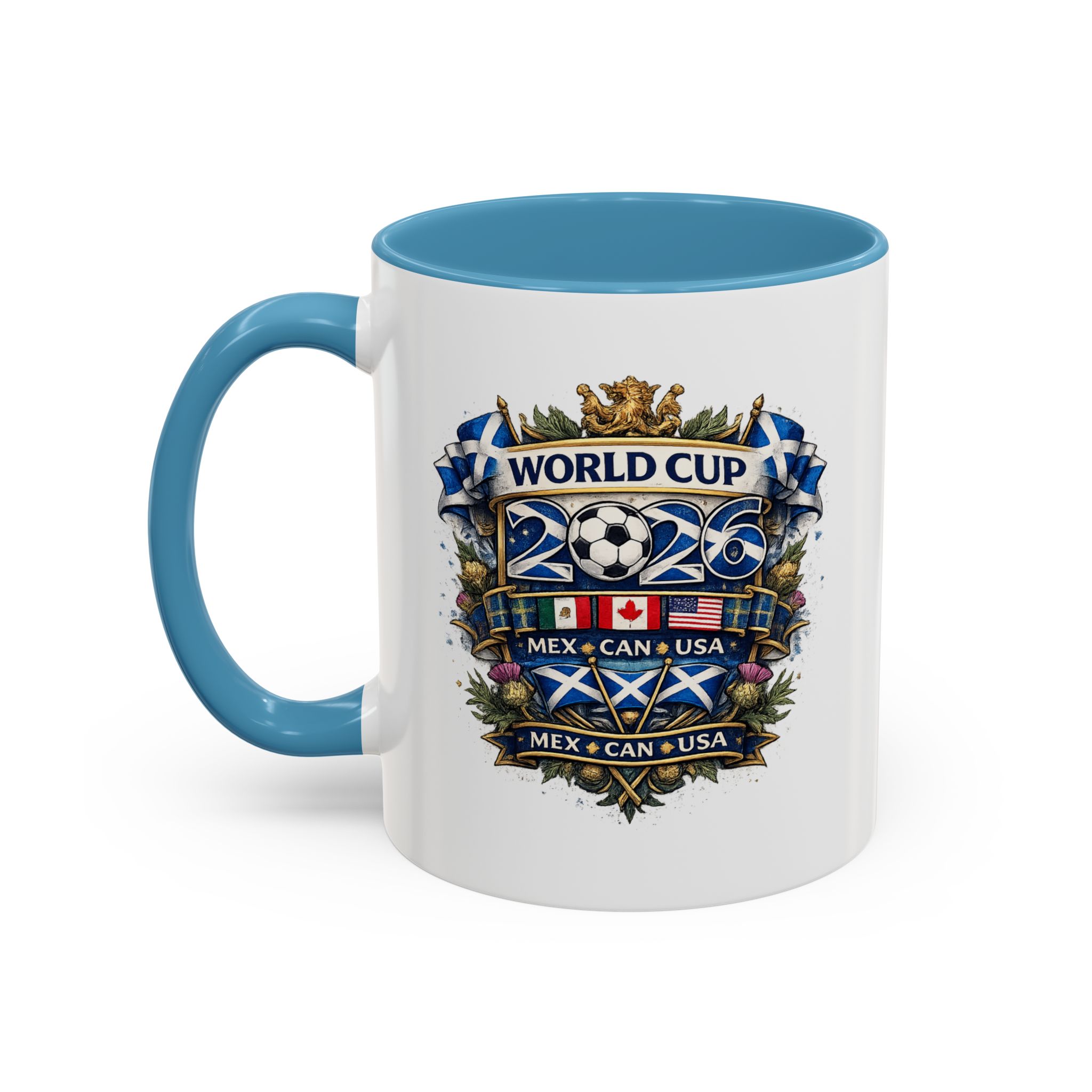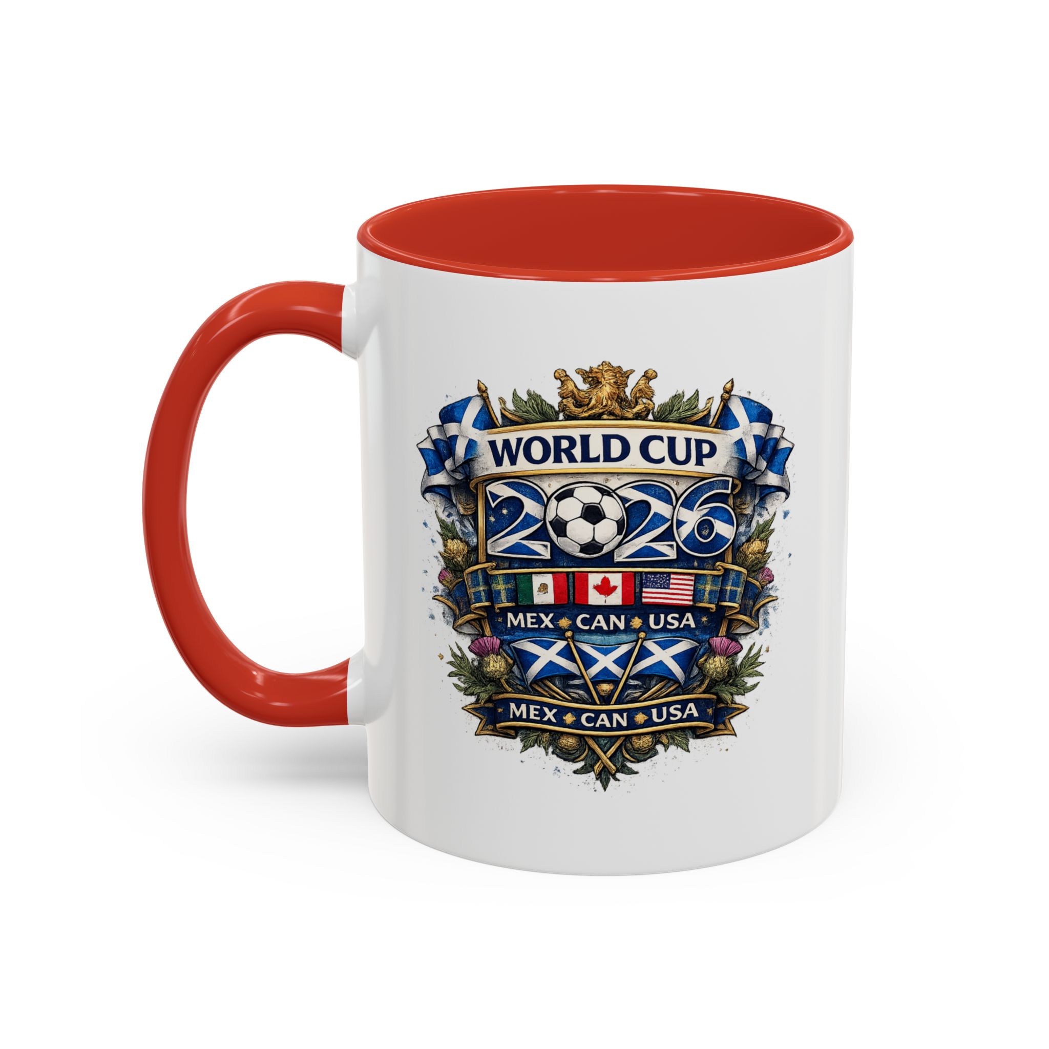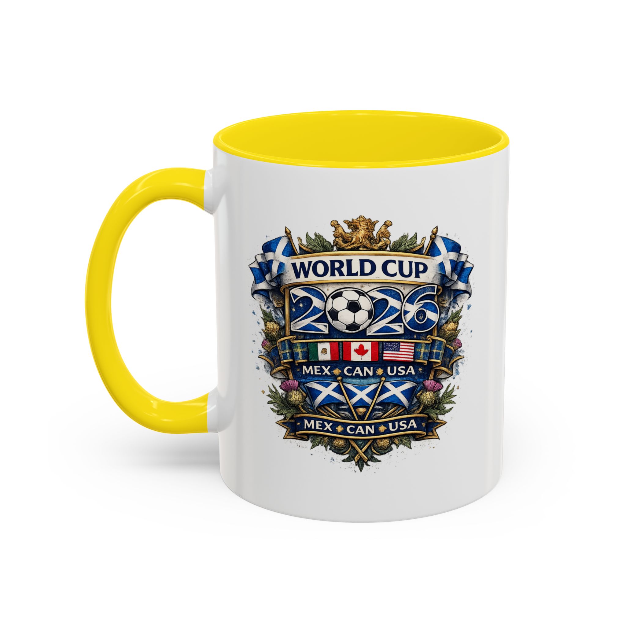 Celebrate the World Cup 2026 in true Scottish style with this Scotland football fan mug, designed for supporters ready to cheer on match day. Featuring a bold Scottish-inspired World Cup crest design, this mug is perfect for enjoying your morning coffee, tea, or a pre-match drink while supporting Scotland during the 2026 World Cup in Mexico, Canada, and the USA.