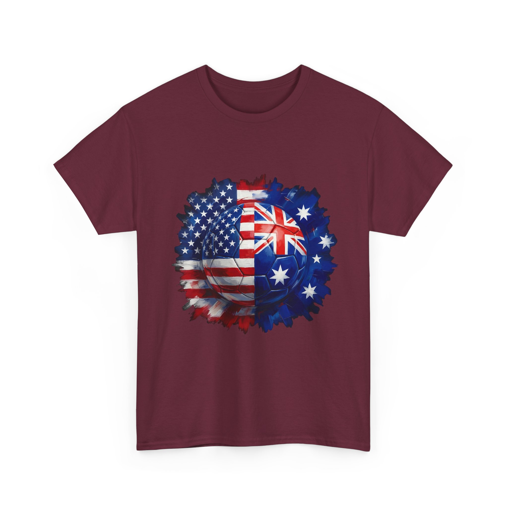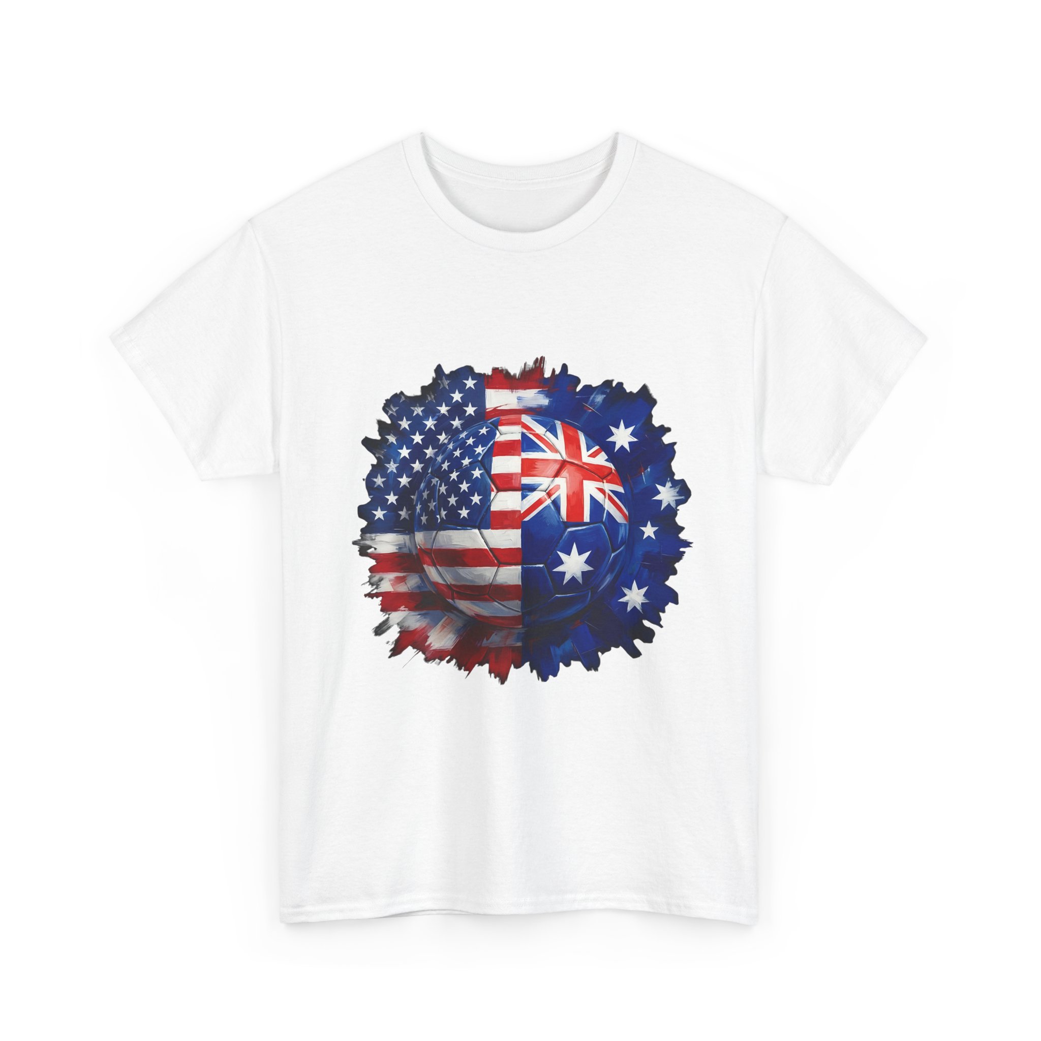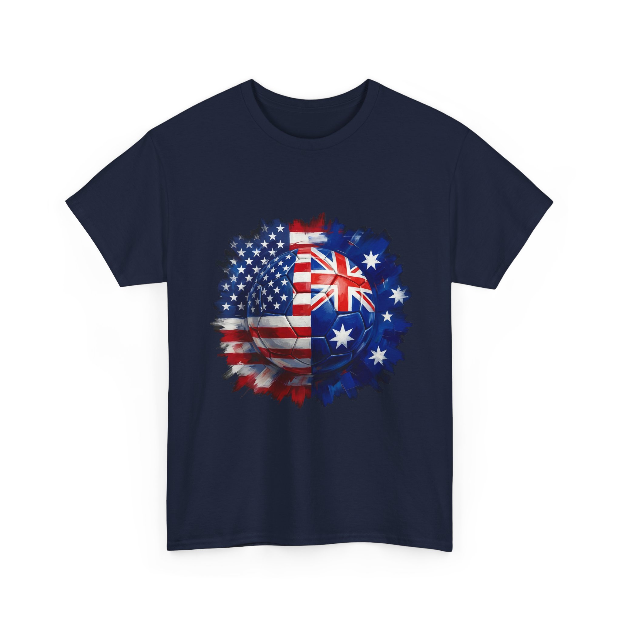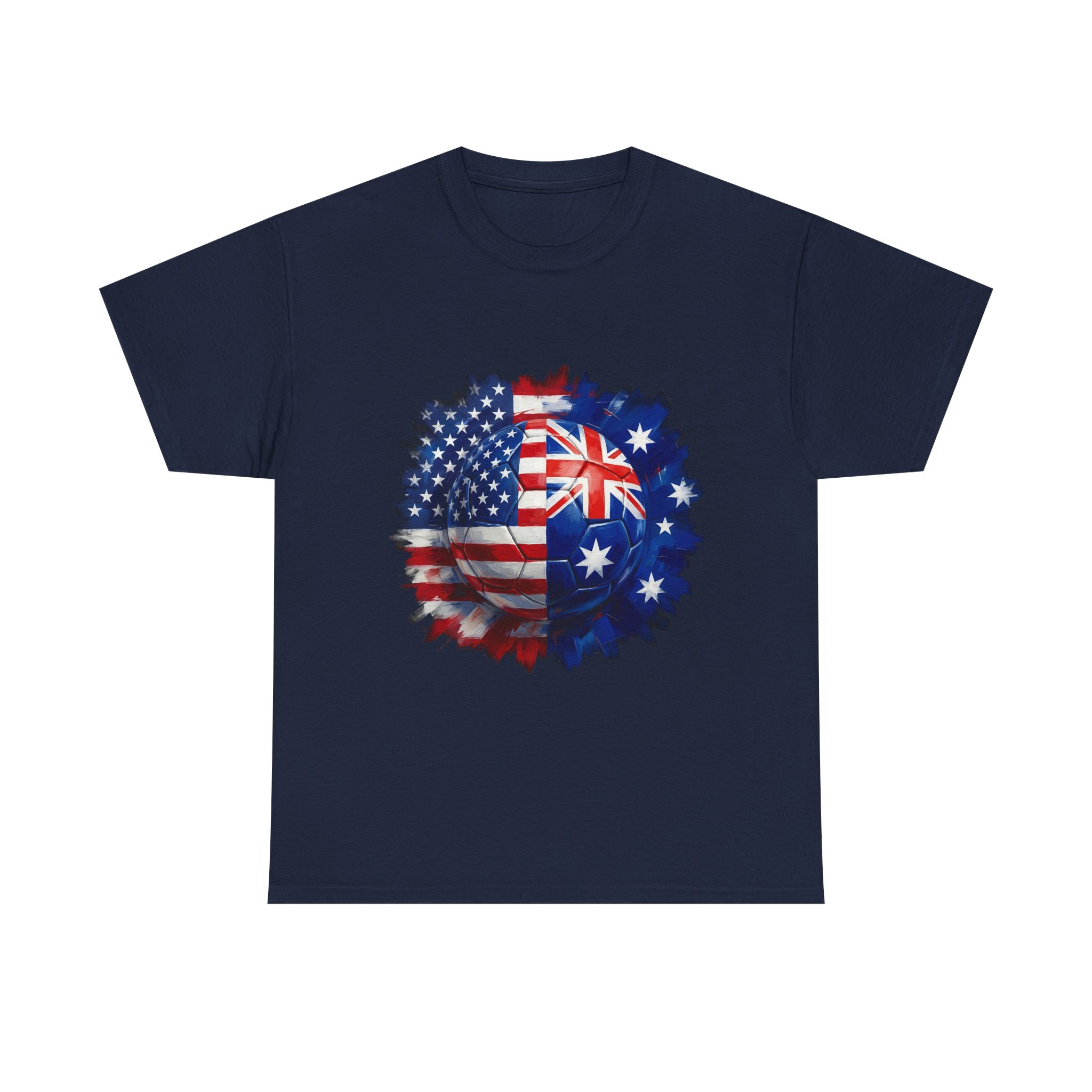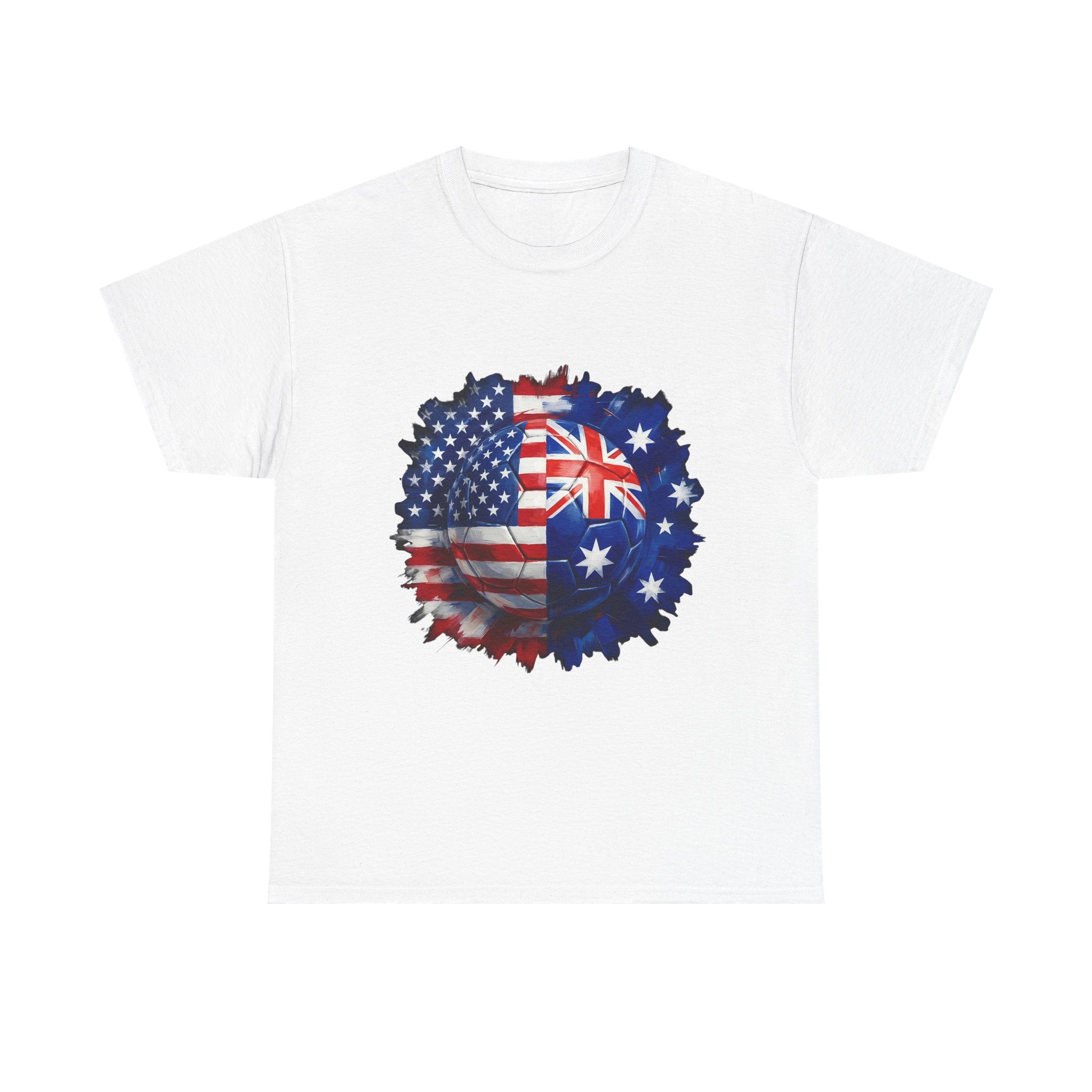 Show your match-day pride in style! This USA vs Australia soccer shirt features a bold split football design combining the American and Australian flags β perfect for cheering on your team during the World Cup, international friendlies, or rivalry matches.