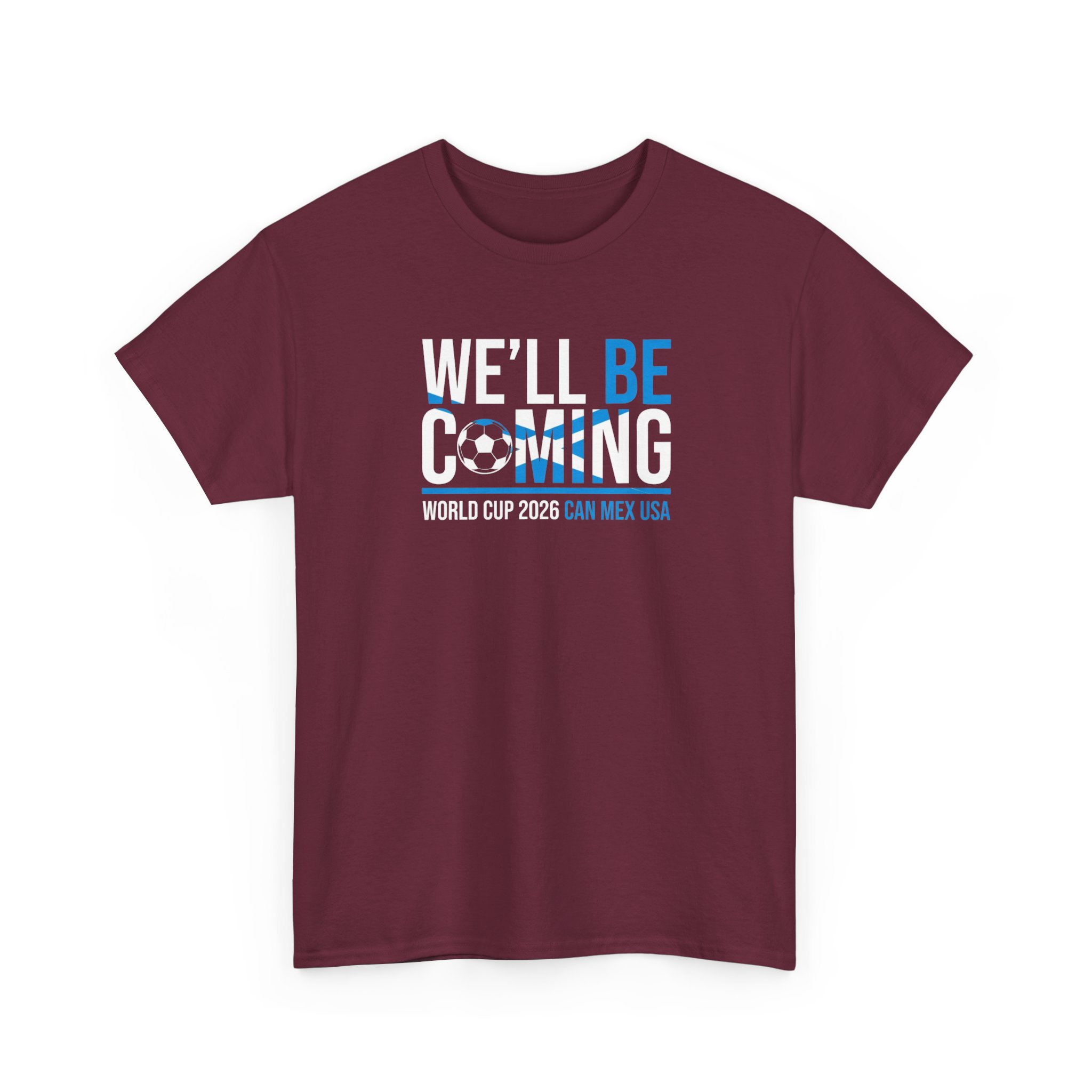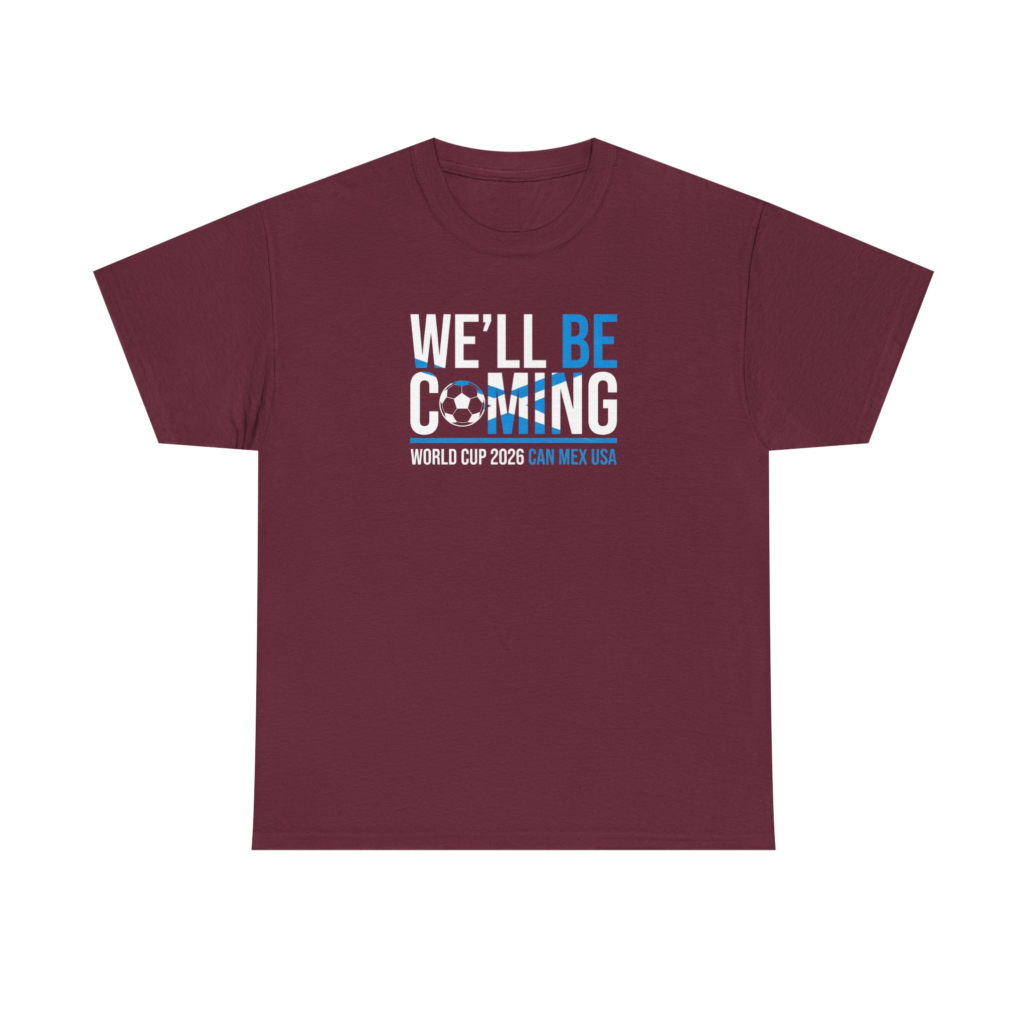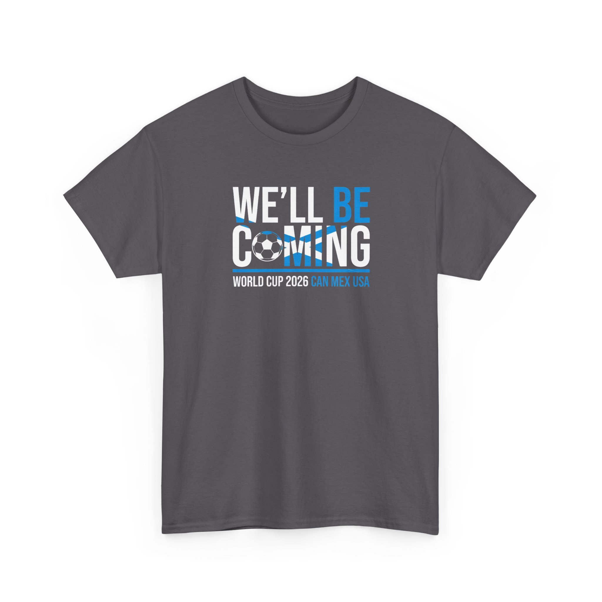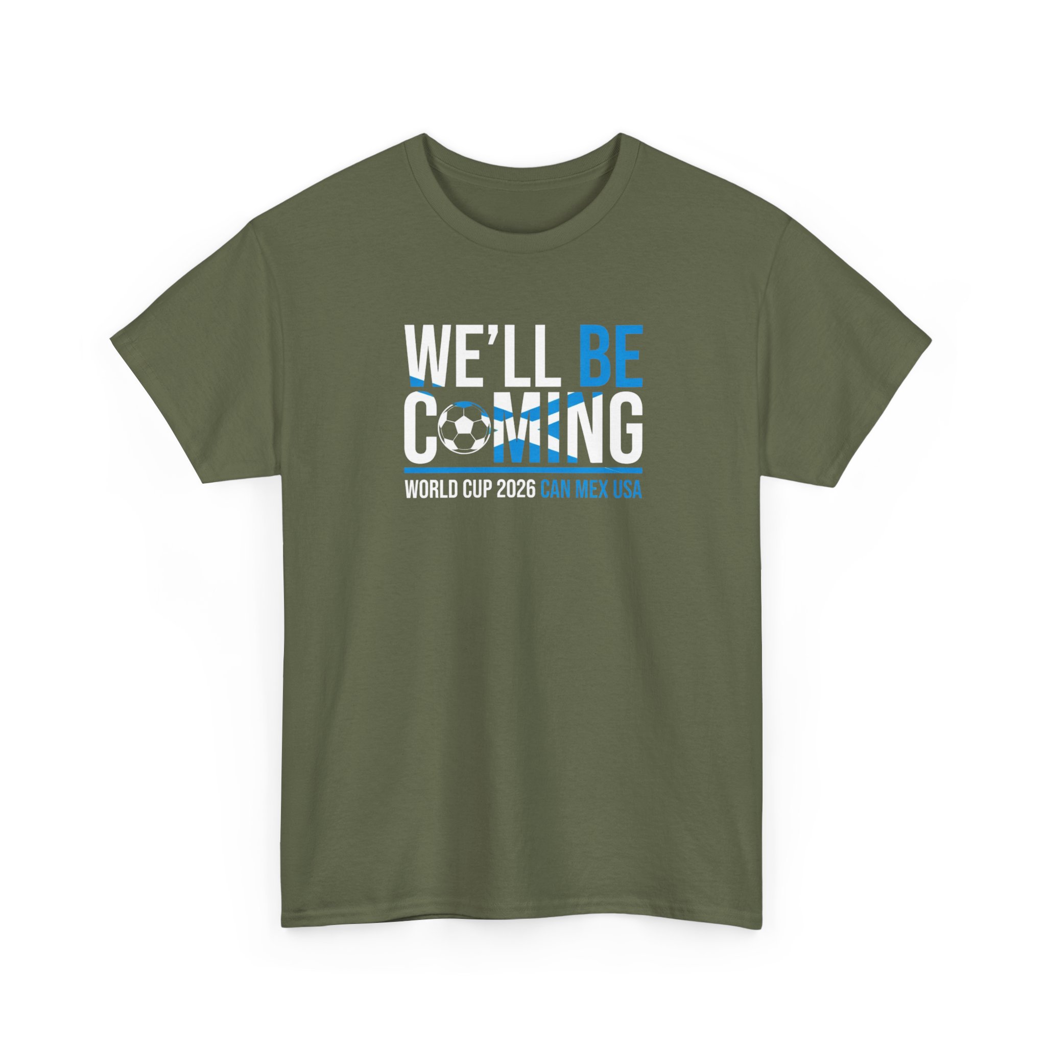 Back Scotland in bold, confident style with this We’ll Be Coming T-shirt — inspired by the Tartan Army and the road to World Cup 2026 in Canada, Mexico, and the USA. Clean typography, strong contrast, and subtle football detailing make this an easy matchday favourite without loud graphics.